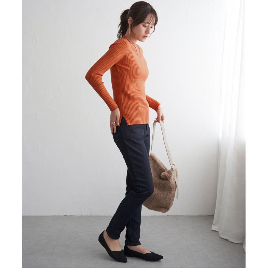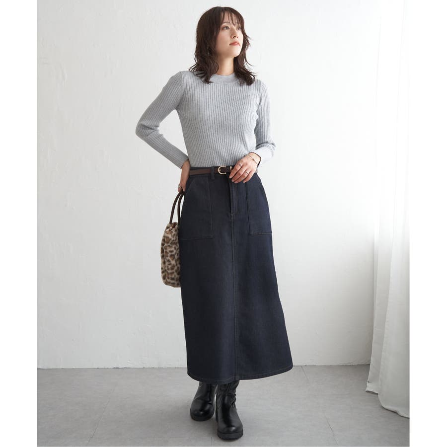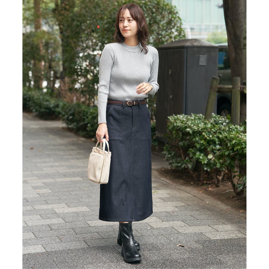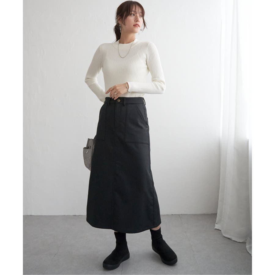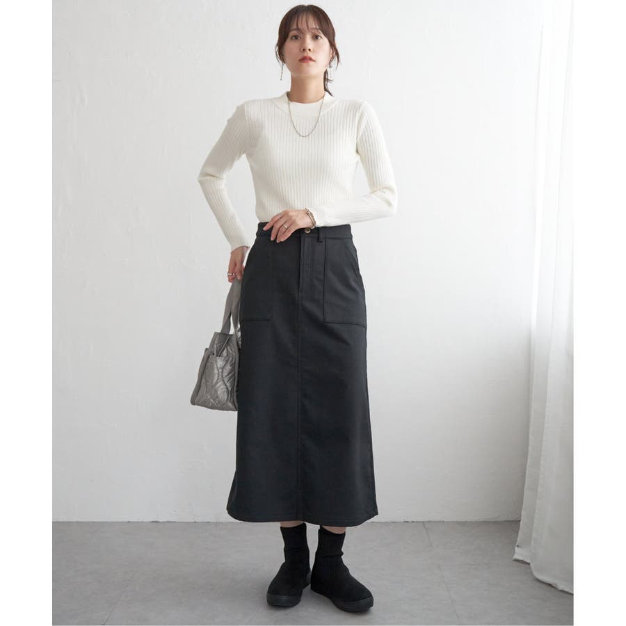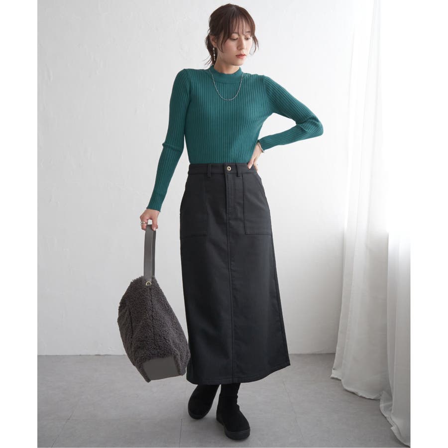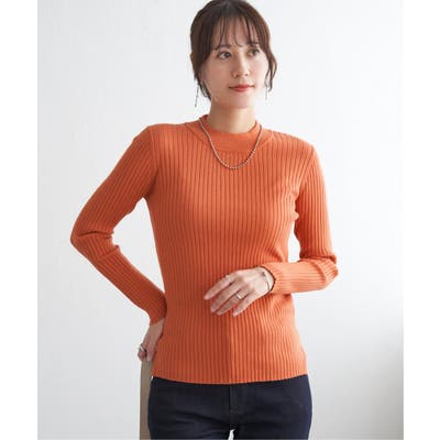 首元をあたたかく包むモックネック襟、インナーに適したコンパクトなサイズ感のリブニットです。