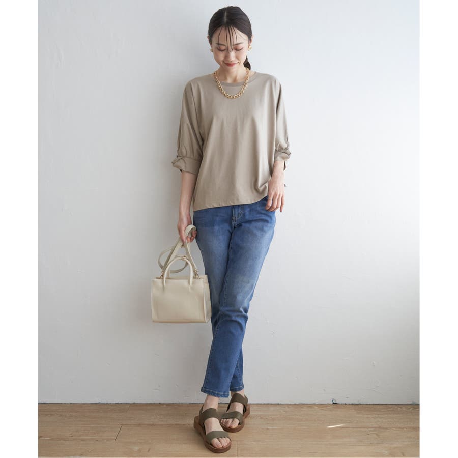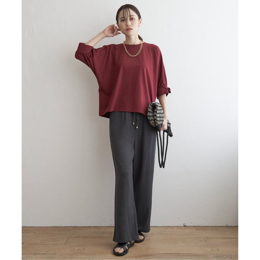 ドルマンシルエットでゆとりあるシルエットなため、ウエスト周りもカバー!
