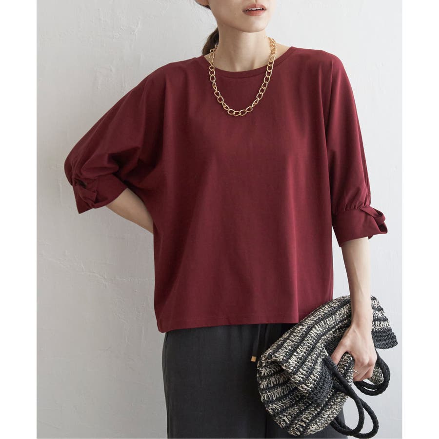 袖口のツイストデザインとドルマンスリーブを活かしたフェミニントップス。