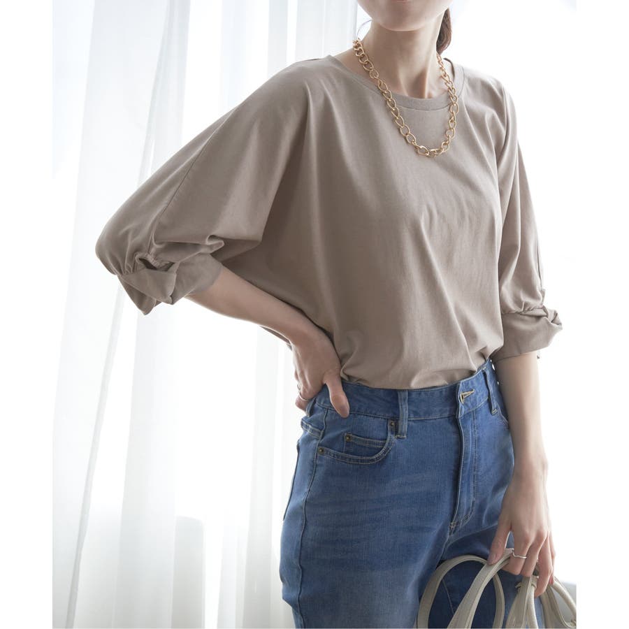 袖にデザイン性があるため、シンプルなボトムとのコーディネートもサマになります。