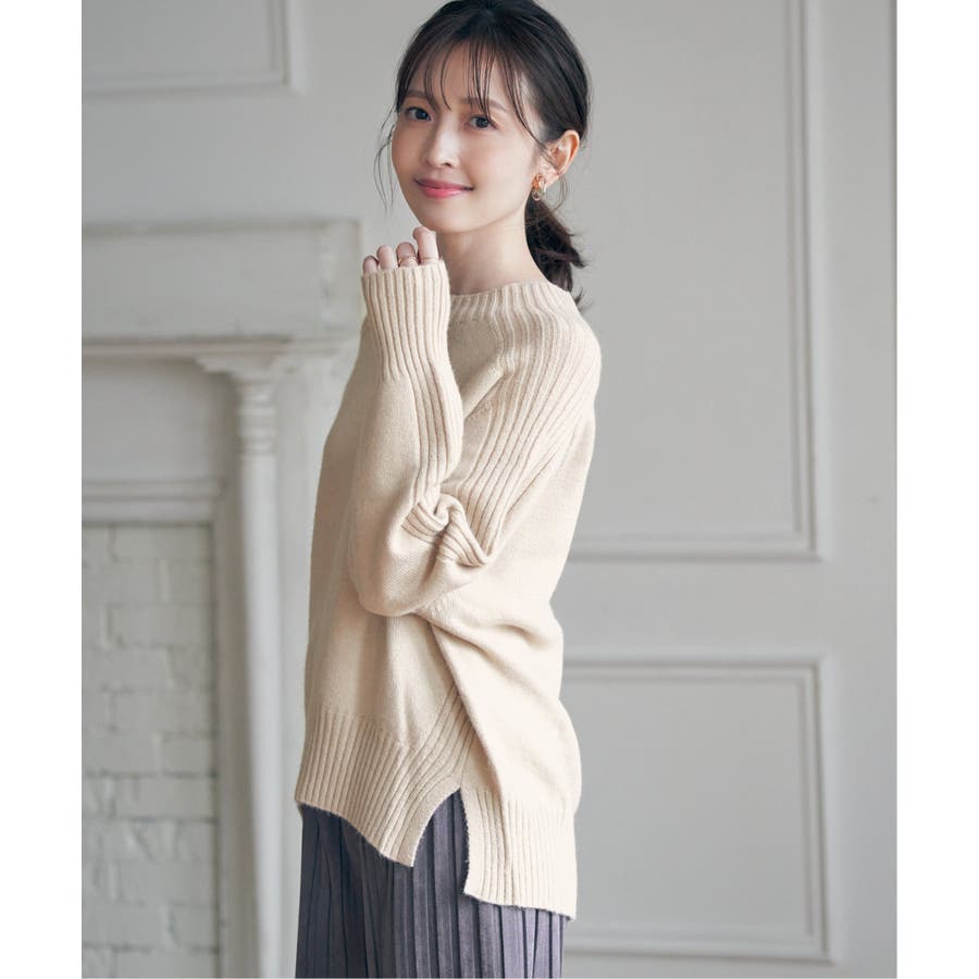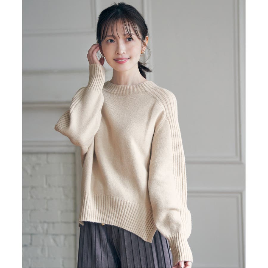 袖口や裾、肩回りにリブ編みの切り替えをいれることでさり気ないこだわりを表現し、