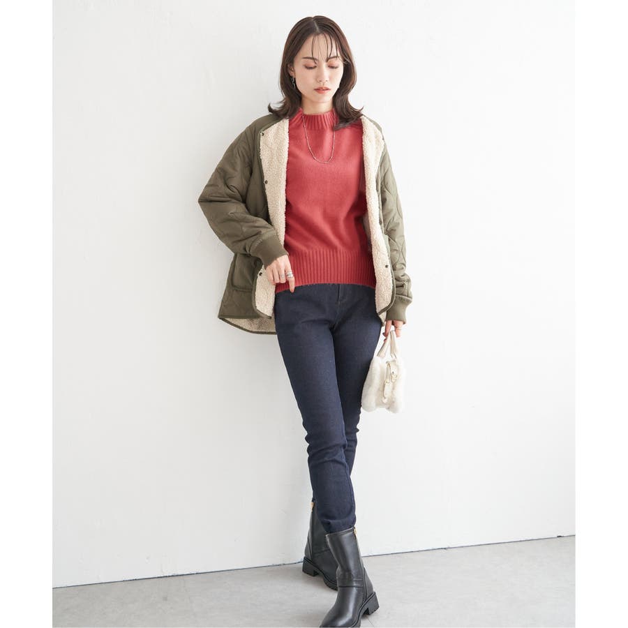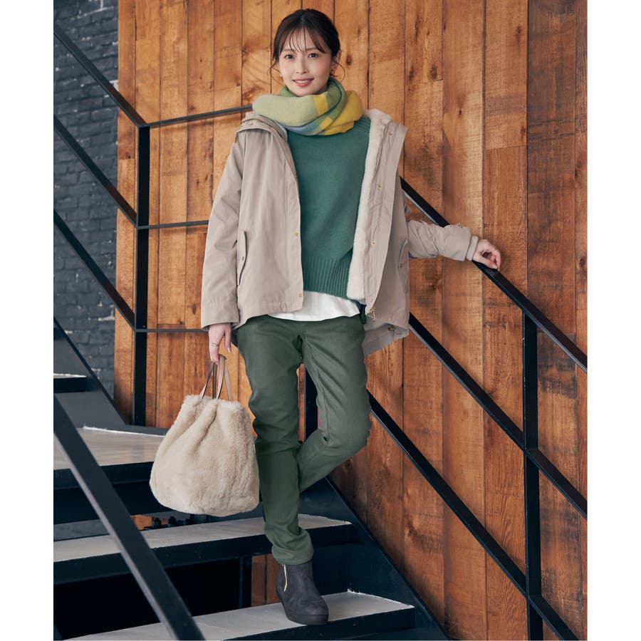 首元は邪魔にならない程度の立ち具合で、あたたかさをキープしたまま首をほっそり見せてくれます。