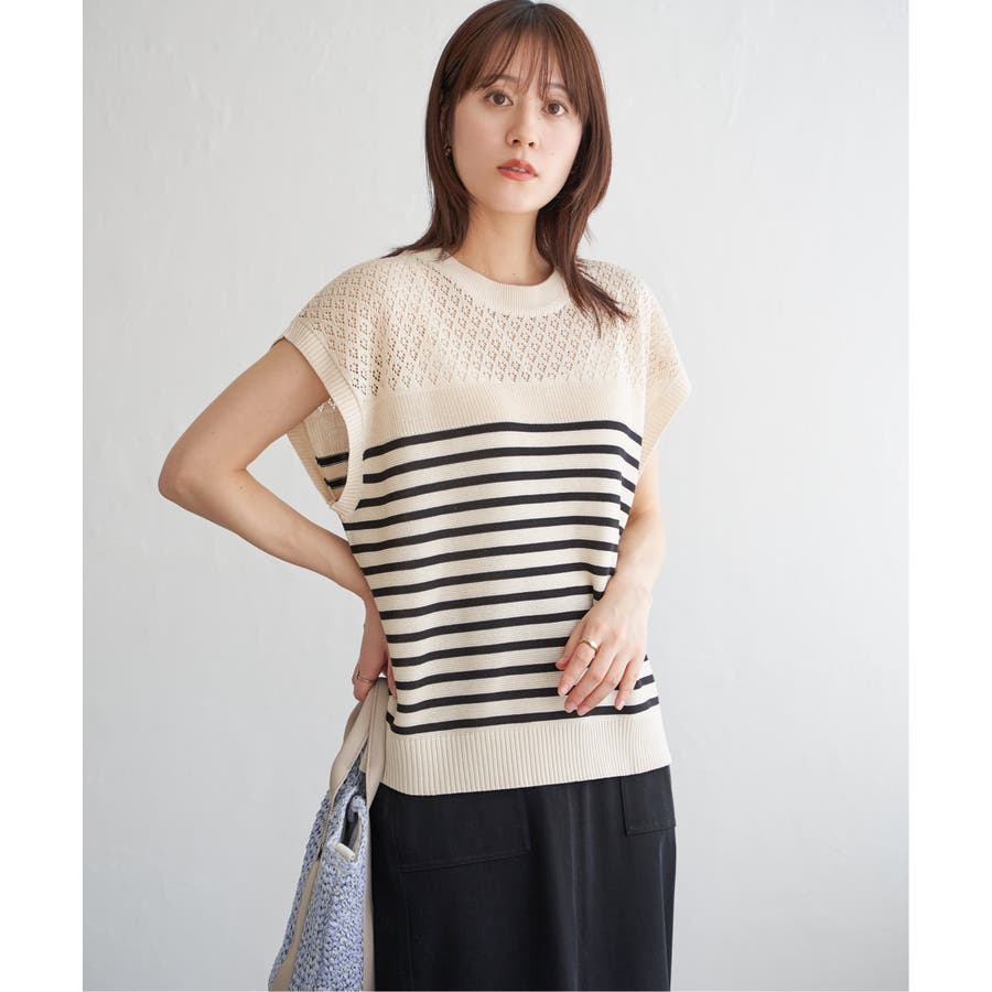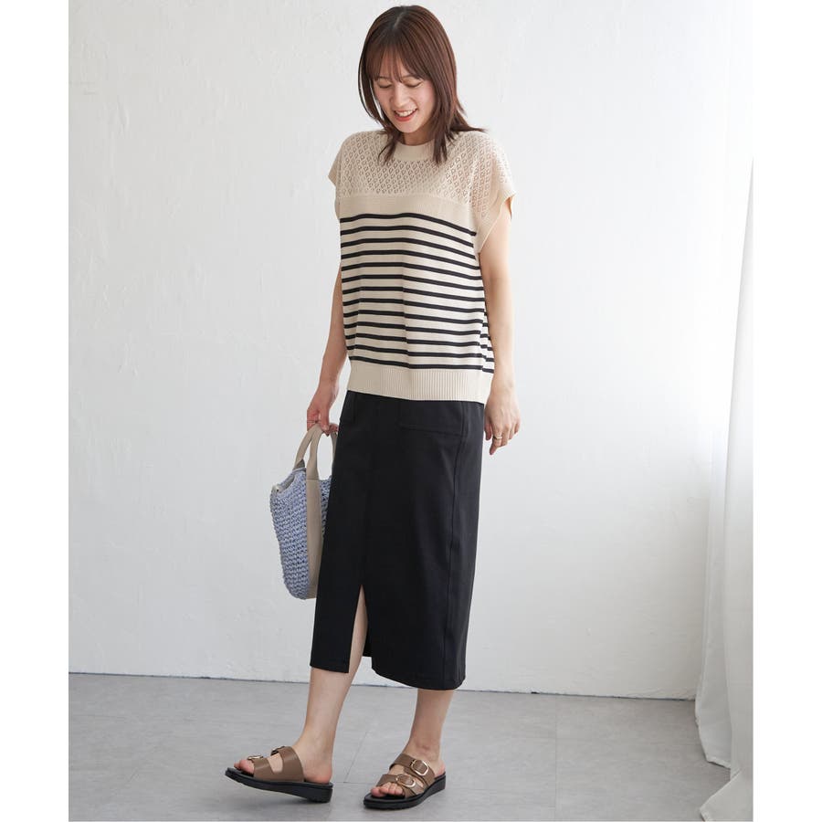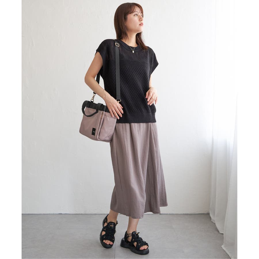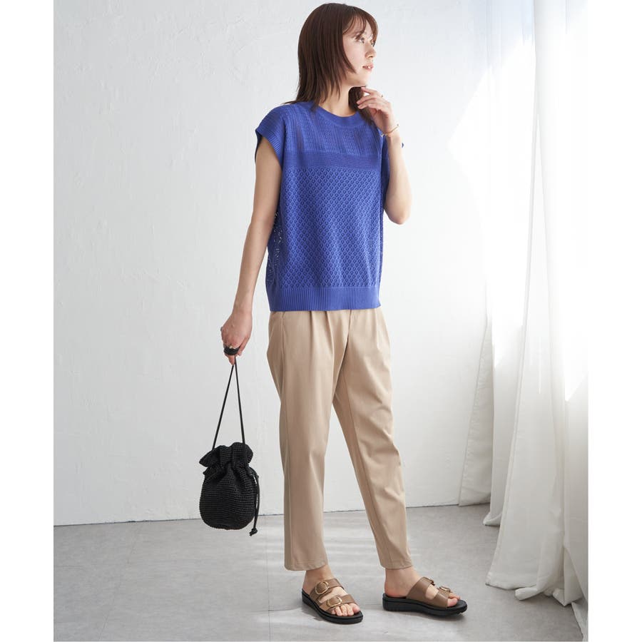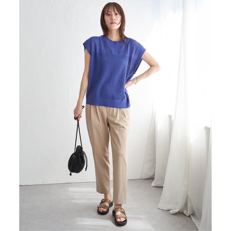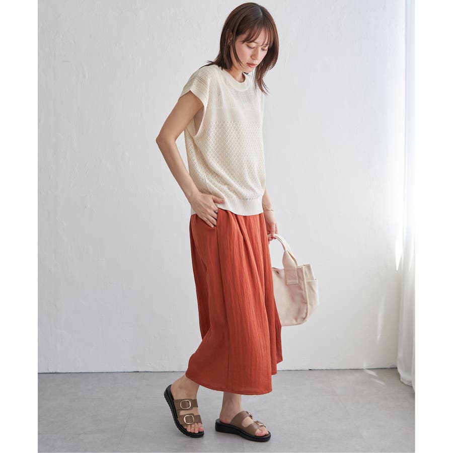 ・暑い時期にも着やすく、さりげない肌見せスタイルが楽しめます。