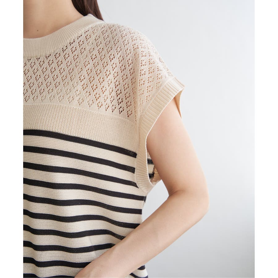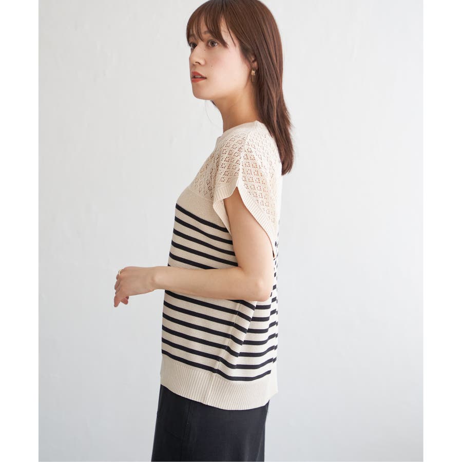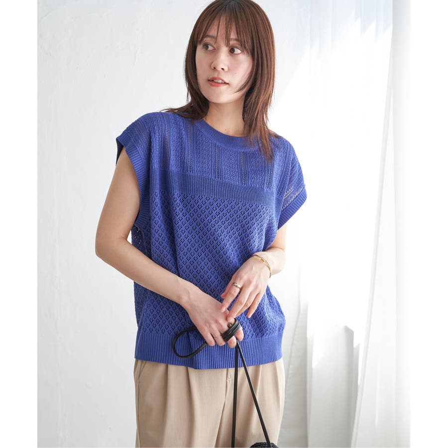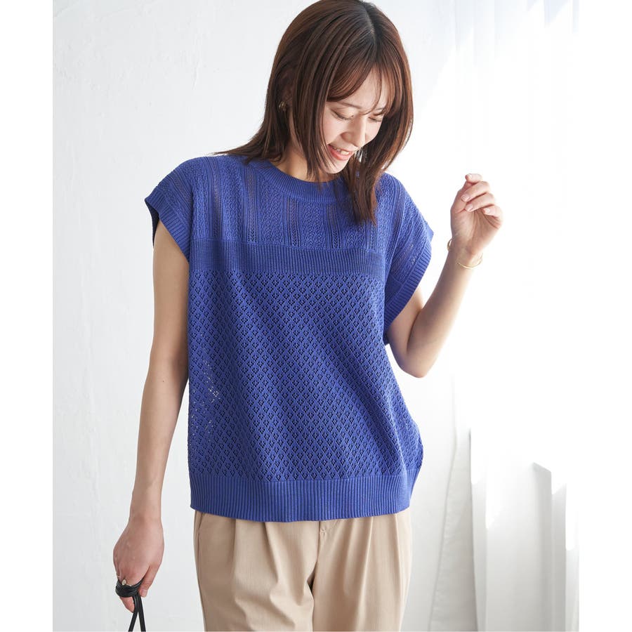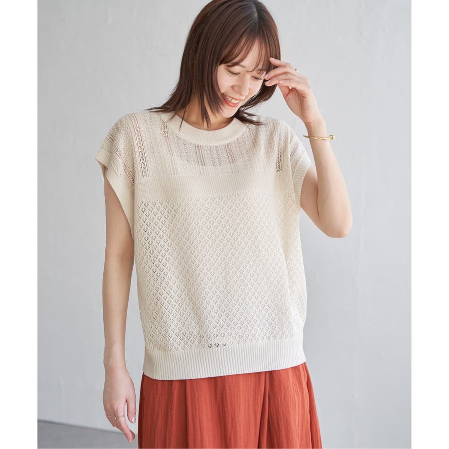 ほど良い肌見せが叶う、ドライタッチな透かし編みニットプルオーバー。