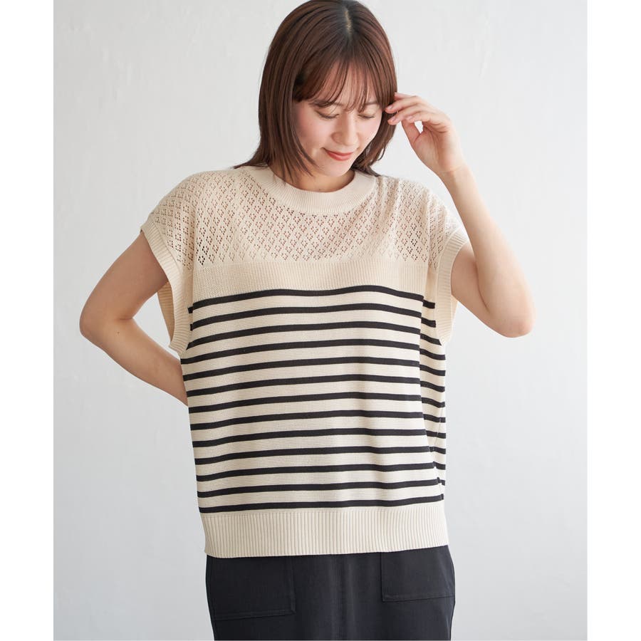 透かし編みニットプルオーバー
