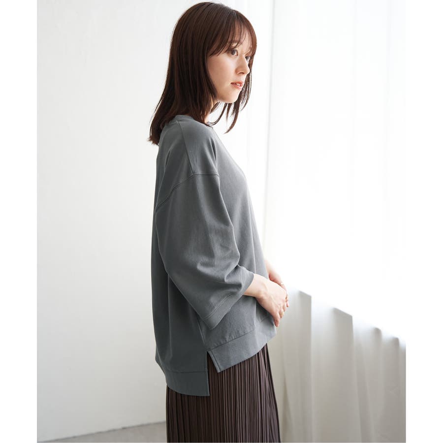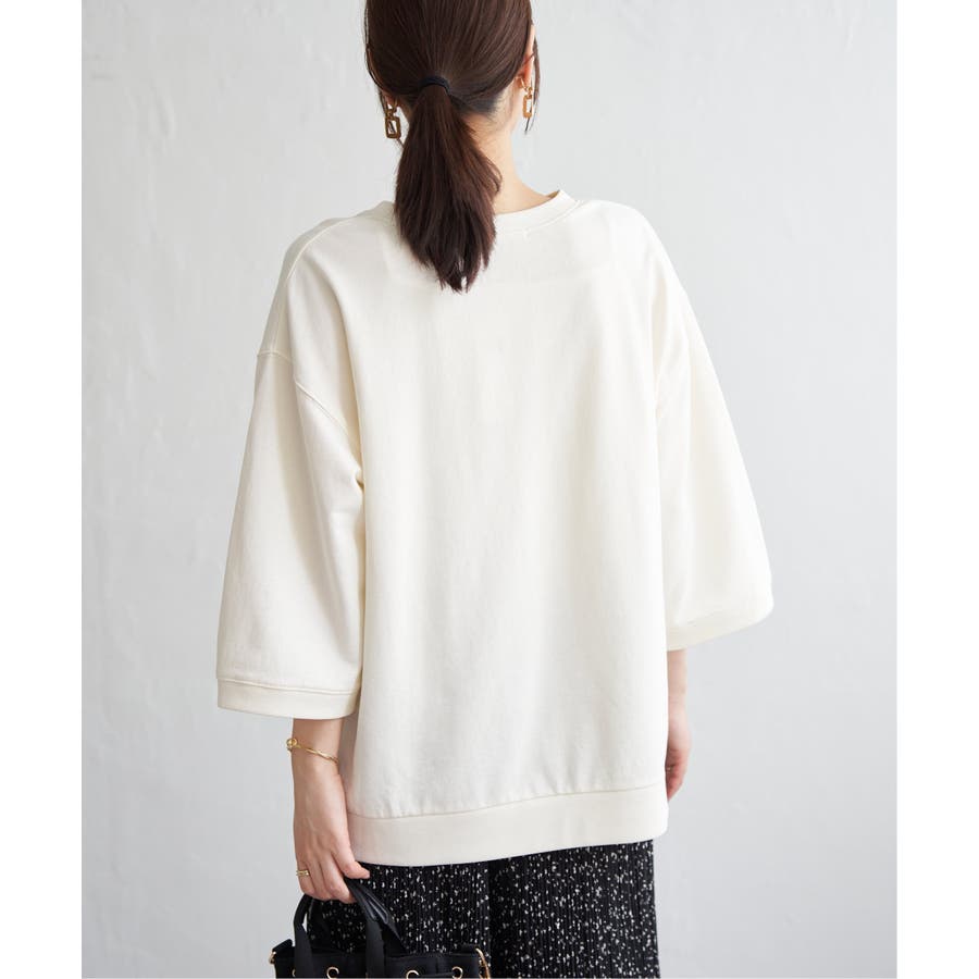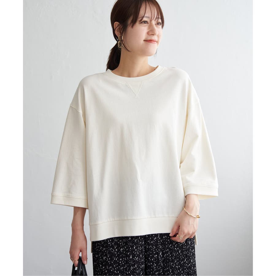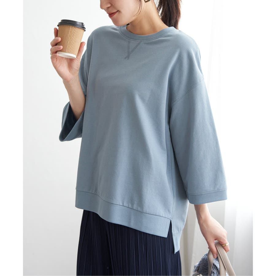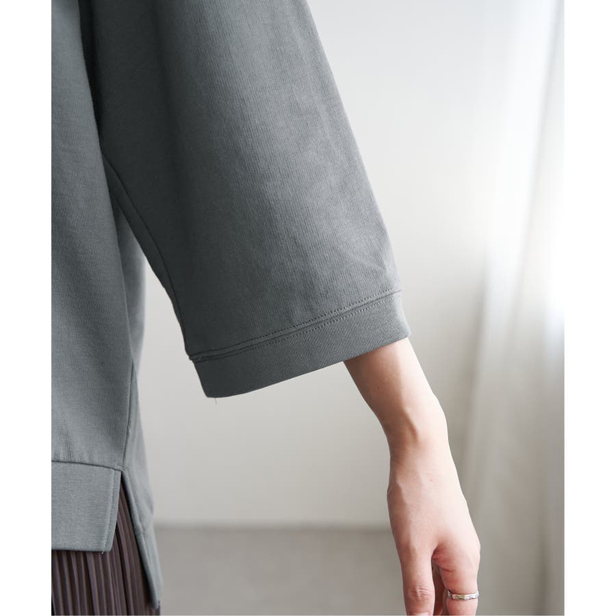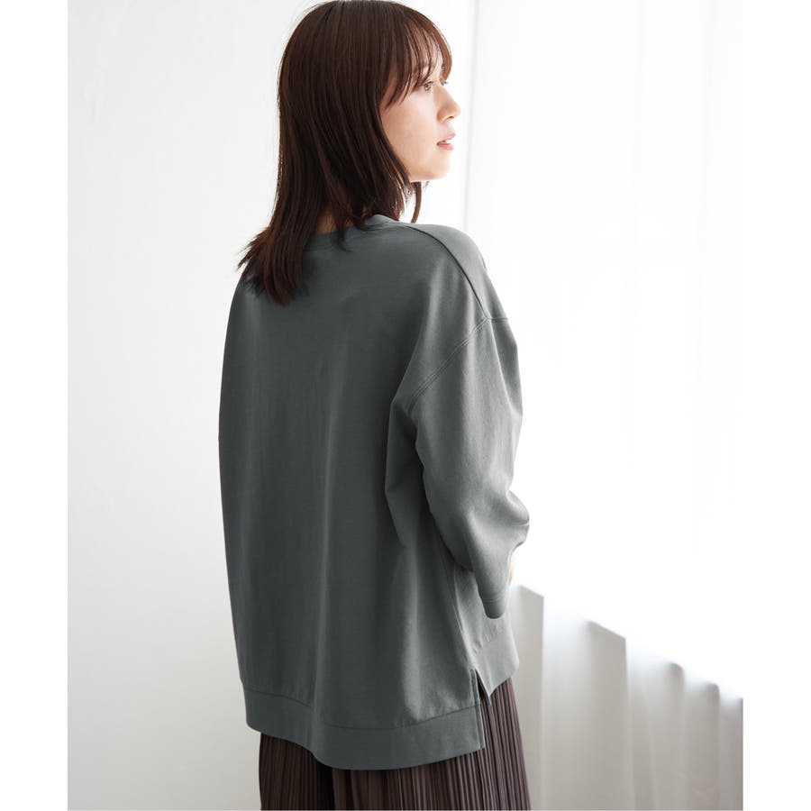 スウェットライクなデザインを接触冷感カットソーで仕上げた、夏にもうれしい一枚です。