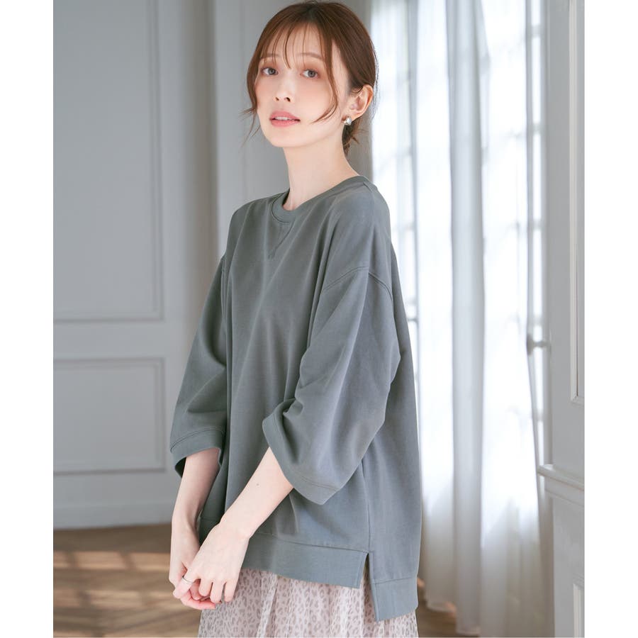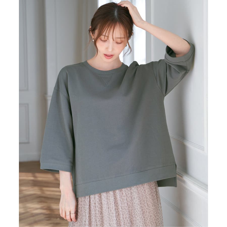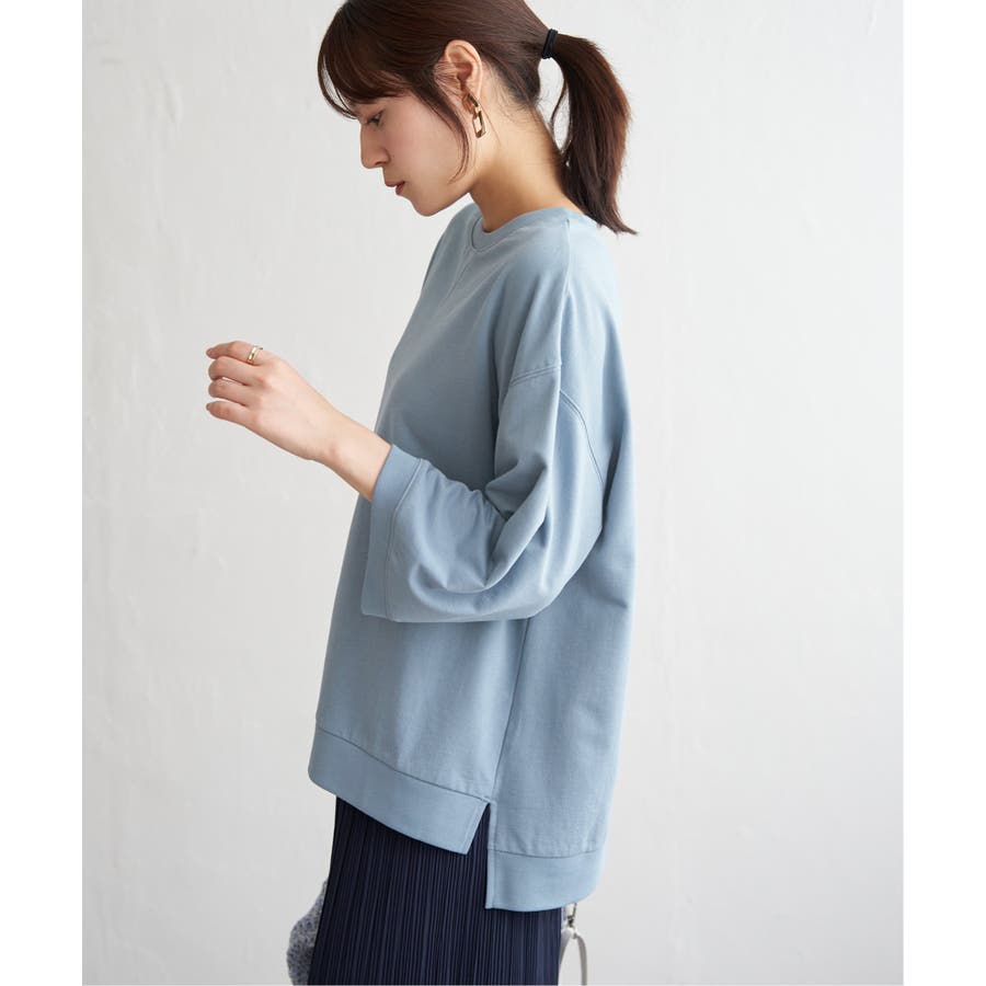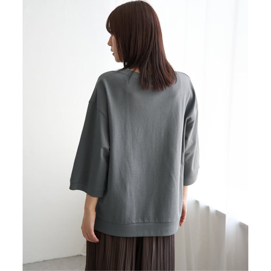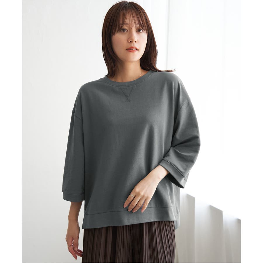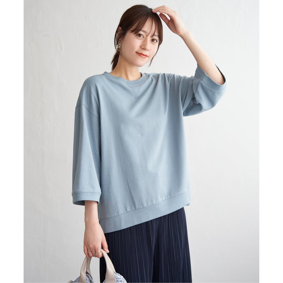 スウェットライクなデザインを接触冷感カットソーで仕上げた、夏にもうれしい一枚です。