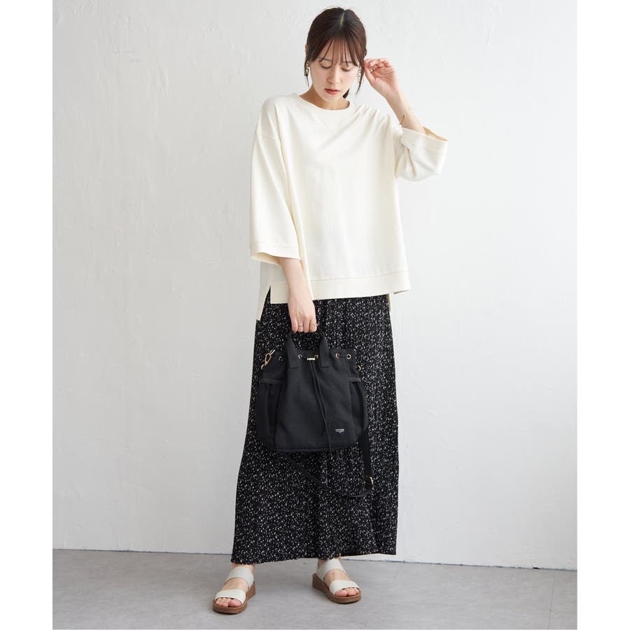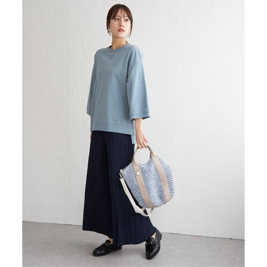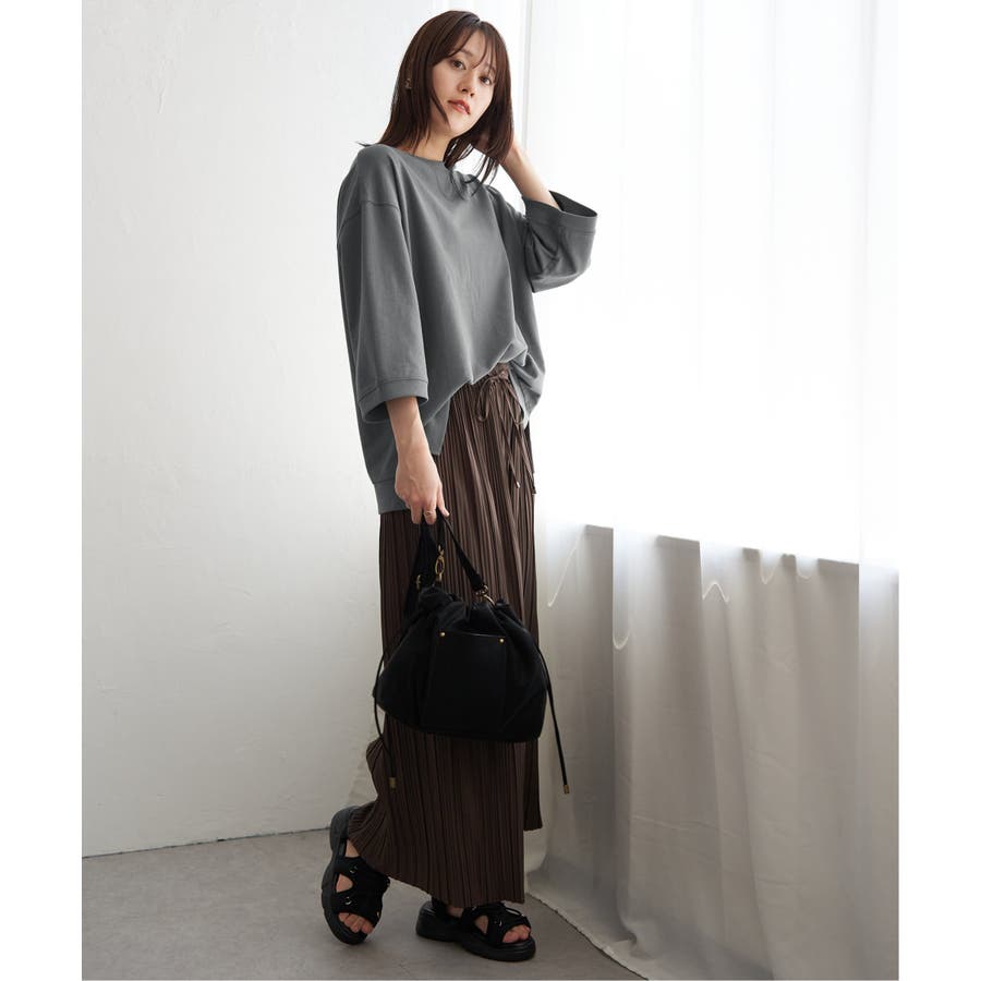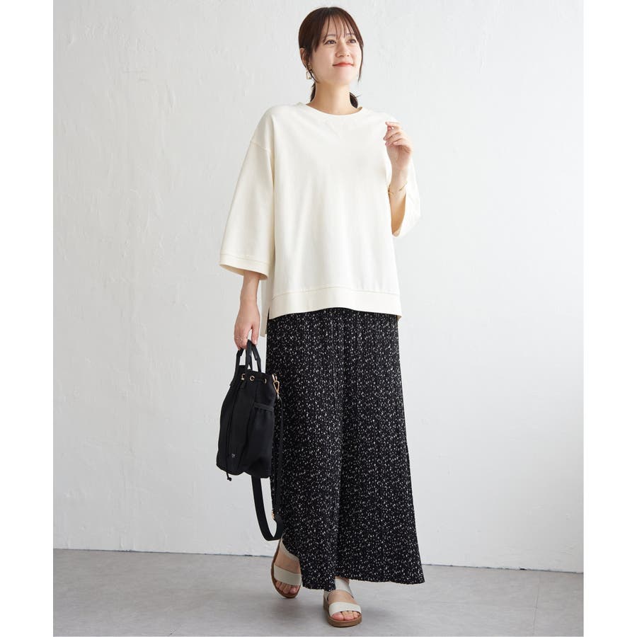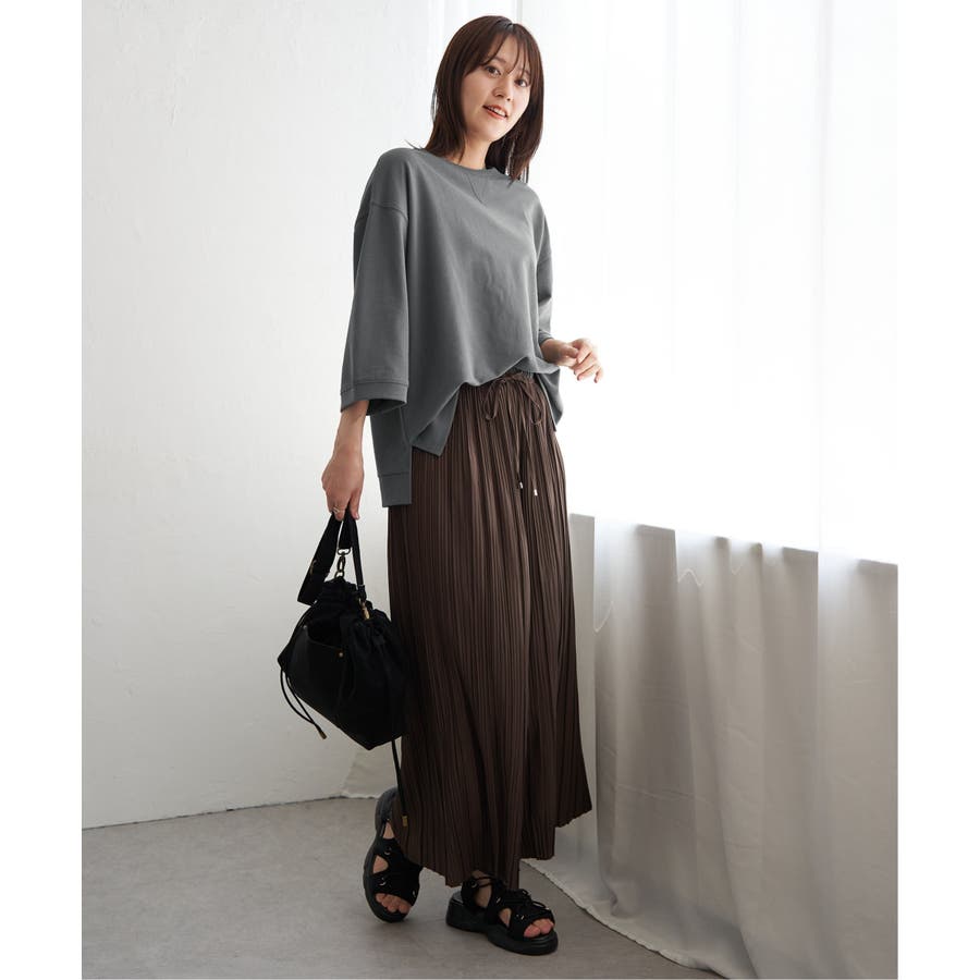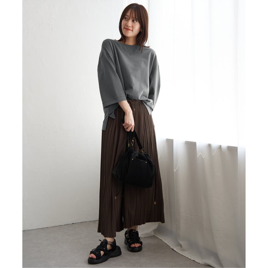 ・体型カバーできるゆったりシルエットは、肌離れし涼しく、プリーツパンツやスリムなボトムと相性◎です。