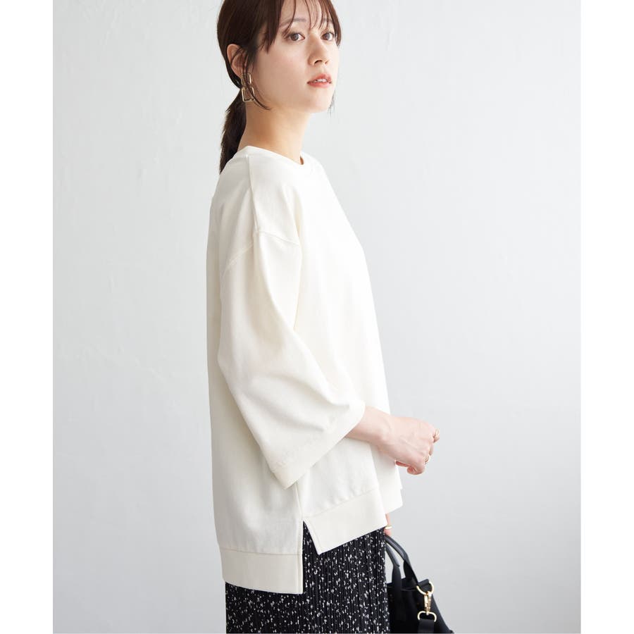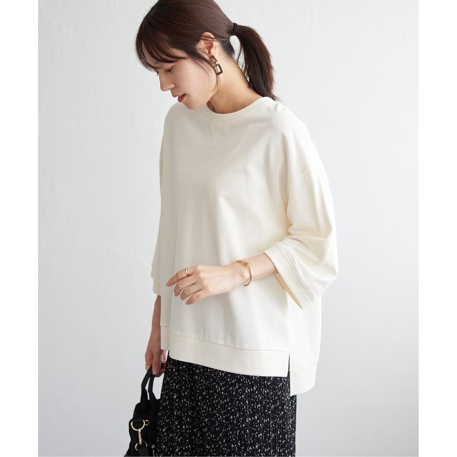 ガゼットやリブ使いなど、スウェット見えするゆったりシルエットのTシャツ。
