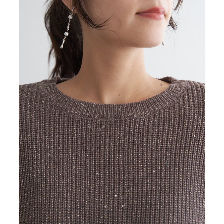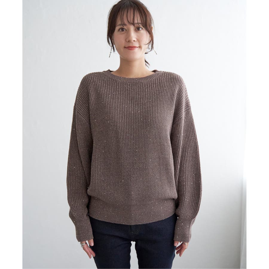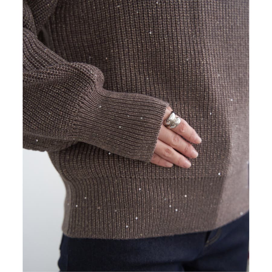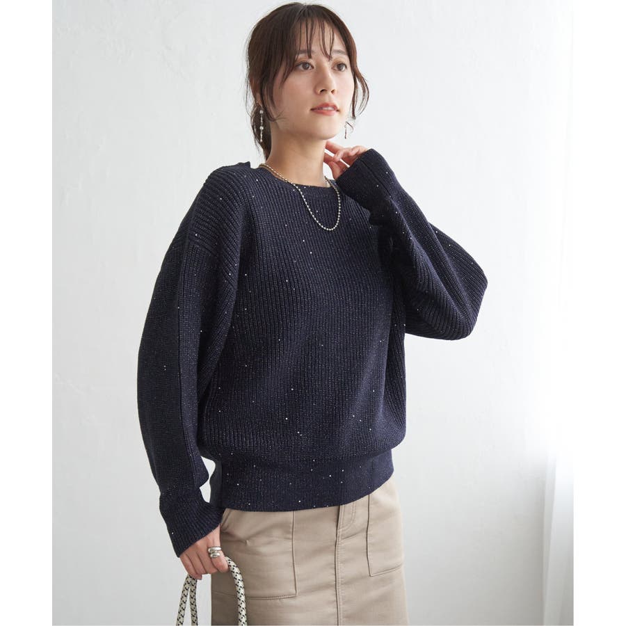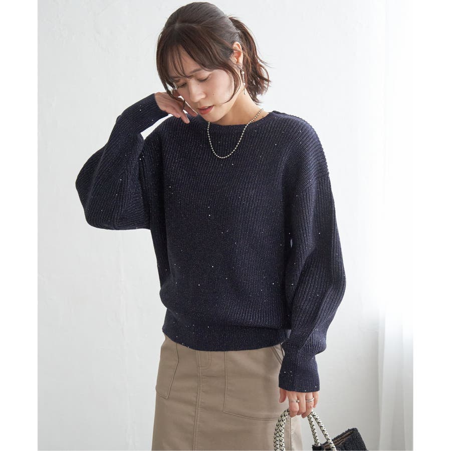 ・昨年好調のラメ+スパンコールの糸を使用したニット。いつものコーデのトップスを変えるだけで今年顔になれる旬なアイテム。