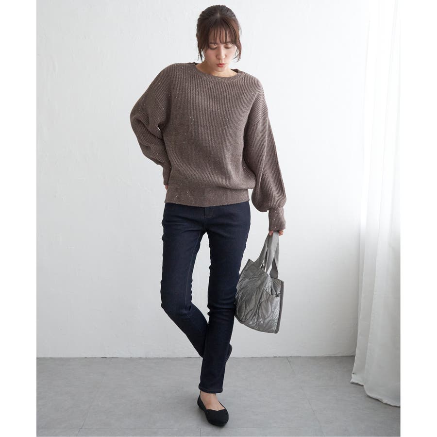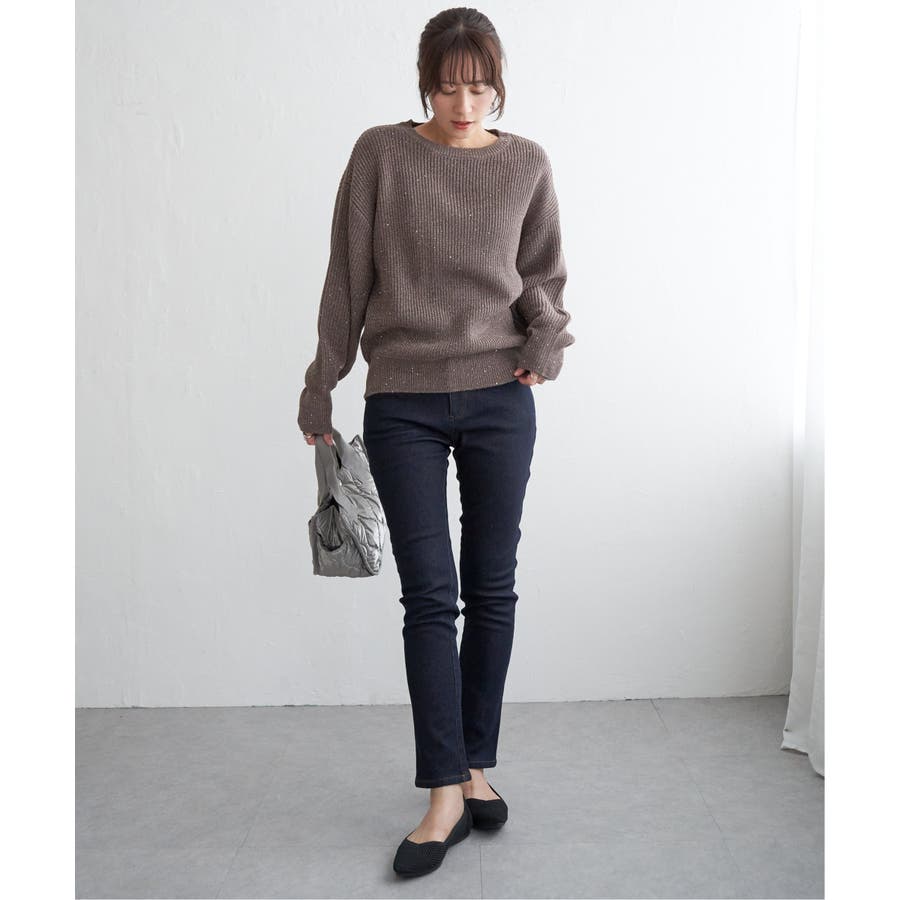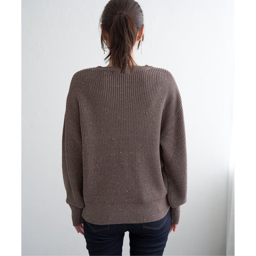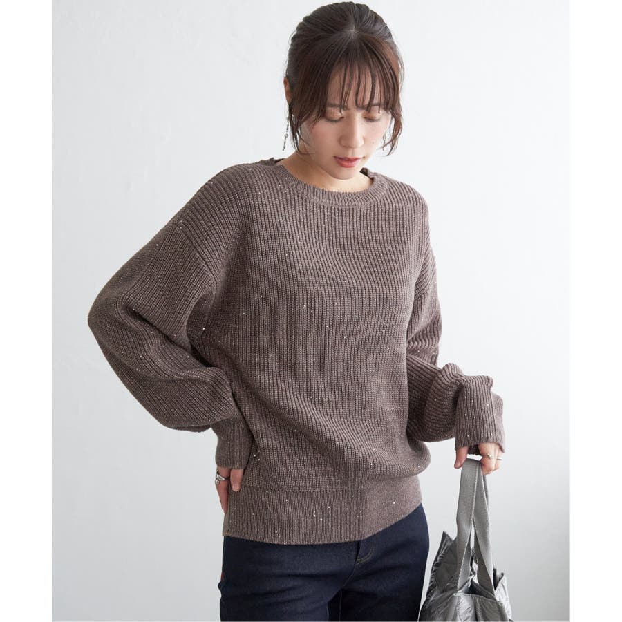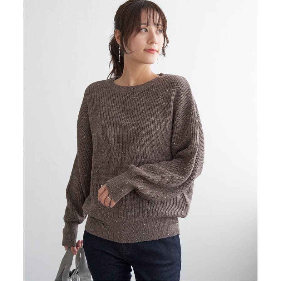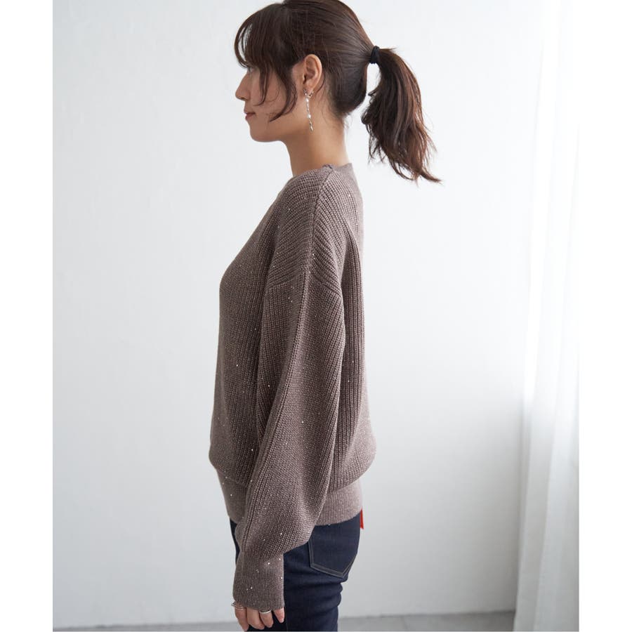 ・昨年好調のラメ+スパンコールの糸を使用したニット。いつものコーデのトップスを変えるだけで今年顔になれる旬なアイテム。