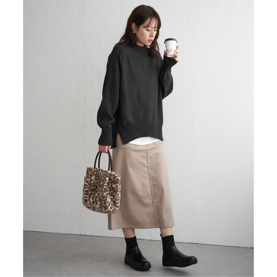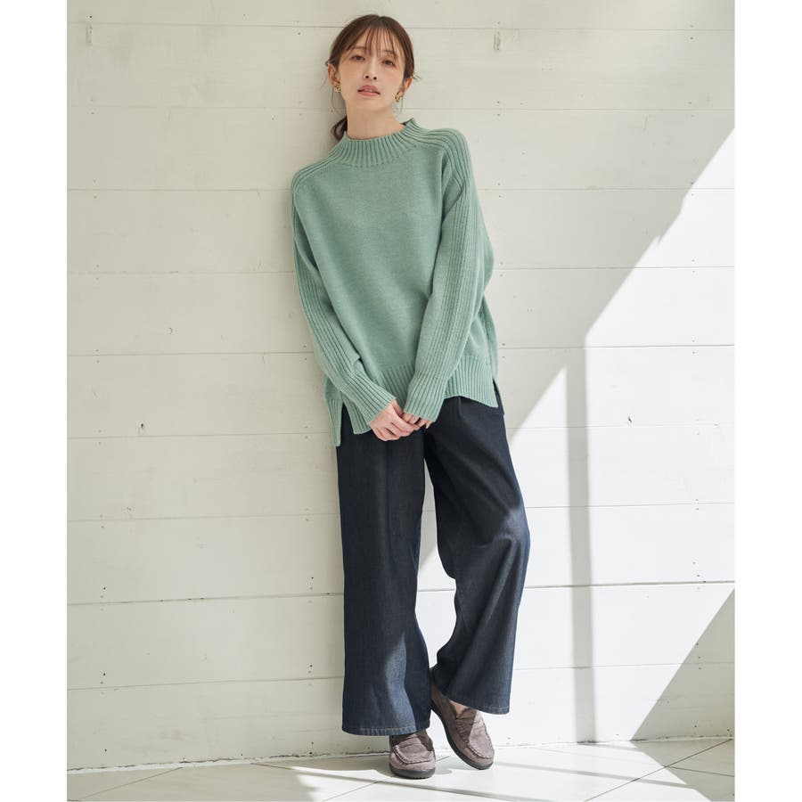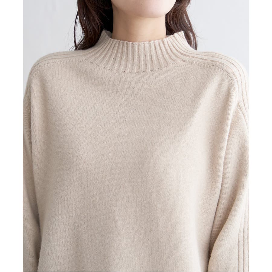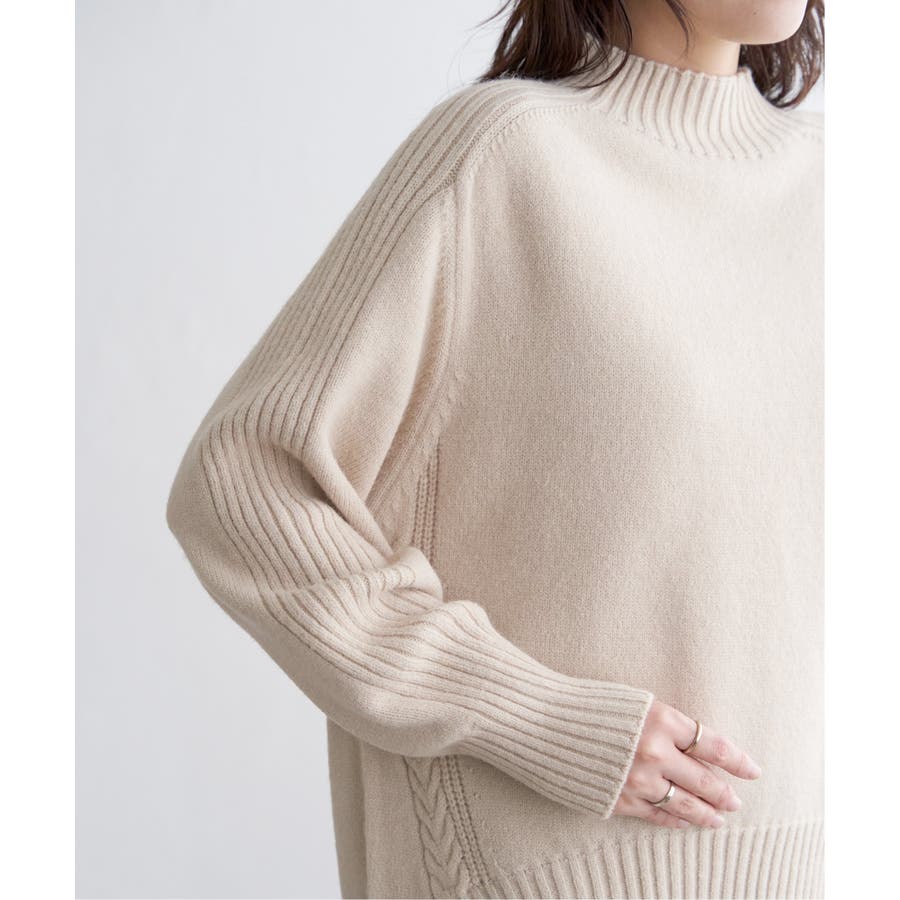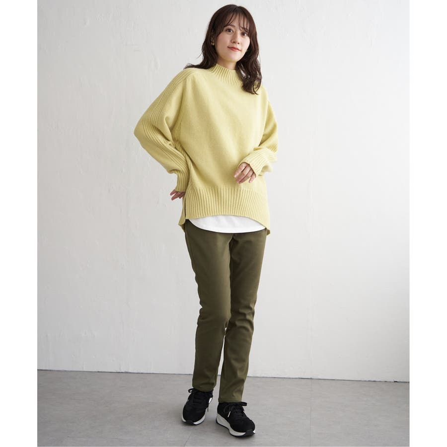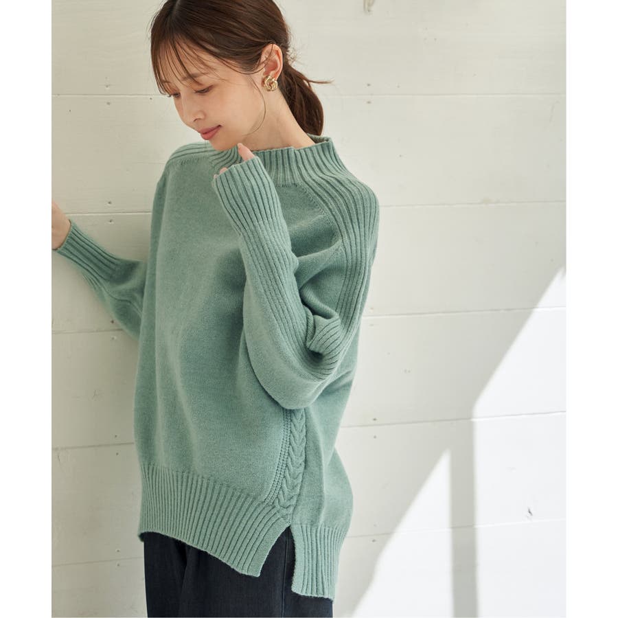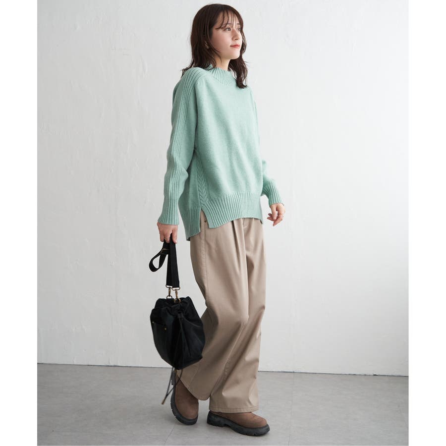 前振りにした脇線の裾にスリットが入った、前後差をつけた着丈のニット。