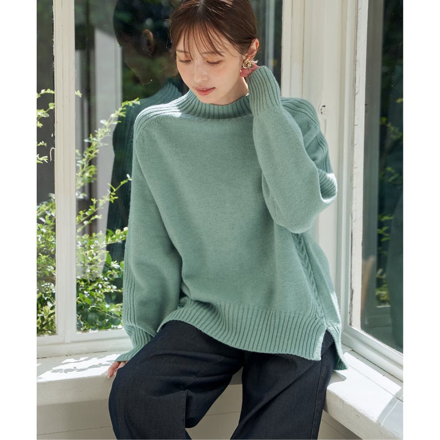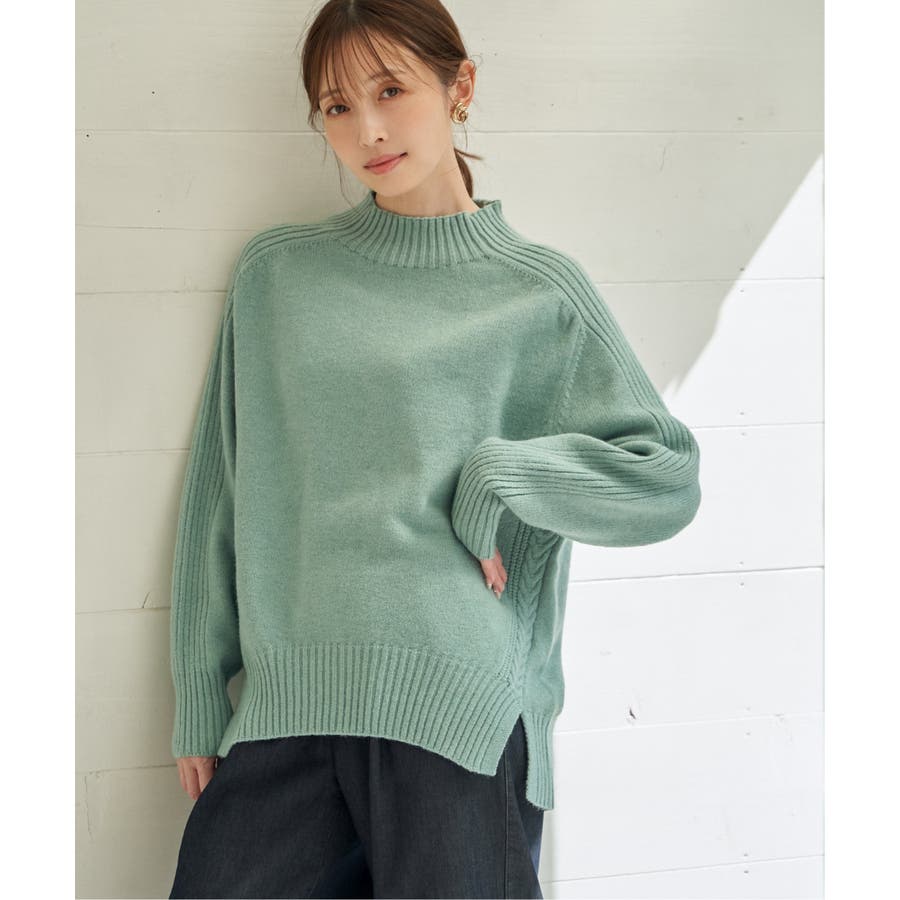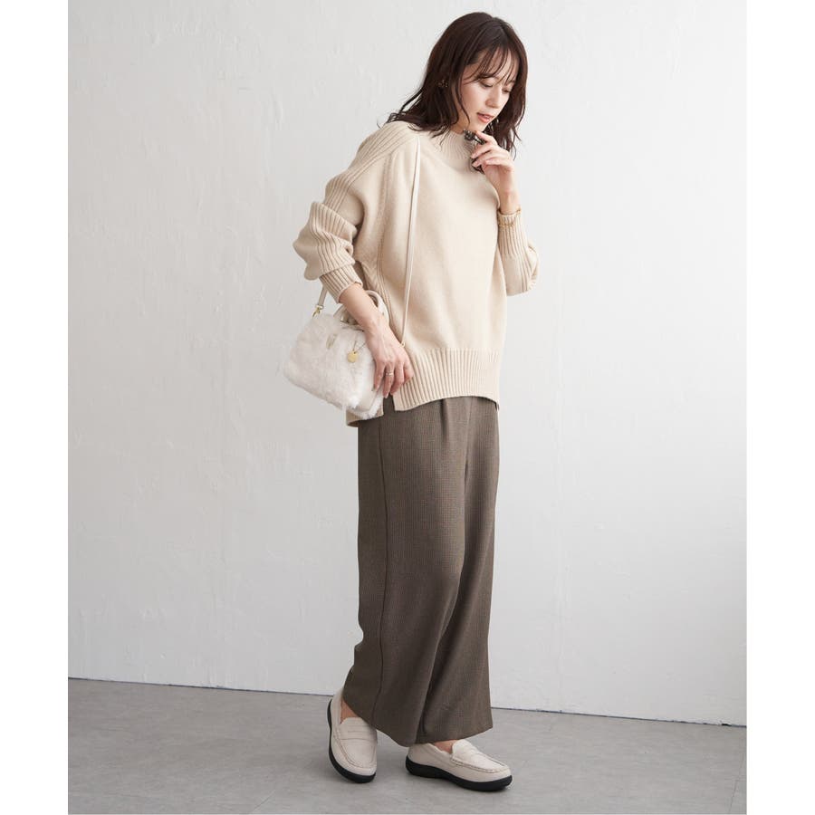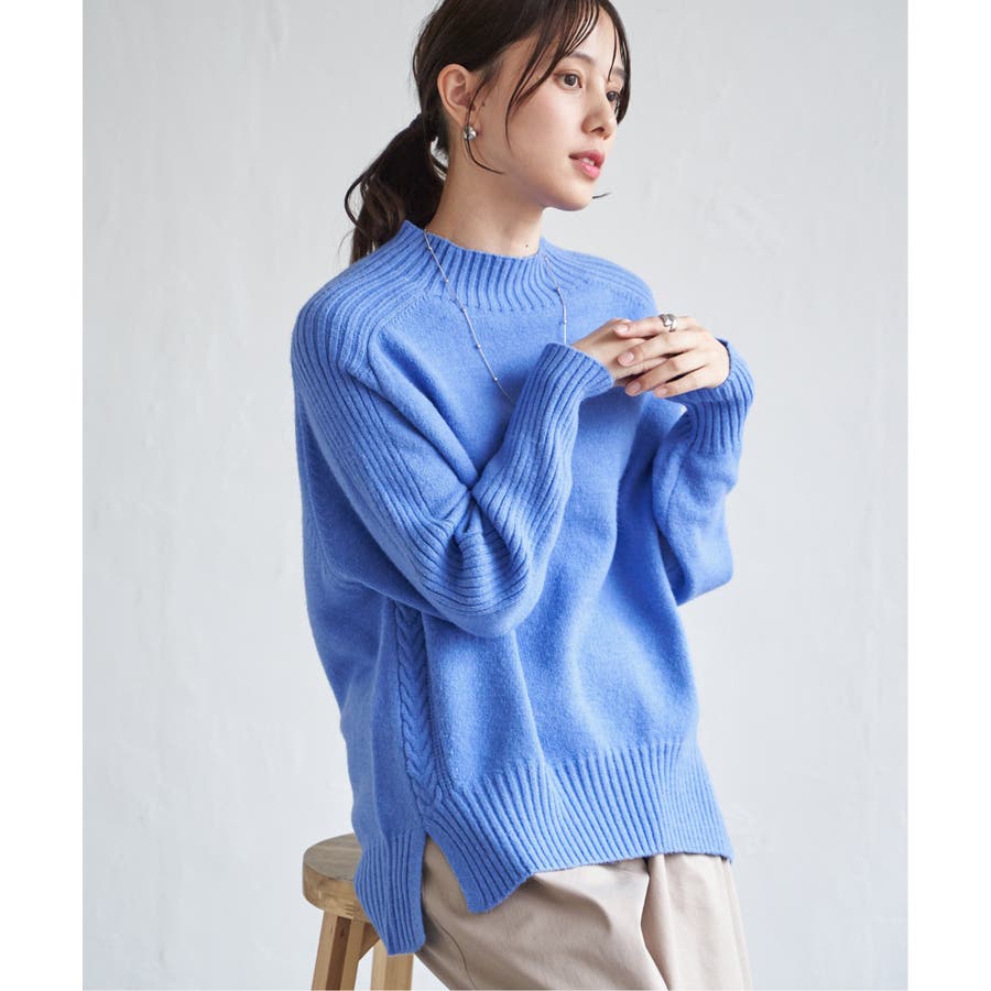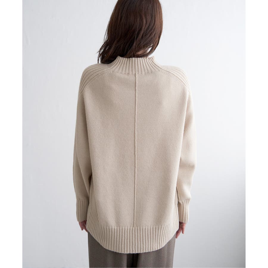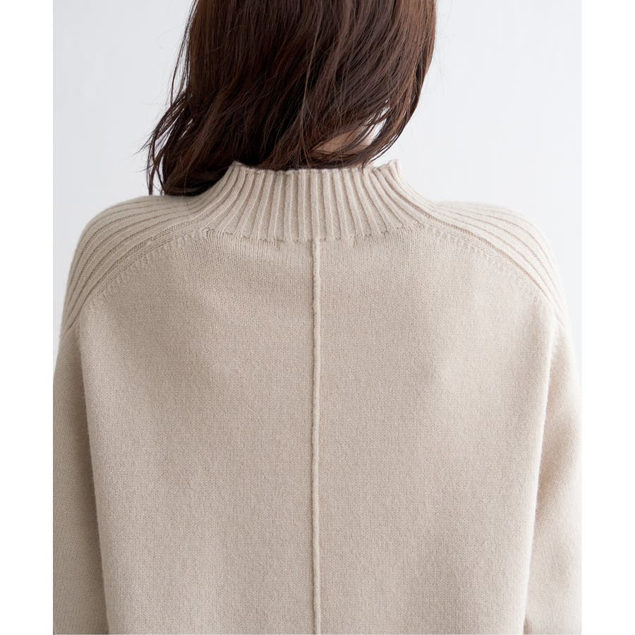 前振りにした脇線の裾にスリットが入った、前後差をつけた着丈のニット。