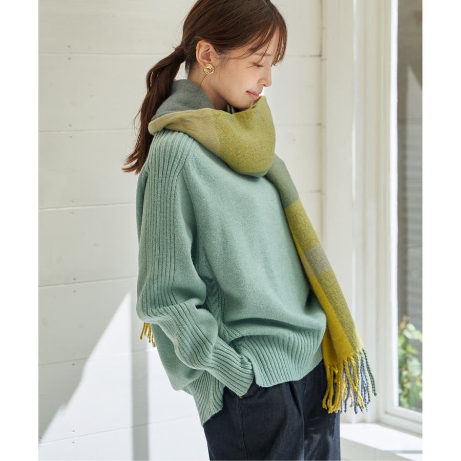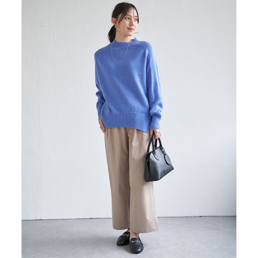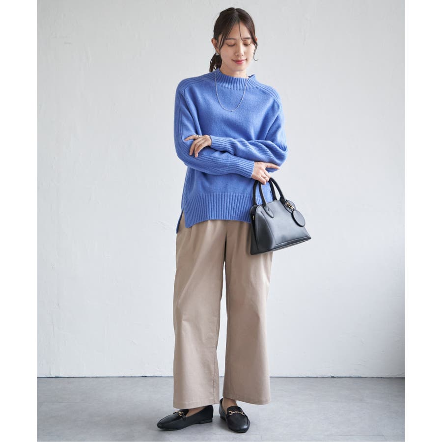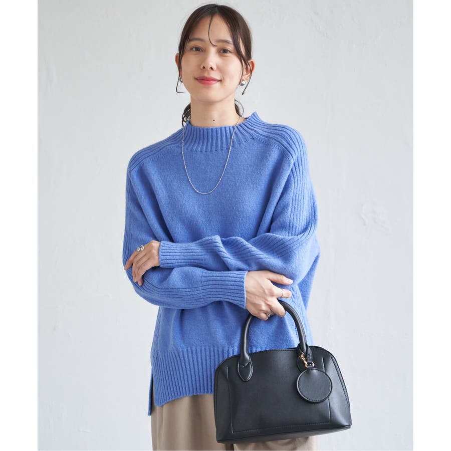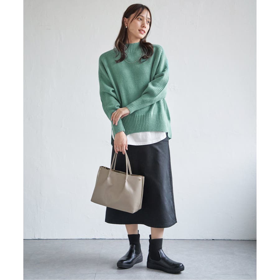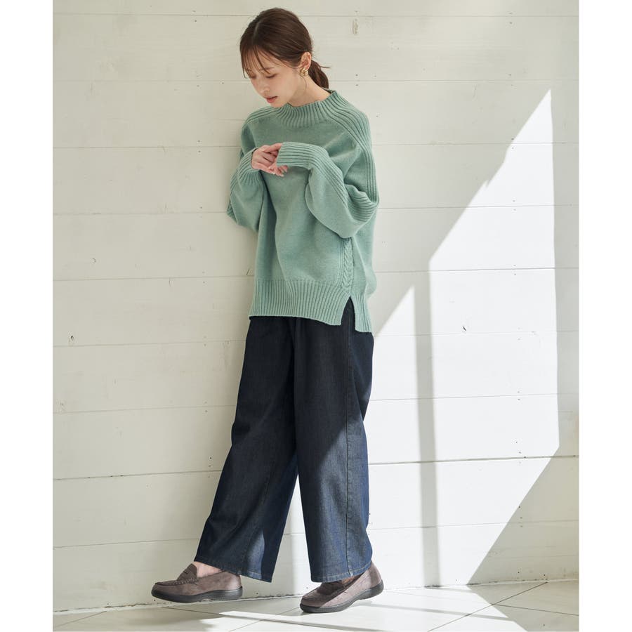 前振りにした脇線の裾にスリットが入った、前後差をつけた着丈のニット。
