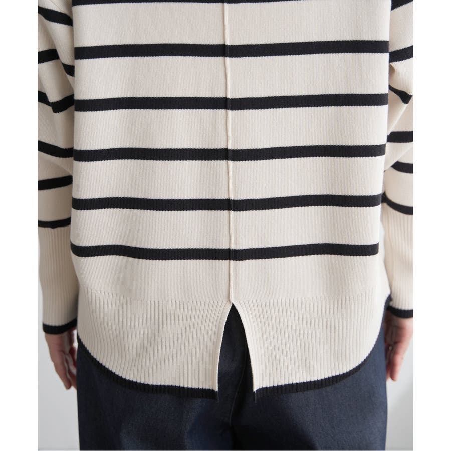 コットン混素材でやわらかな着心地のバックスリットニット。