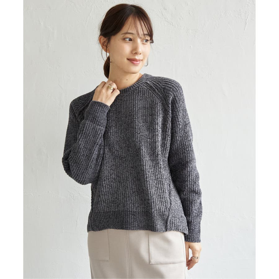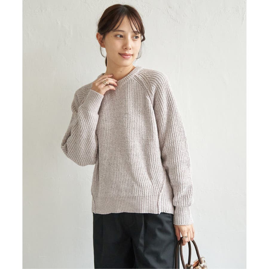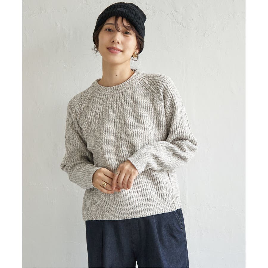 畦編みモールニットプルオーバー