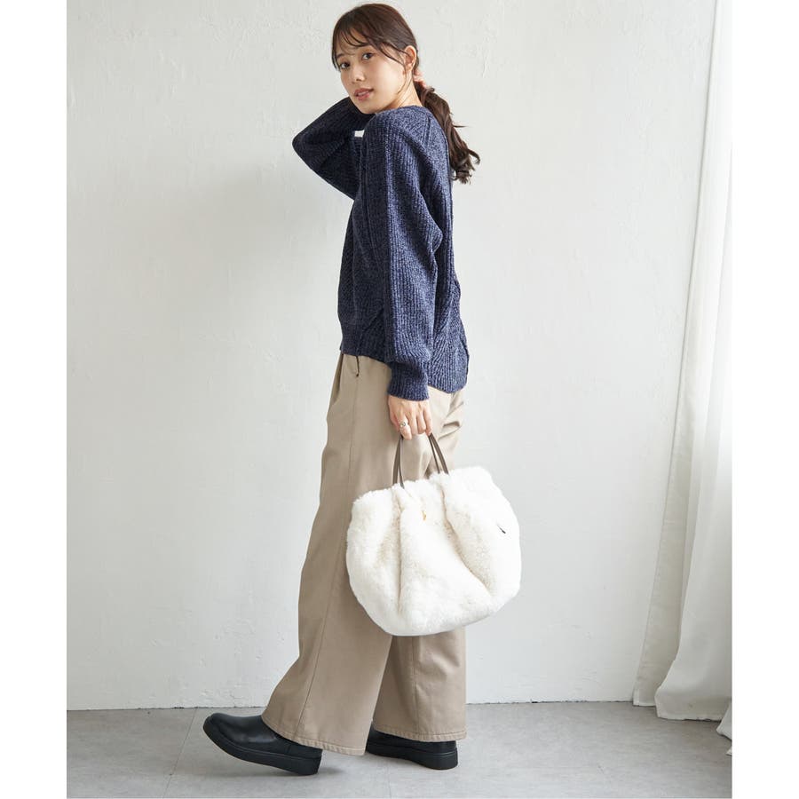やわらかい着心地と、トレンドの毛足のあるモール糸が可愛いニット。