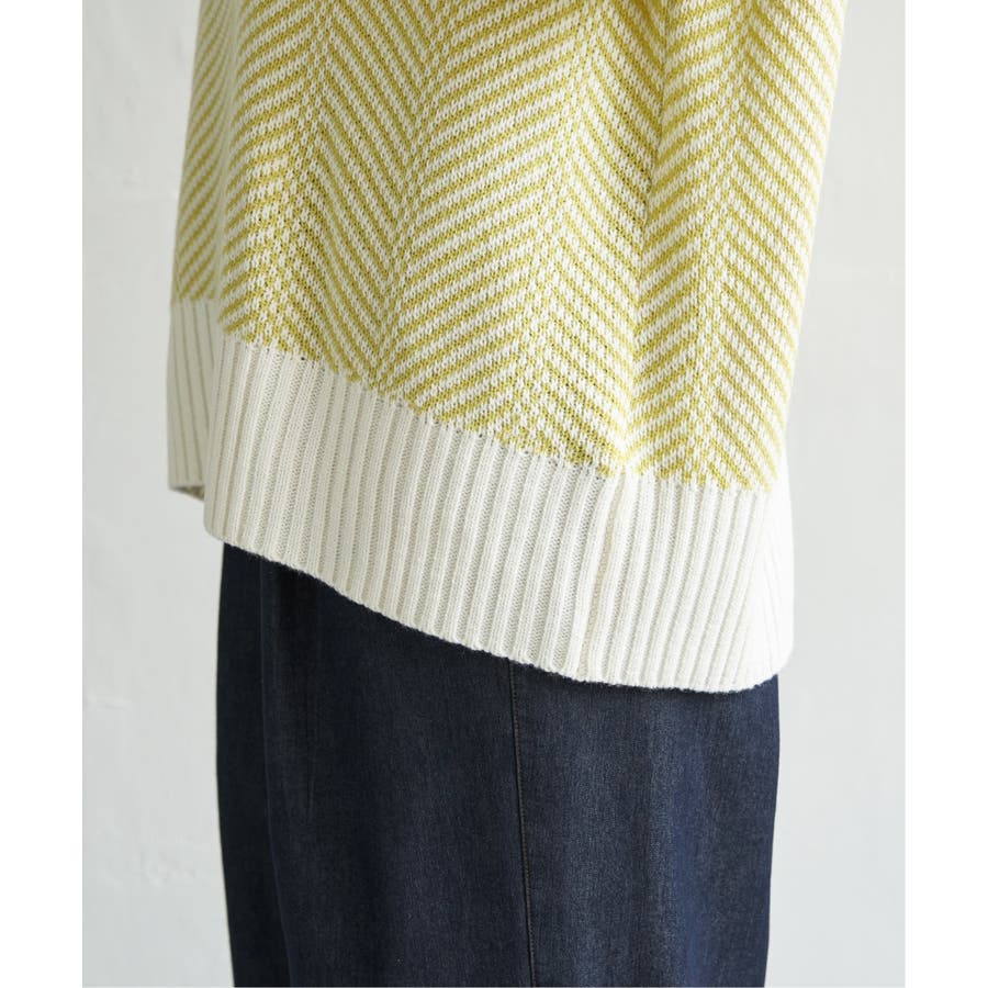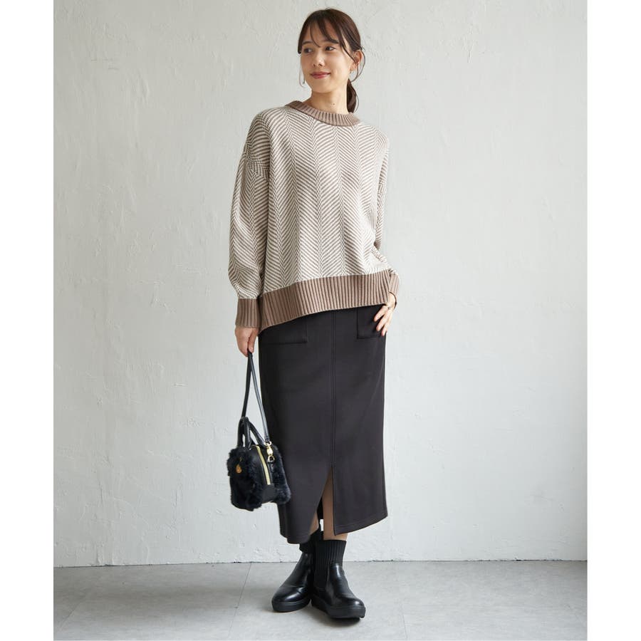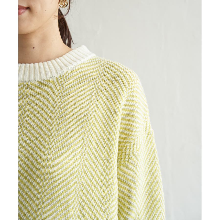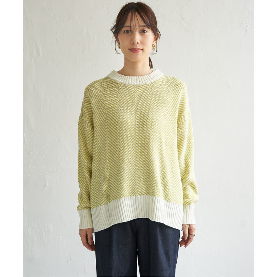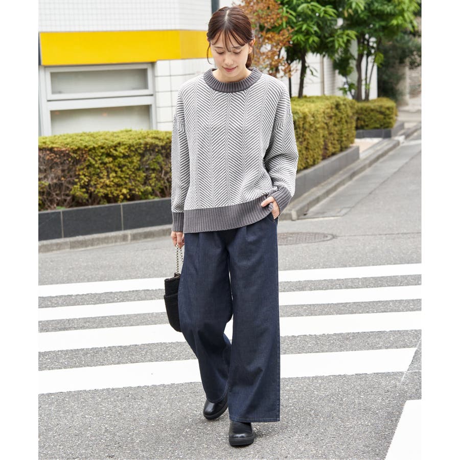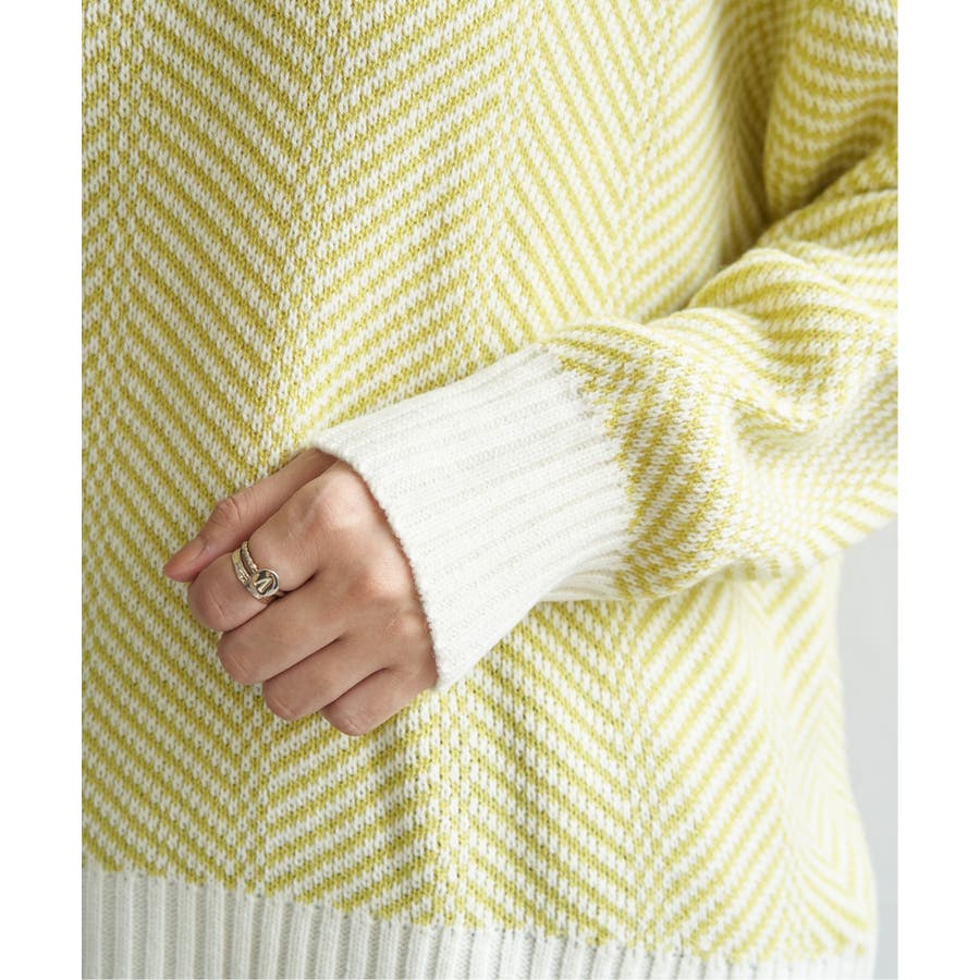 ・スッキリ見え効果のあるヘリンボン柄の配色編みのニット