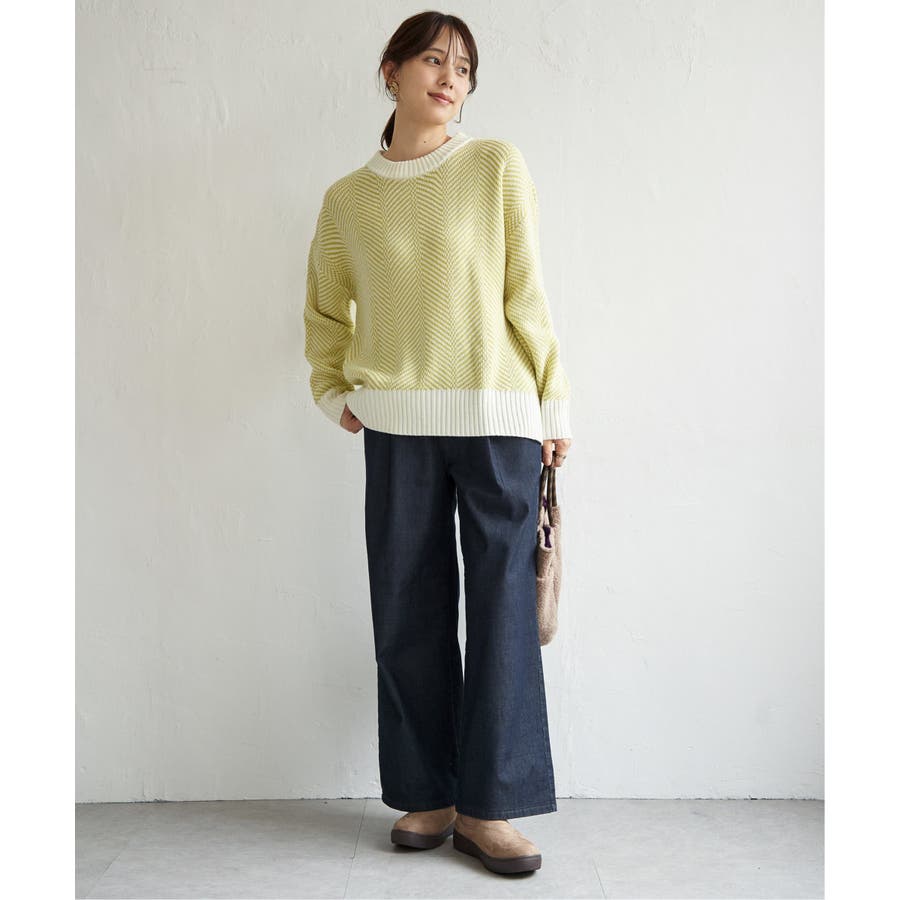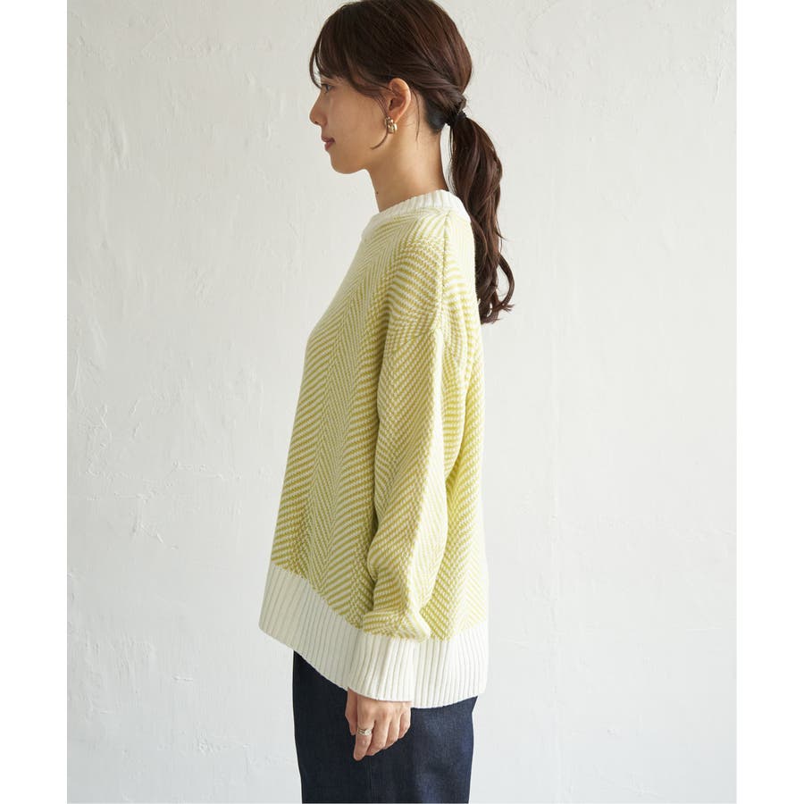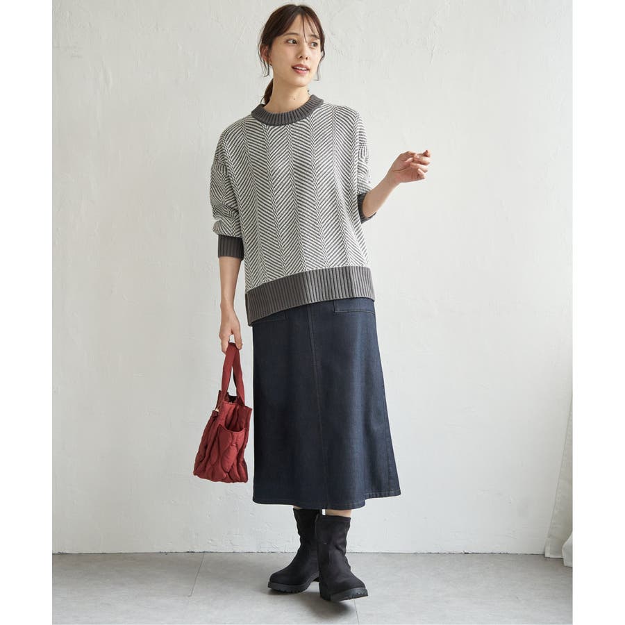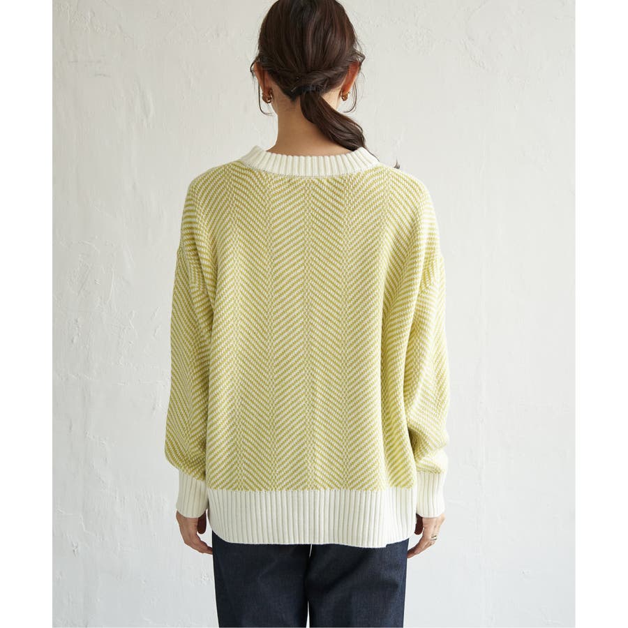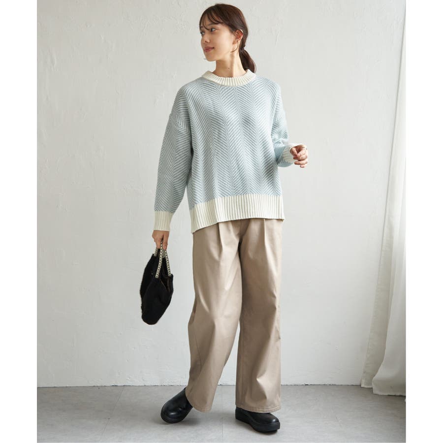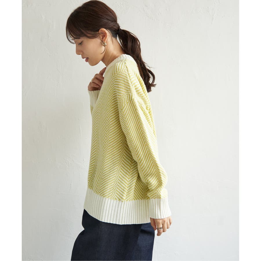 ・スッキリ見え効果のあるヘリンボン柄の配色編みのニット