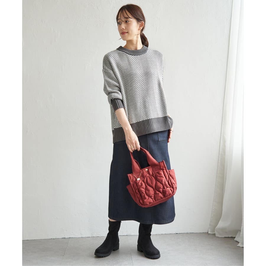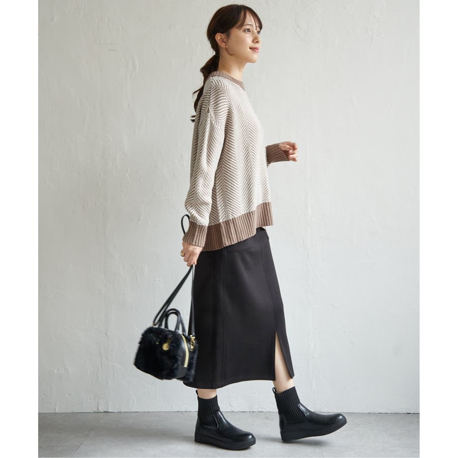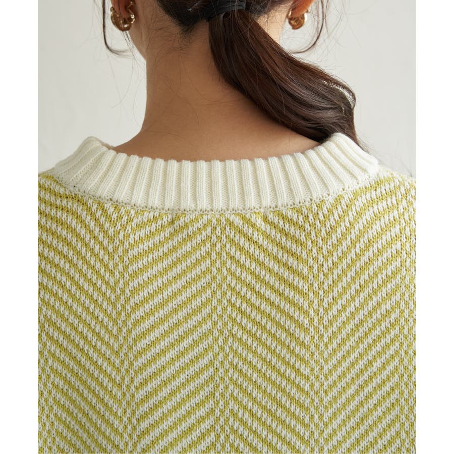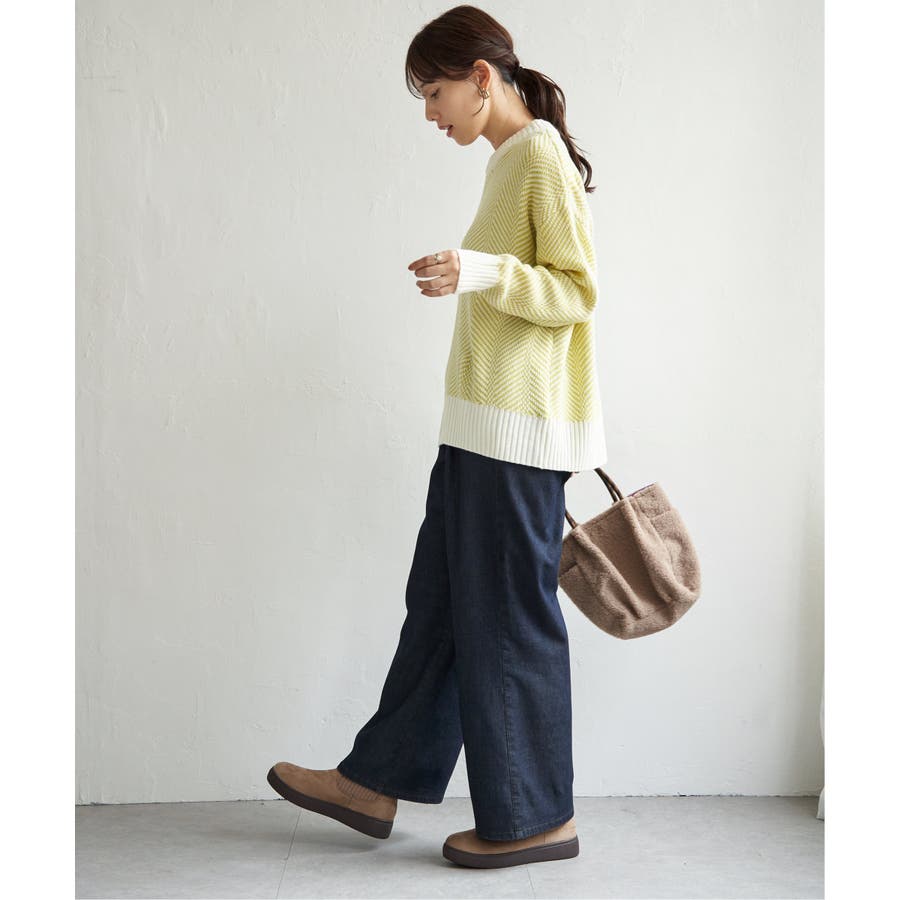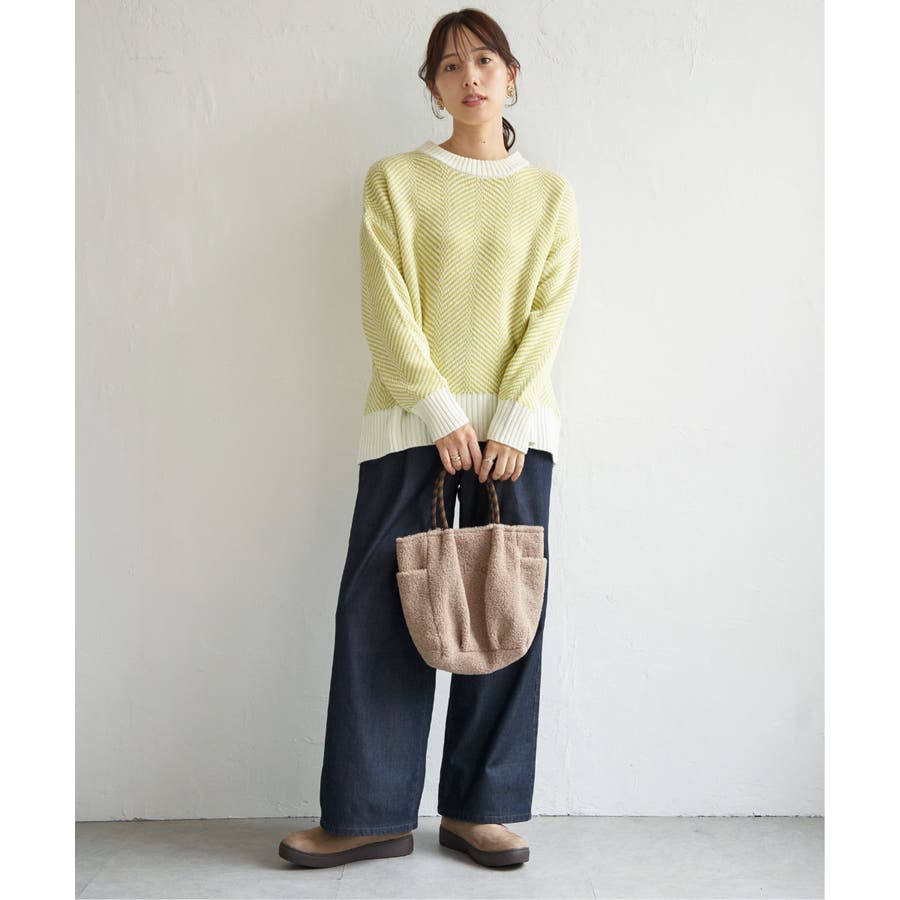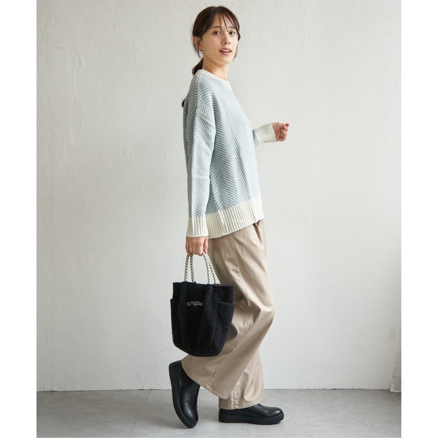 ・スッキリ見え効果のあるヘリンボン柄の配色編みのニット
