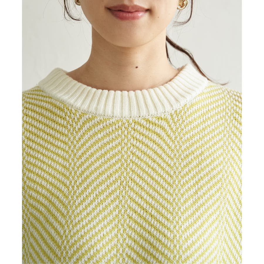 ヘリンボン柄を編地で表現したニットプルオーバー。