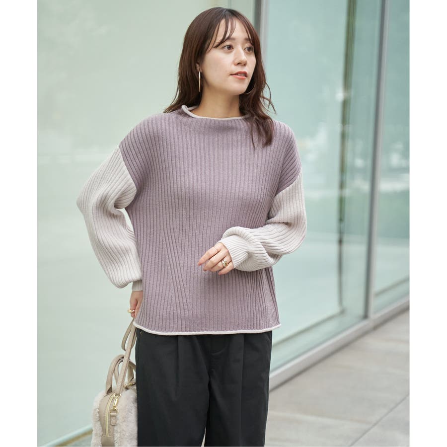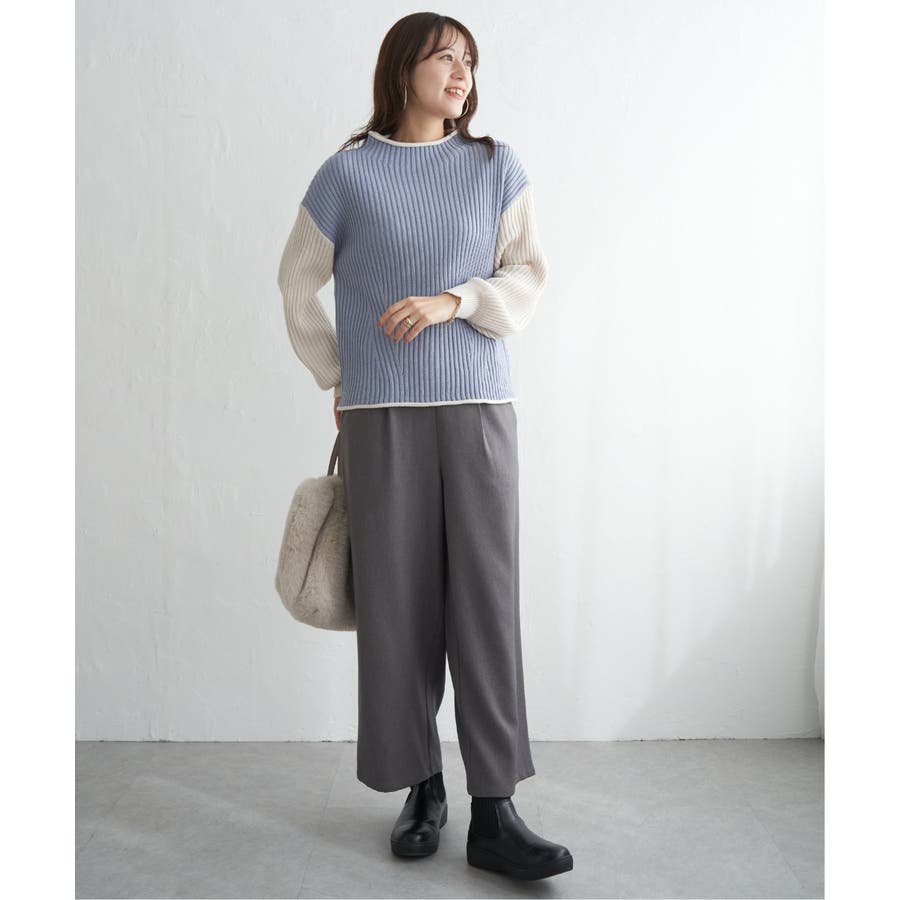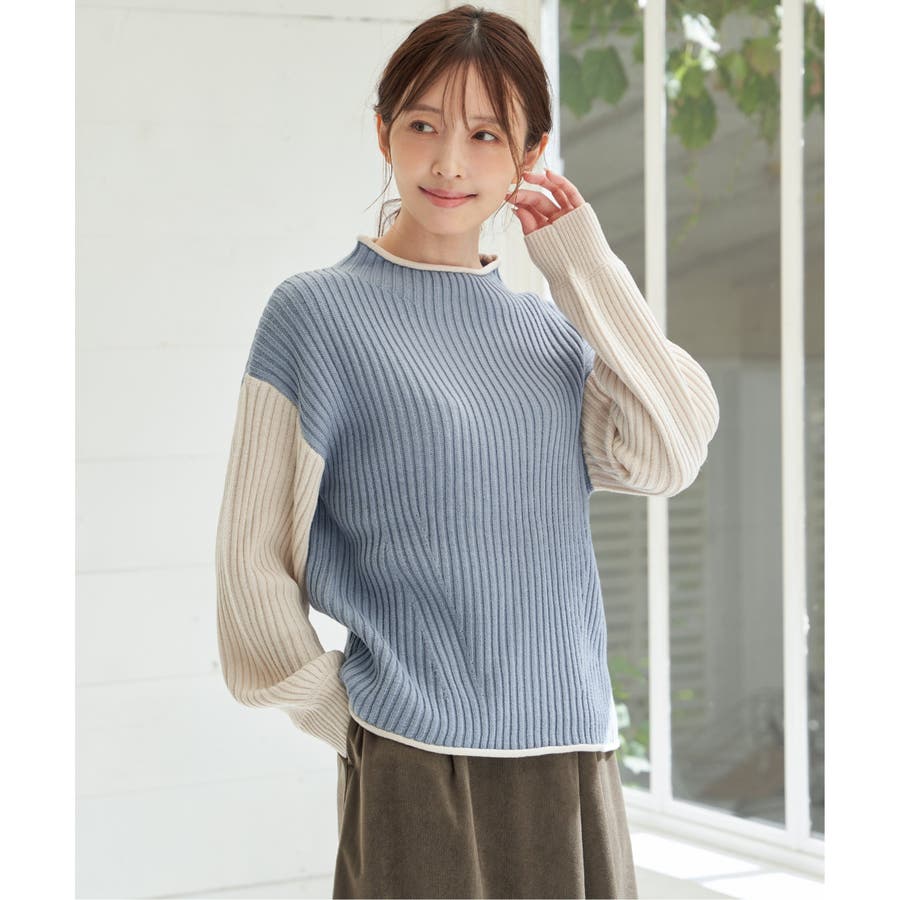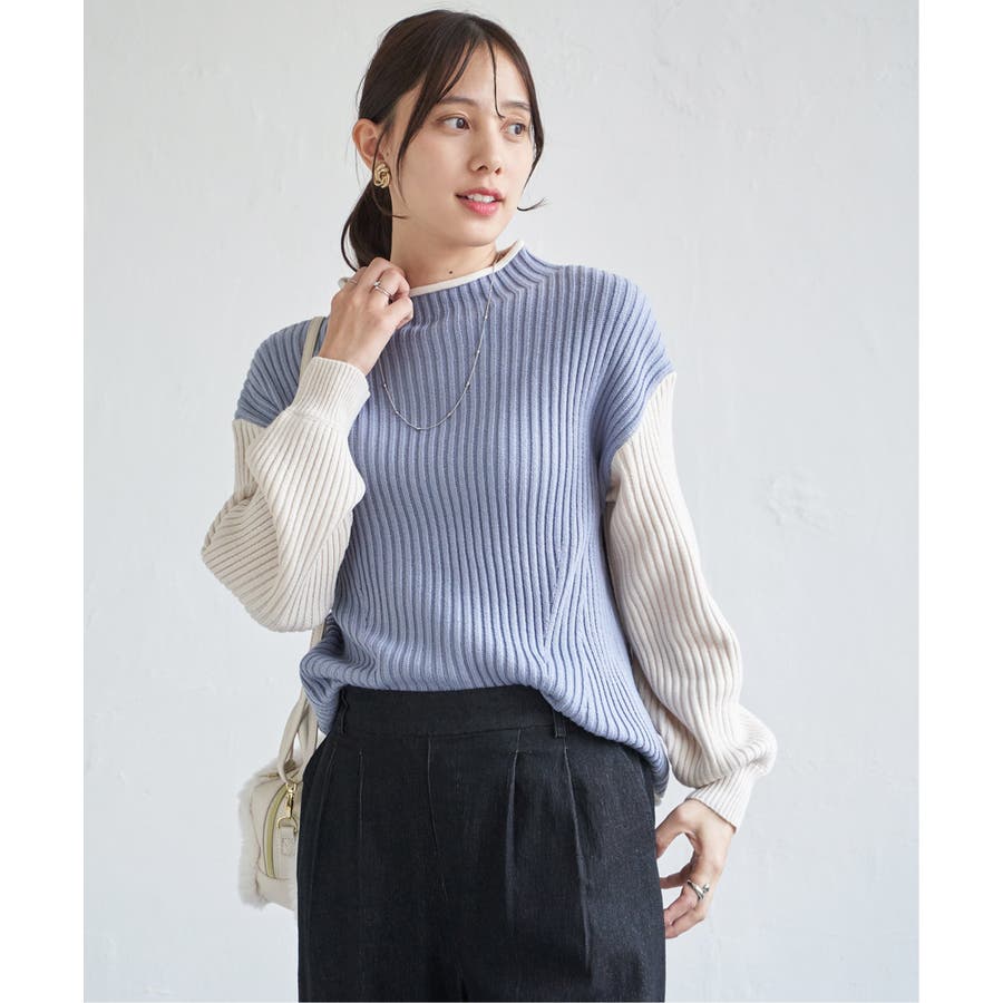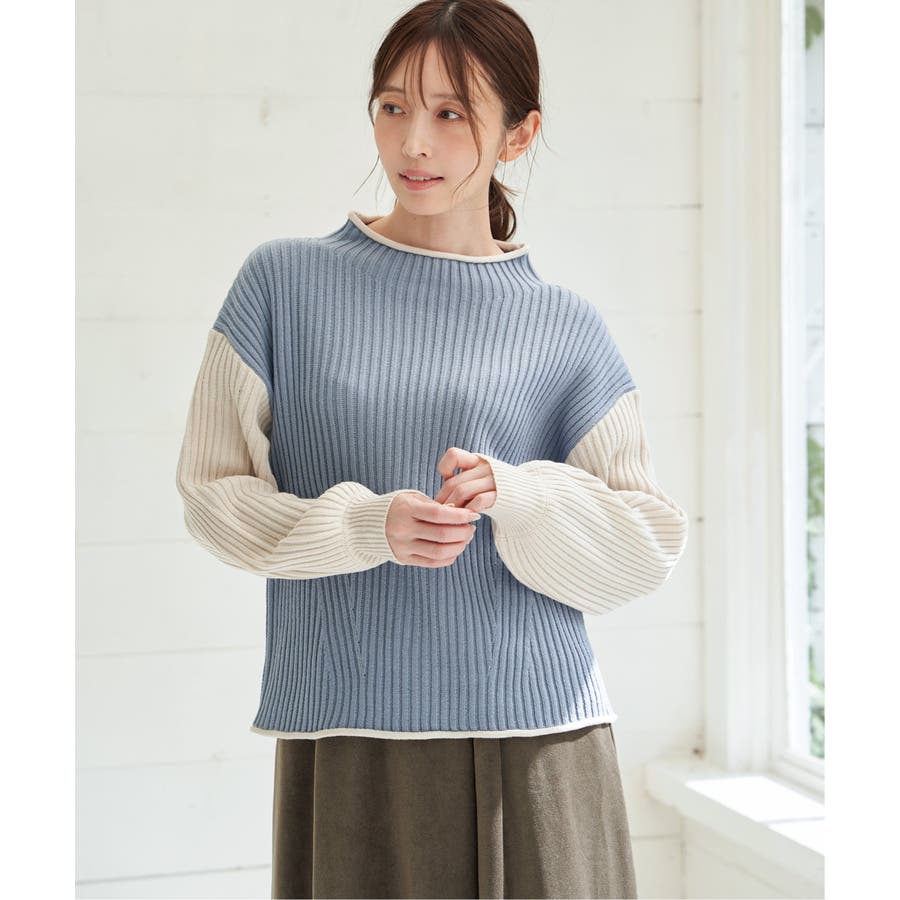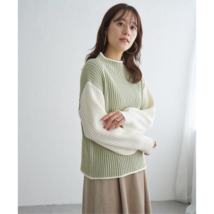 すっきり見えするリブ編みと、アクセントになる袖配色がスタイリングにメリハリを生み出します。