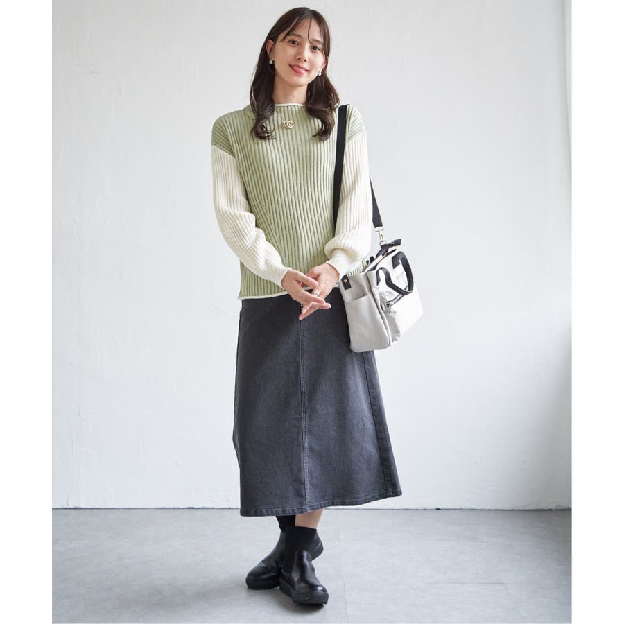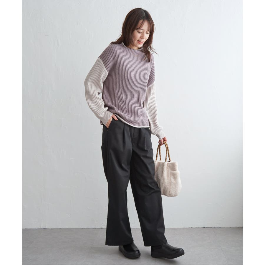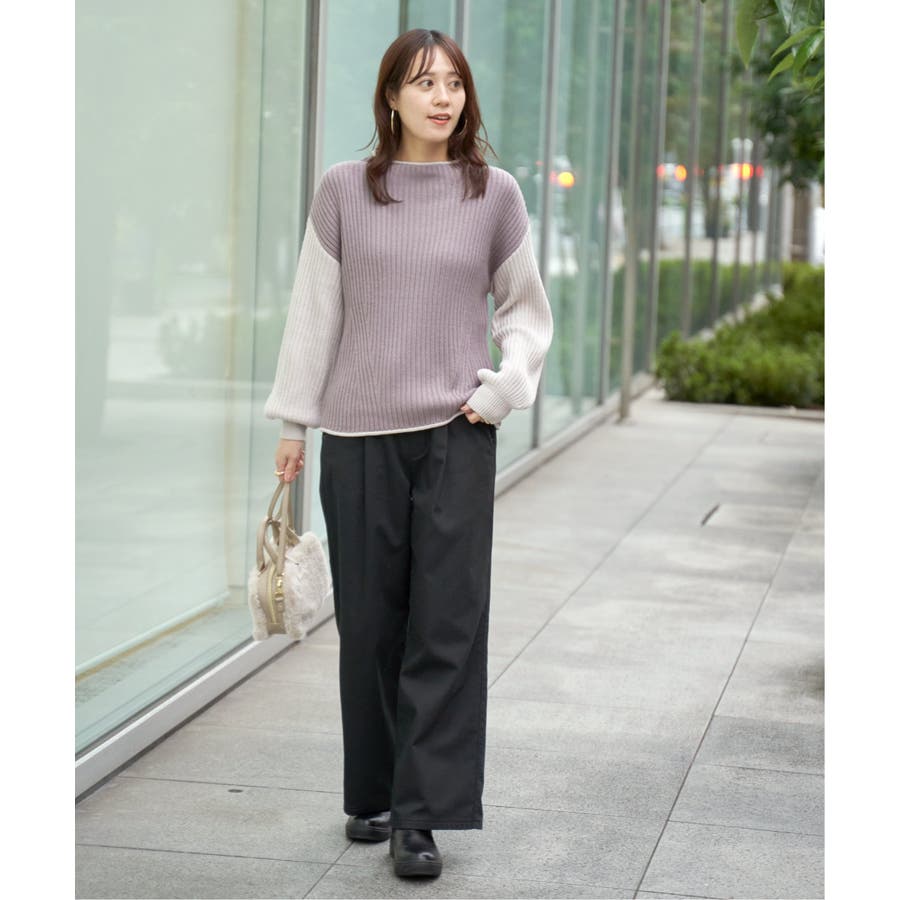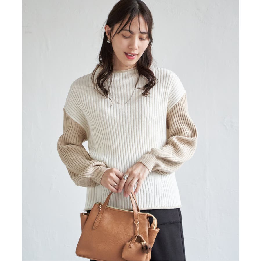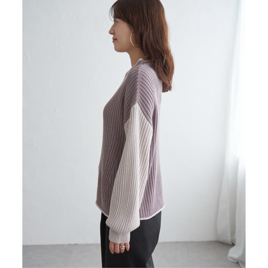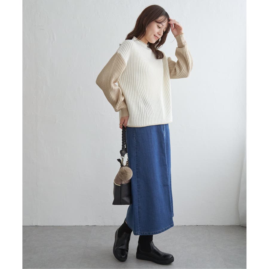 すっきり見えするリブ編みと、アクセントになる袖配色がスタイリングにメリハリを生み出します。
