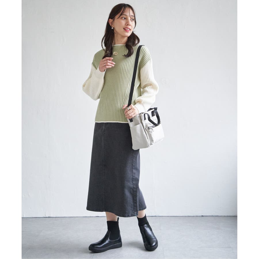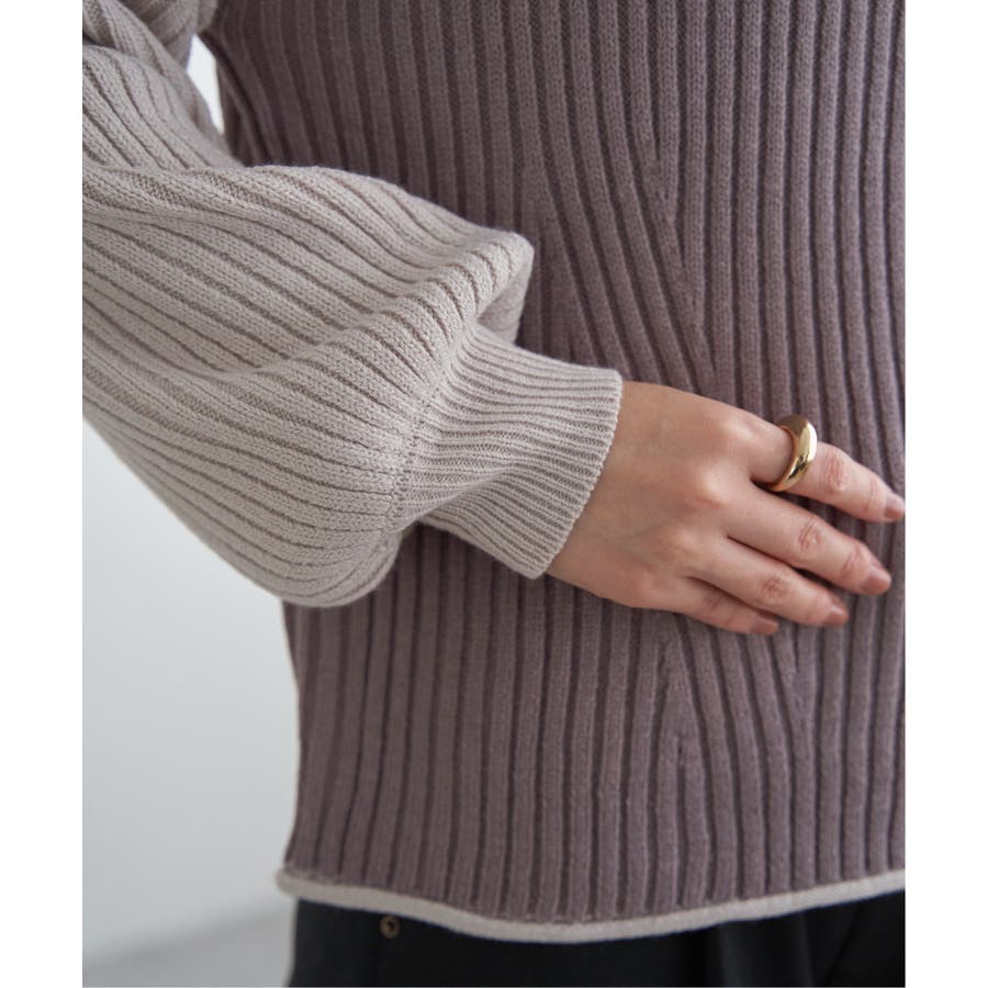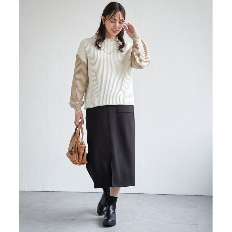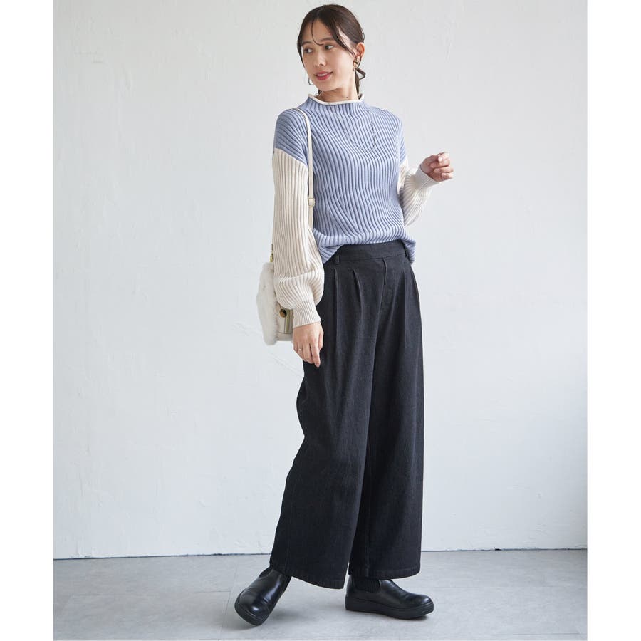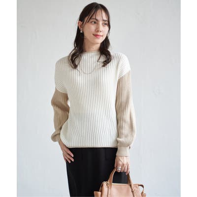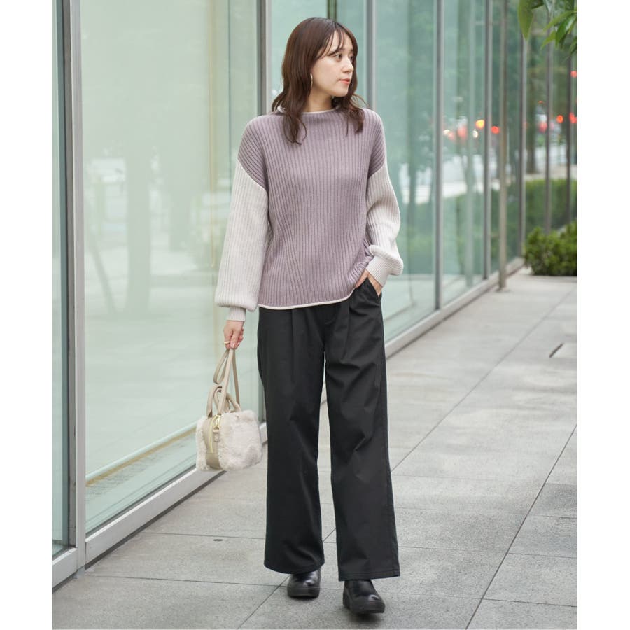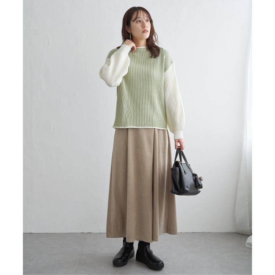 すっきり見えするリブ編みと、アクセントになる袖配色がスタイリングにメリハリを生み出します。