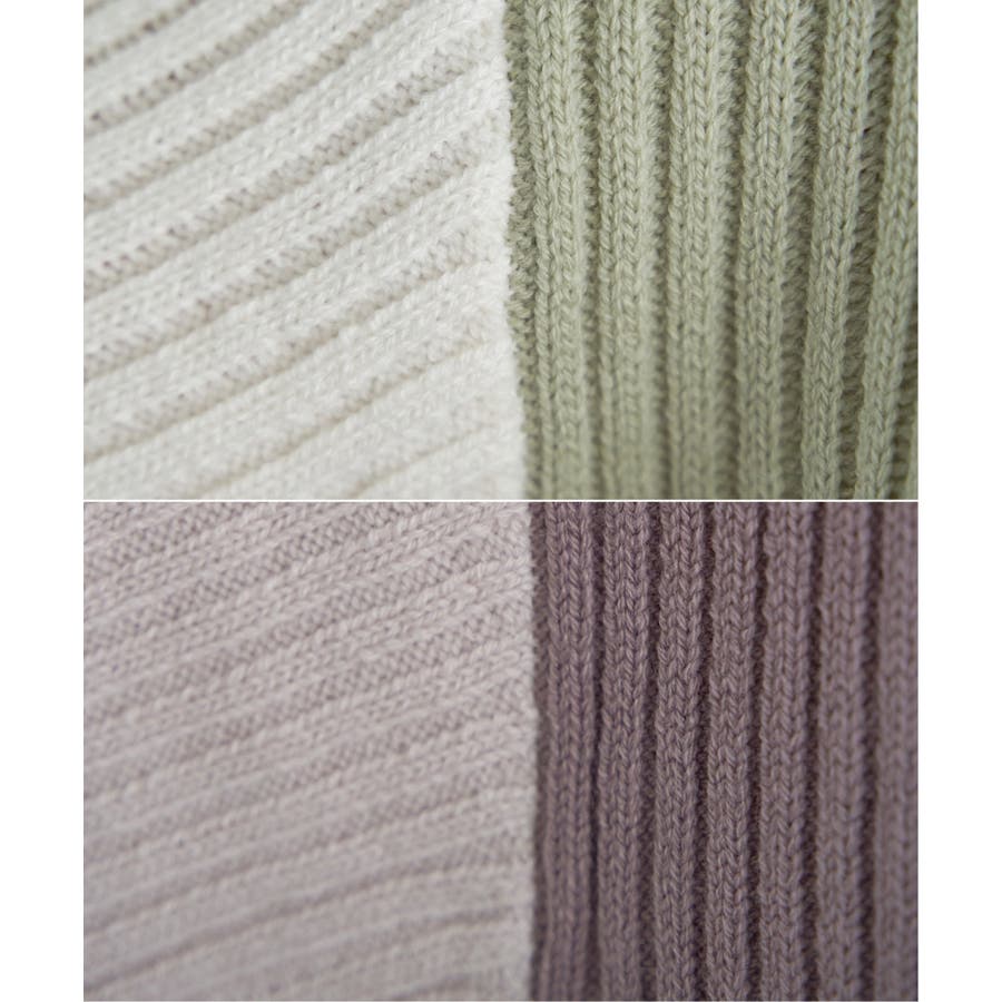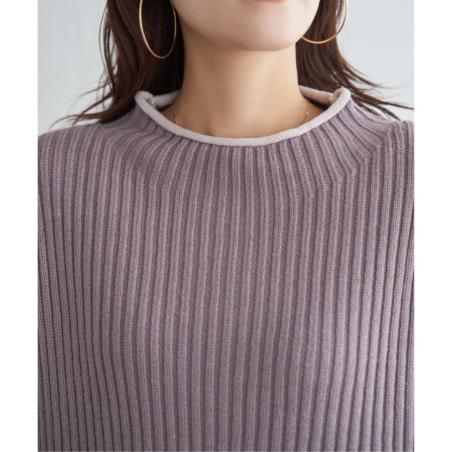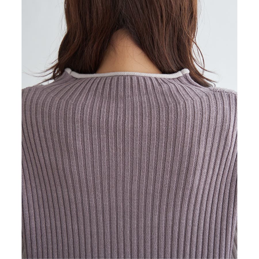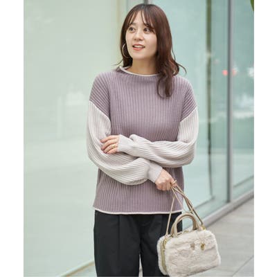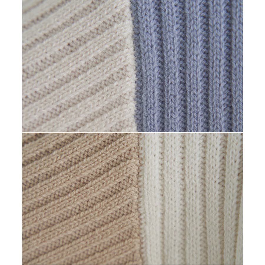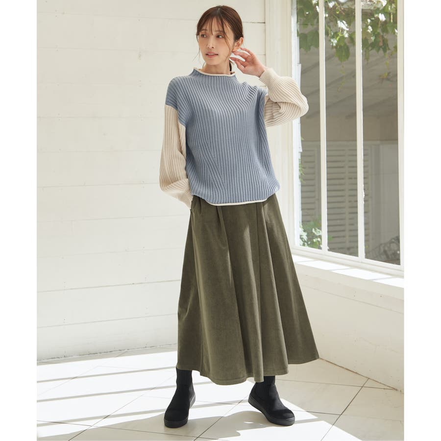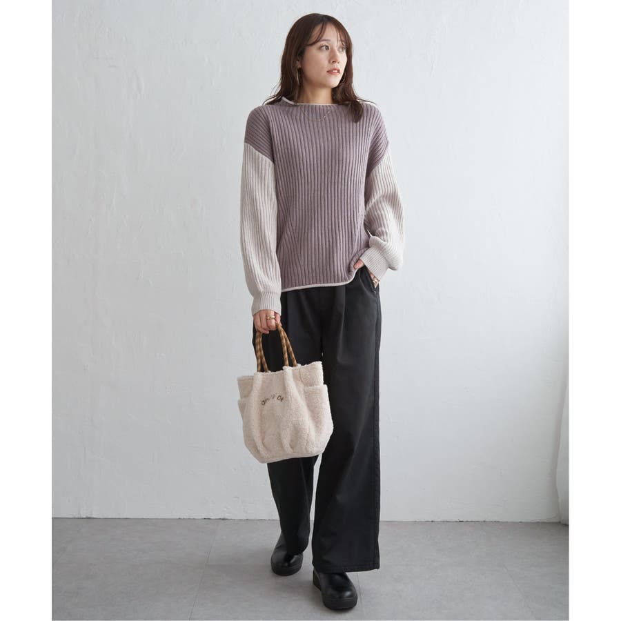すっきり見えするリブ編みと、アクセントになる袖配色がスタイリングにメリハリを生み出します。