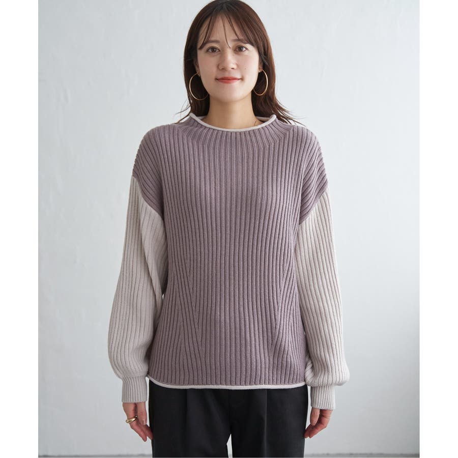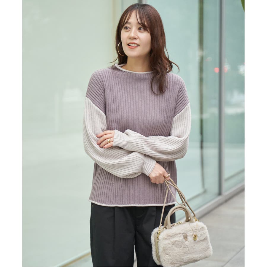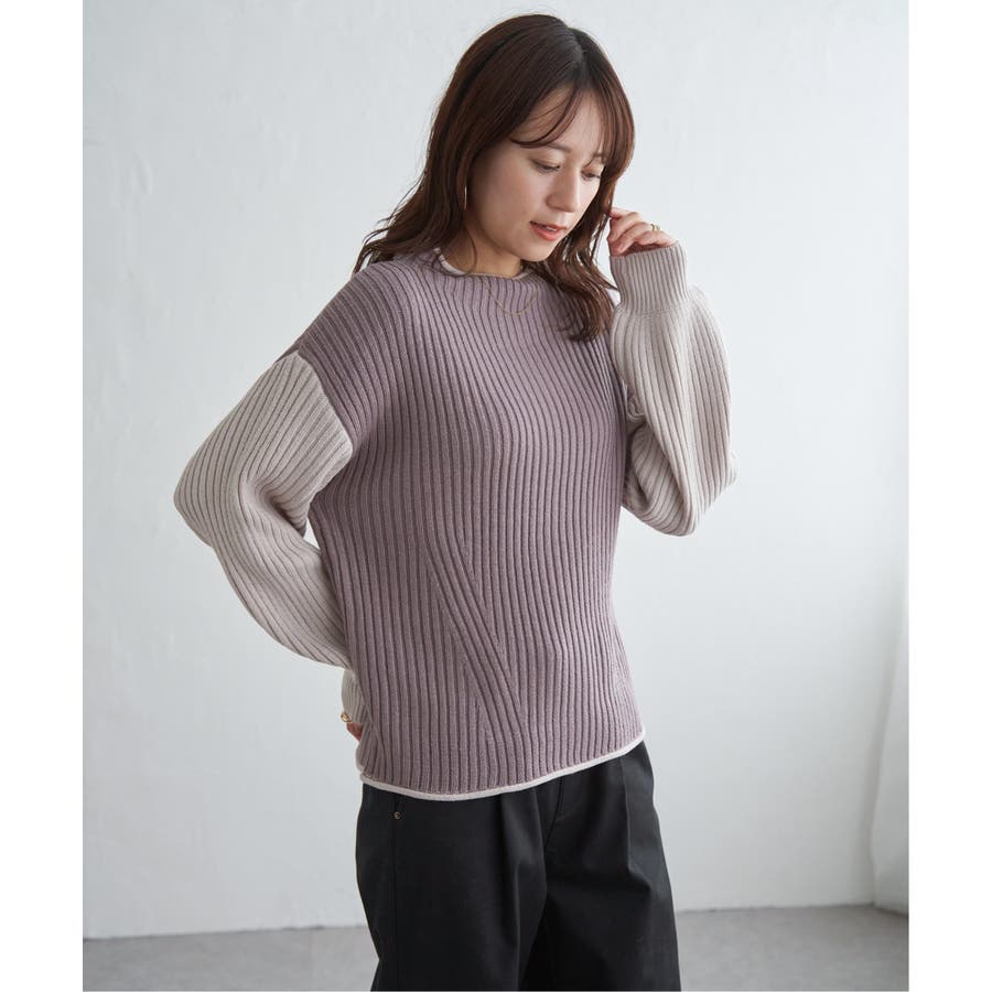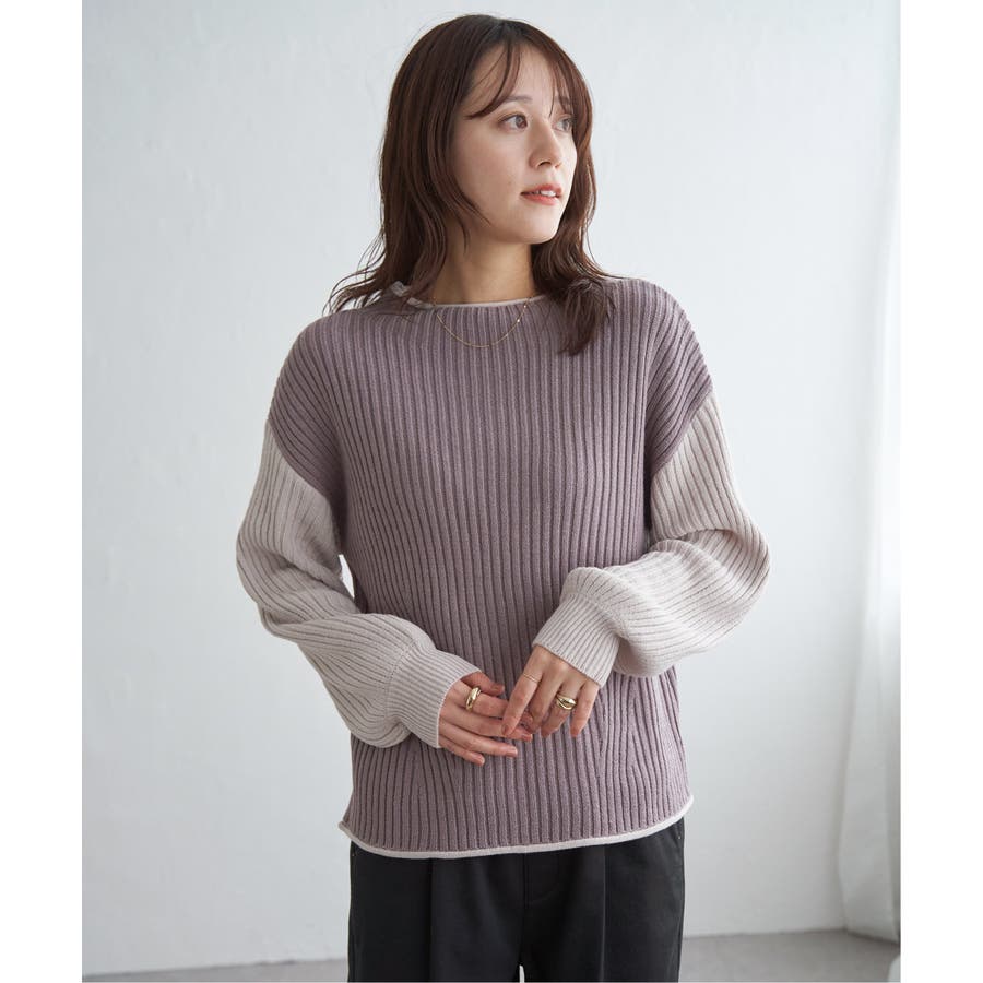 身頃と袖でカラーを切り替えた、配色デザインが魅力のワイドリブニットプルオーバー。