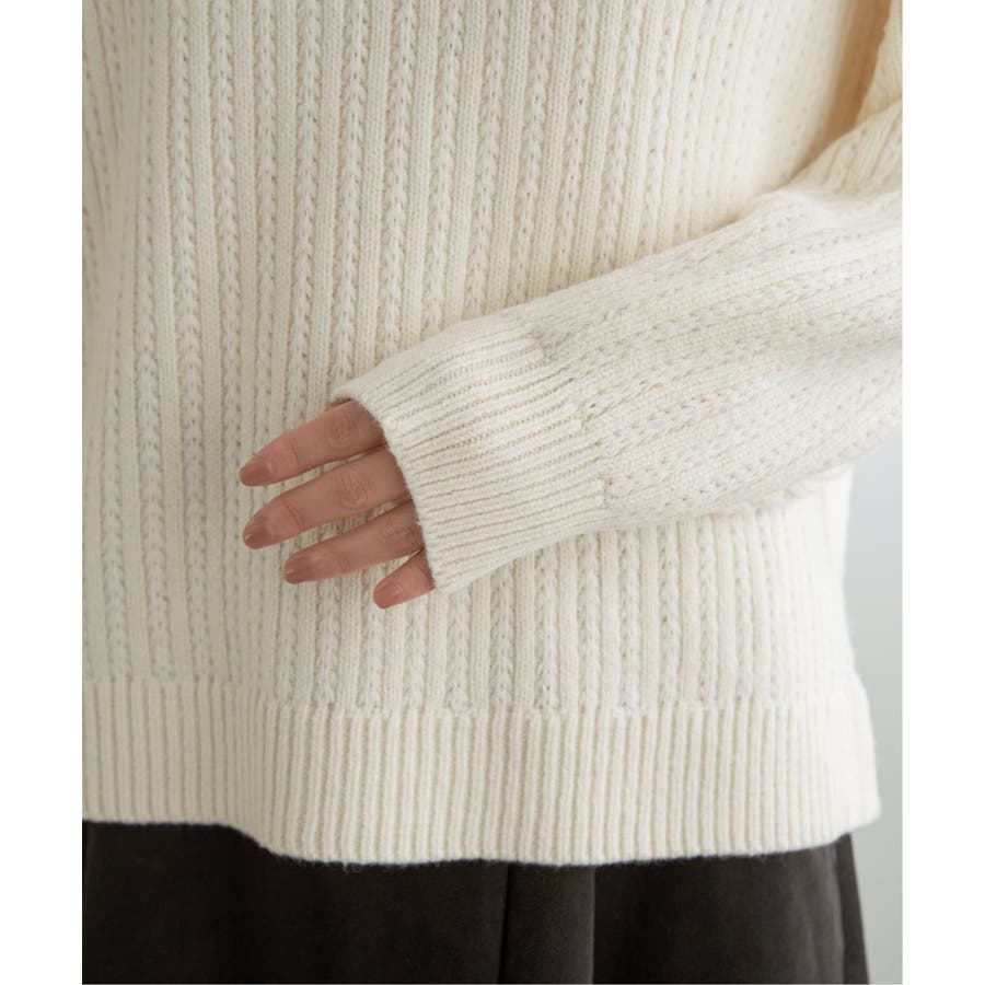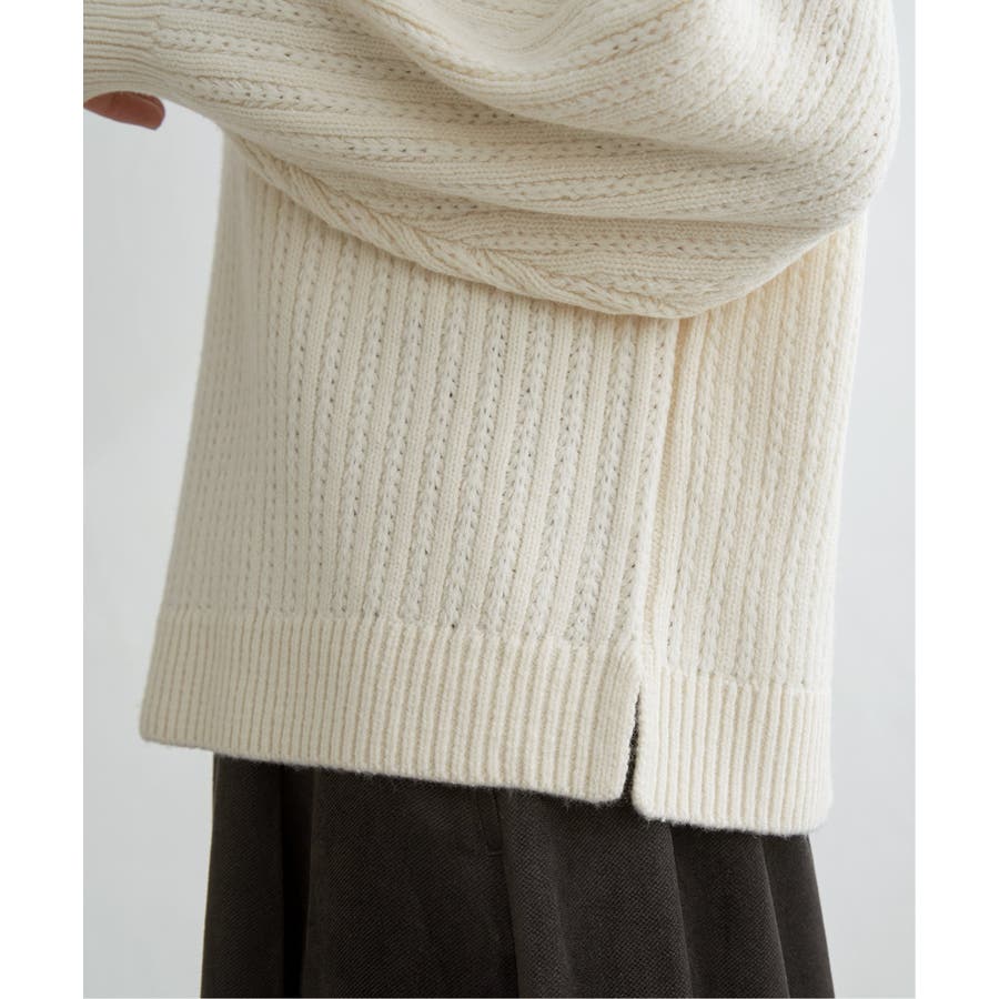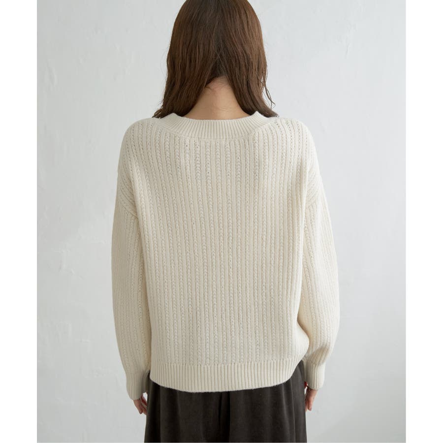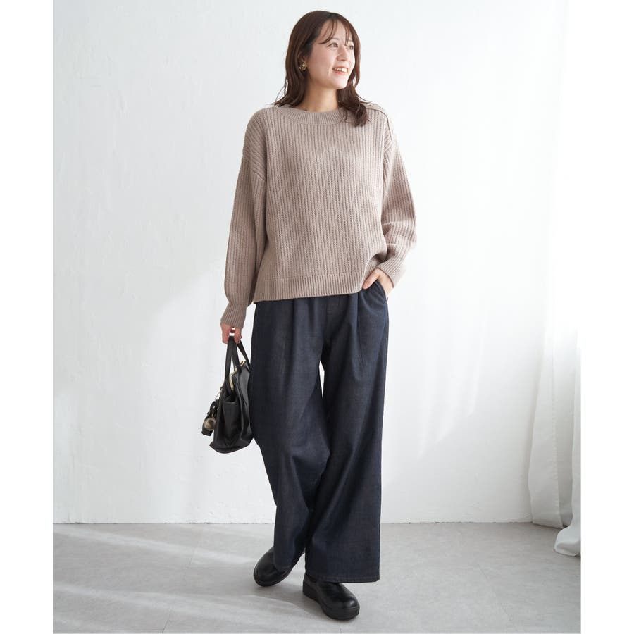 表情豊かなリブ編みがすっきりとしたシルエットをつくり、1枚でも存在感のあるスタイルに仕上がります。