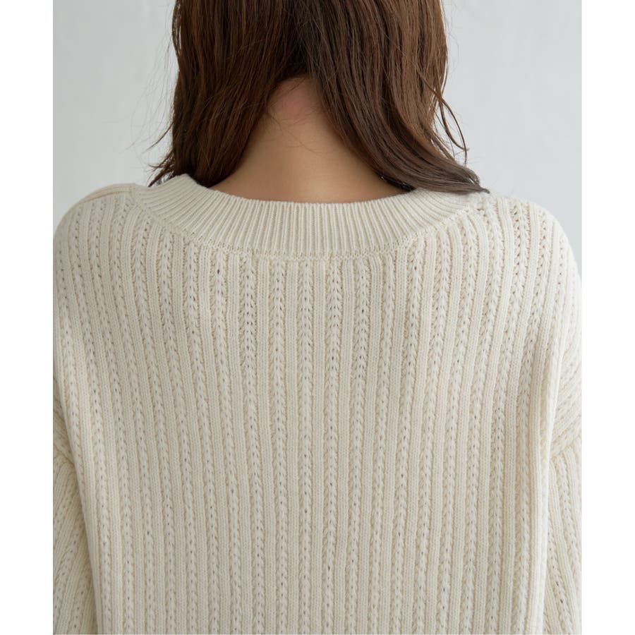 ・特徴的な女性らしさのある編地を採用し、カジュアルアイテムにフェミニンな印象をプラス