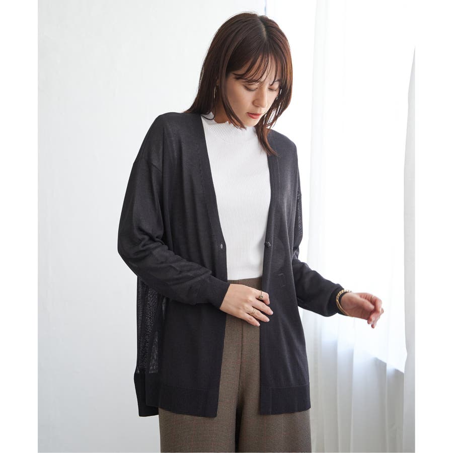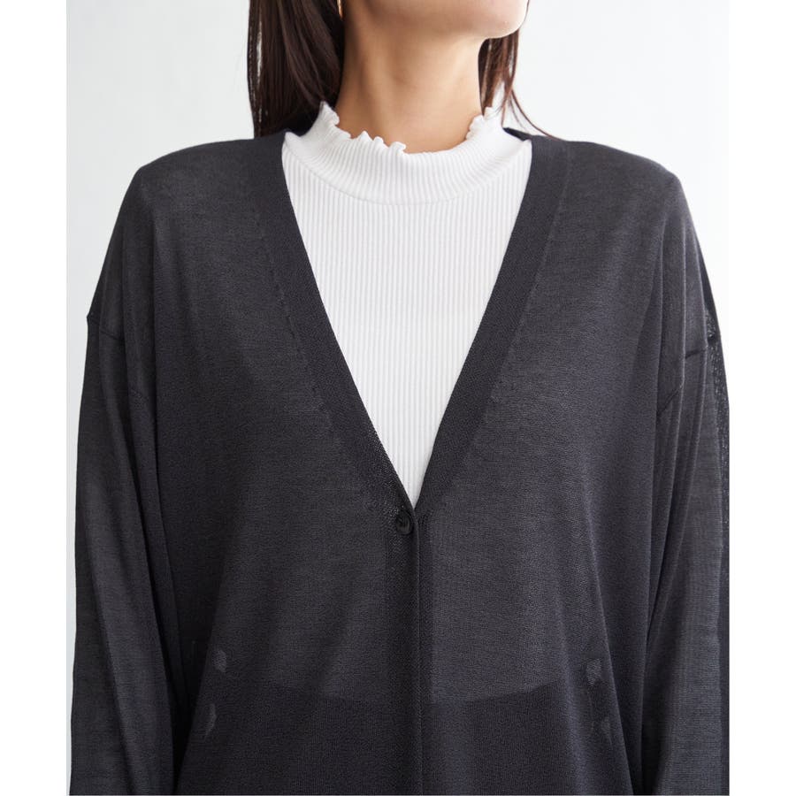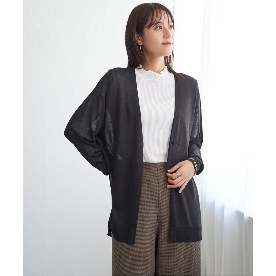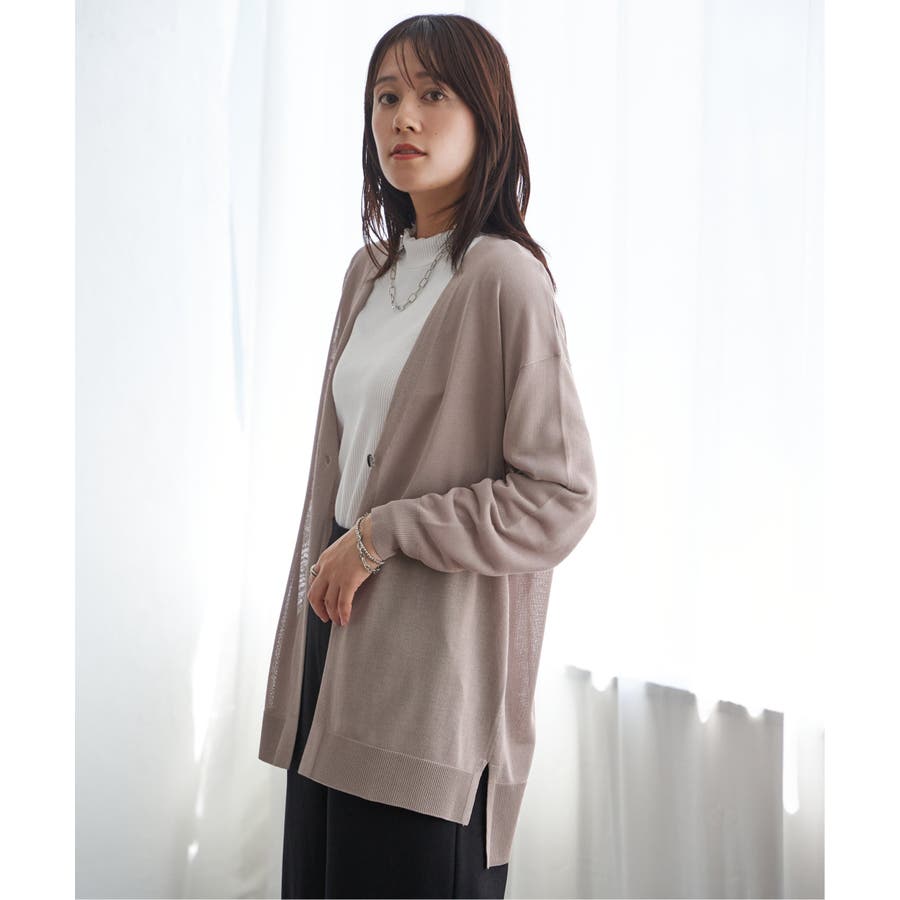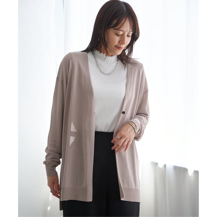 さらりとしたタッチの素材感が心地よい、ボタンレス仕様のカーディガン。