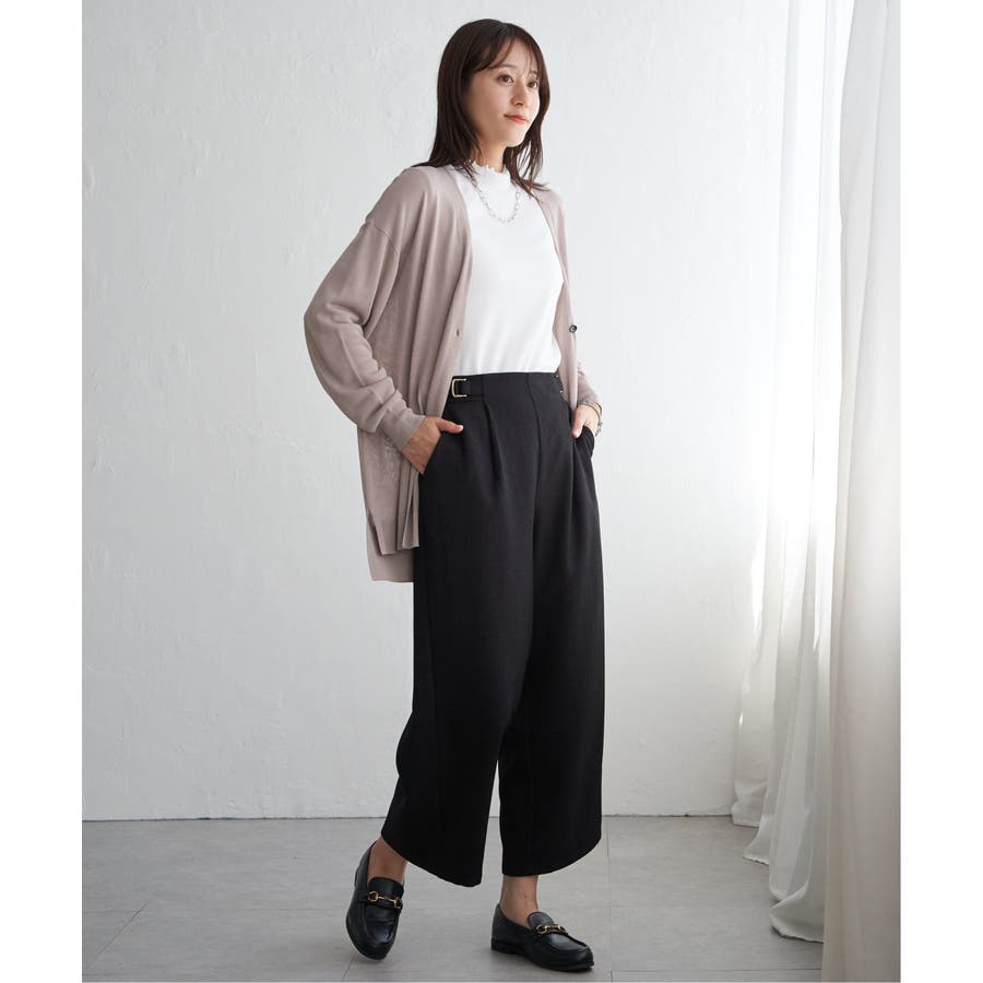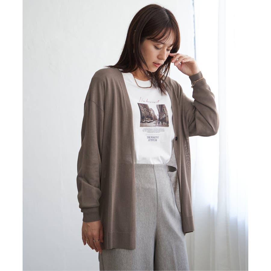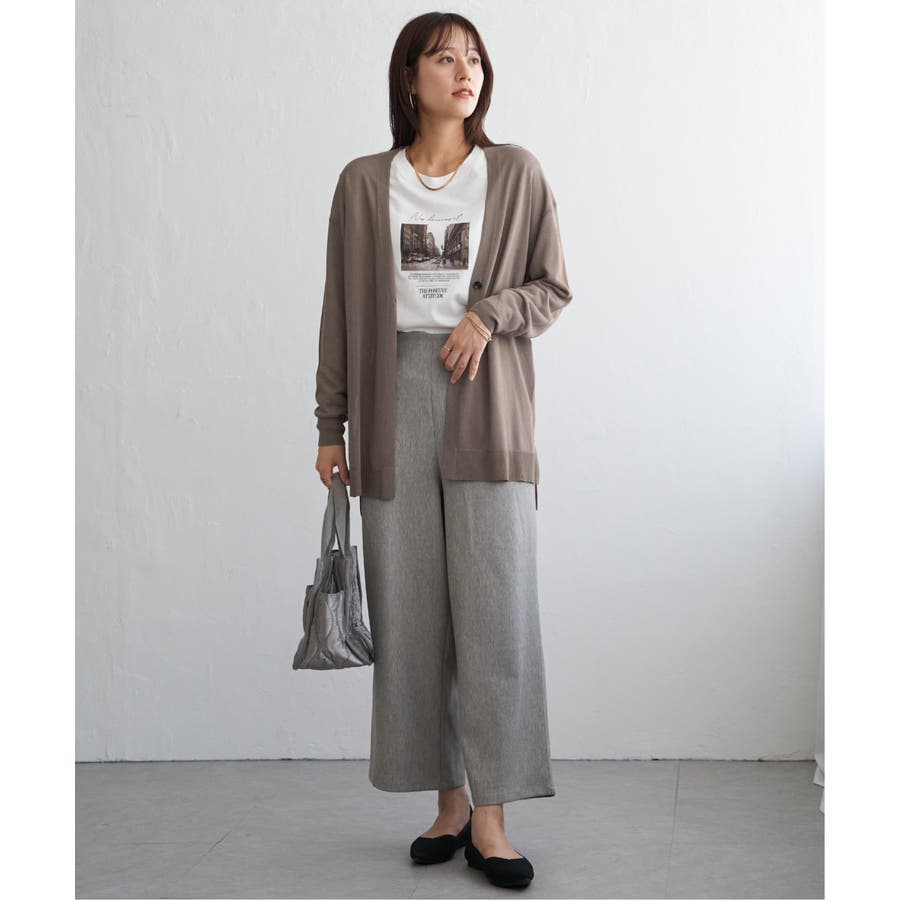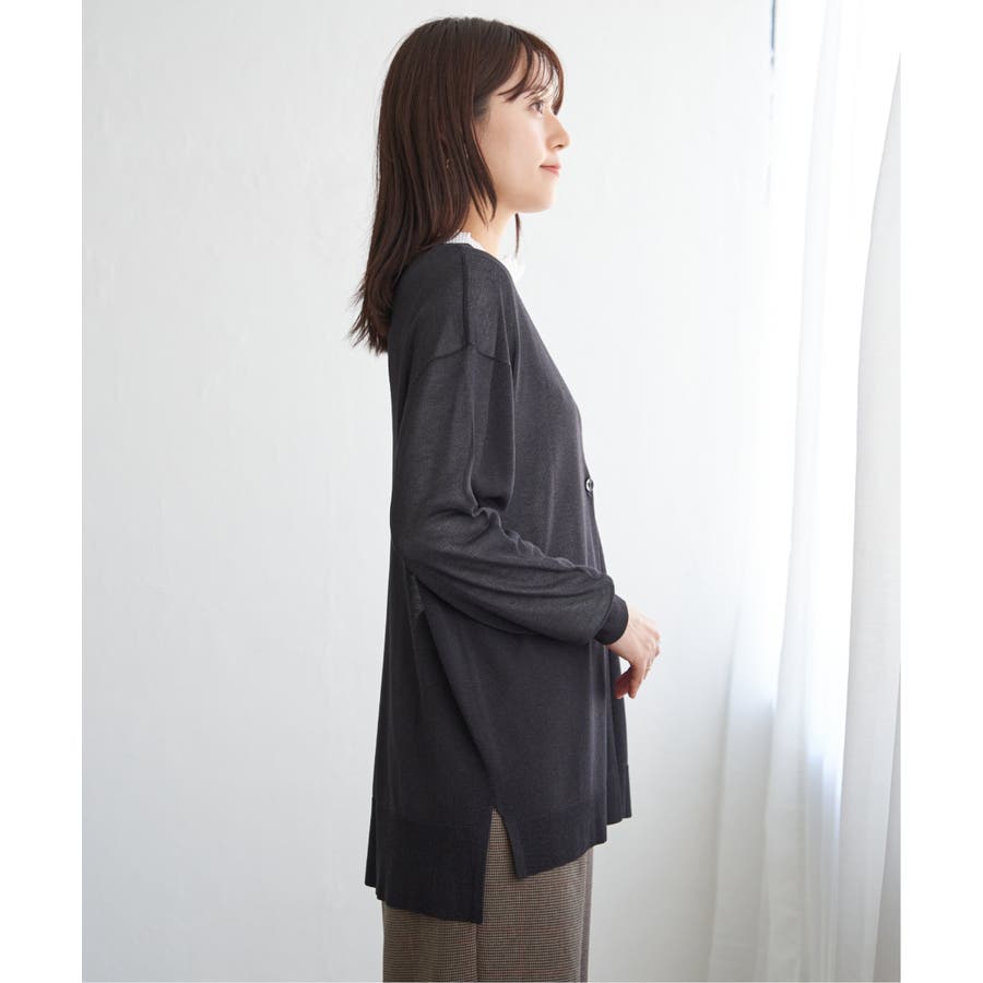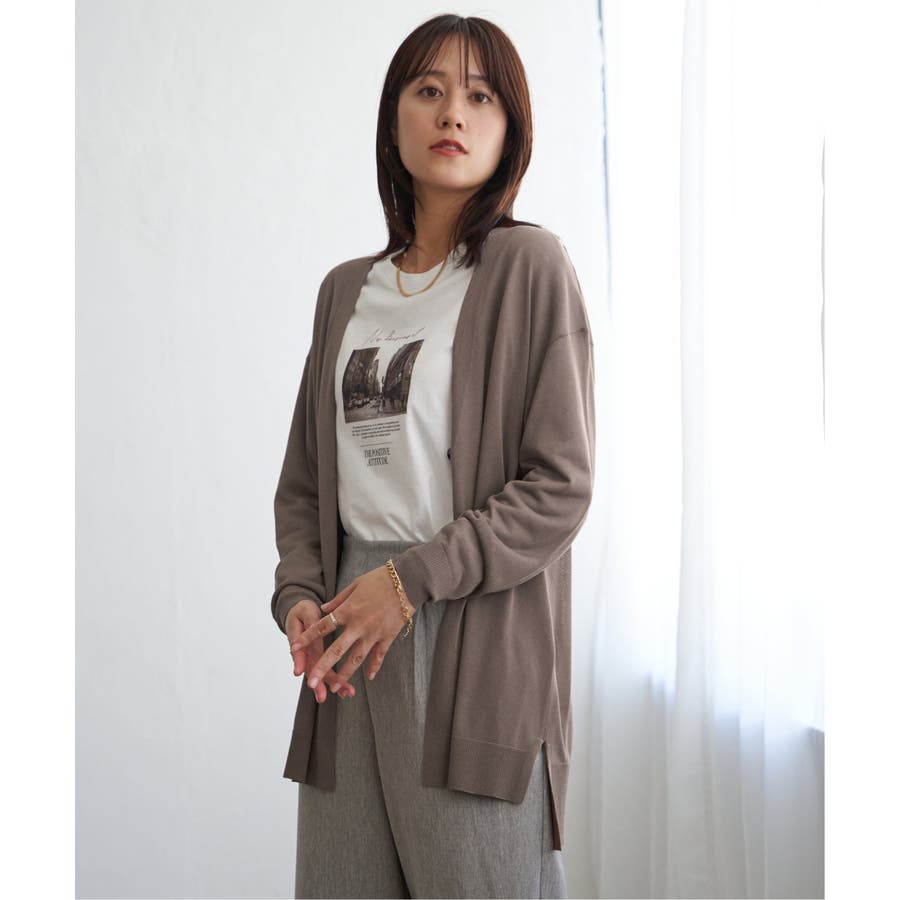さらりとしたタッチの素材感が心地よい、ボタンレス仕様のカーディガン。