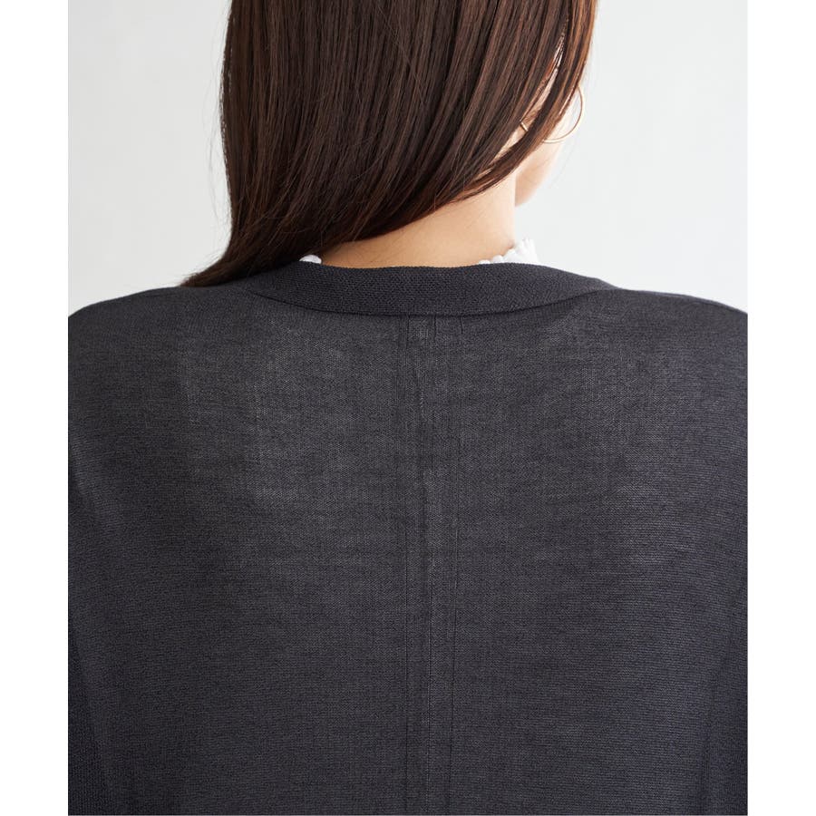 身頃に針抜きのラインが入った、ボタンレスのトッパーカーディガンです。