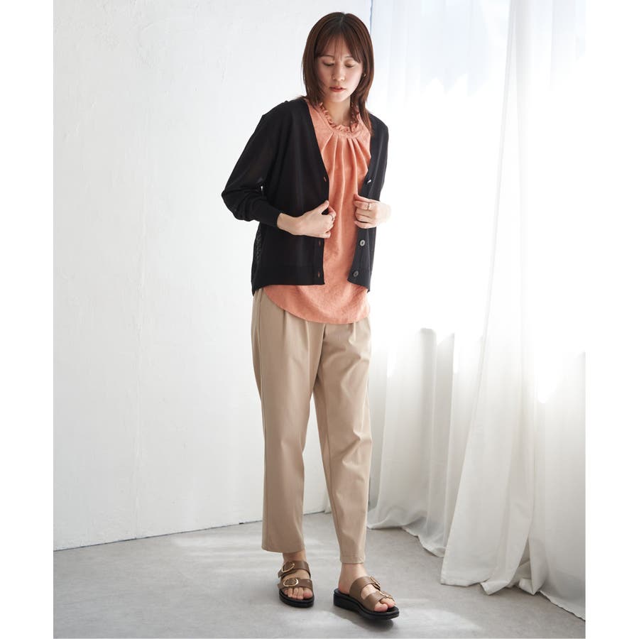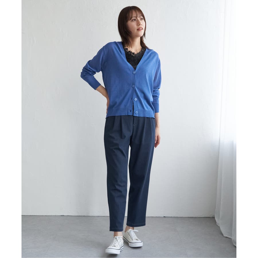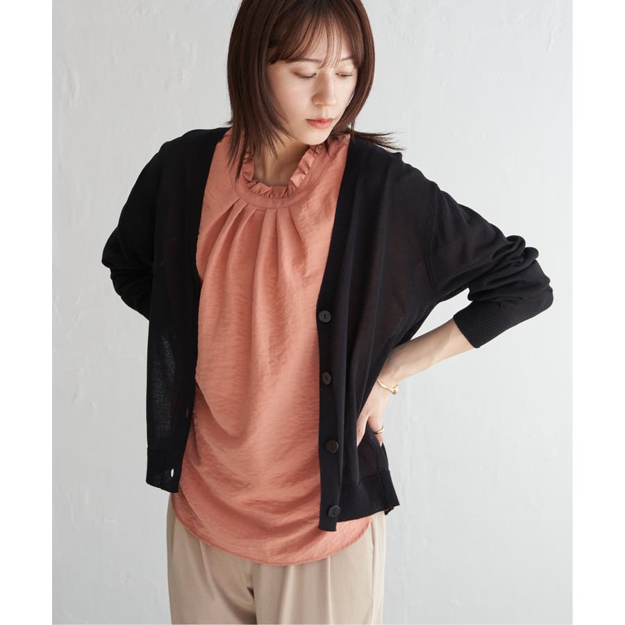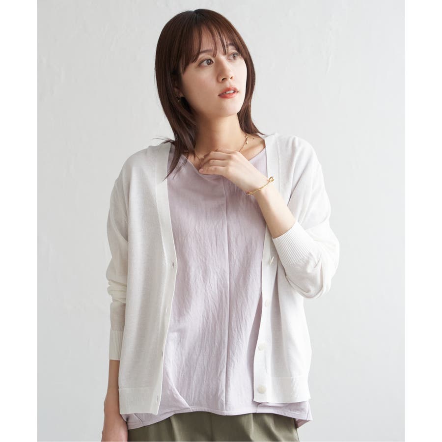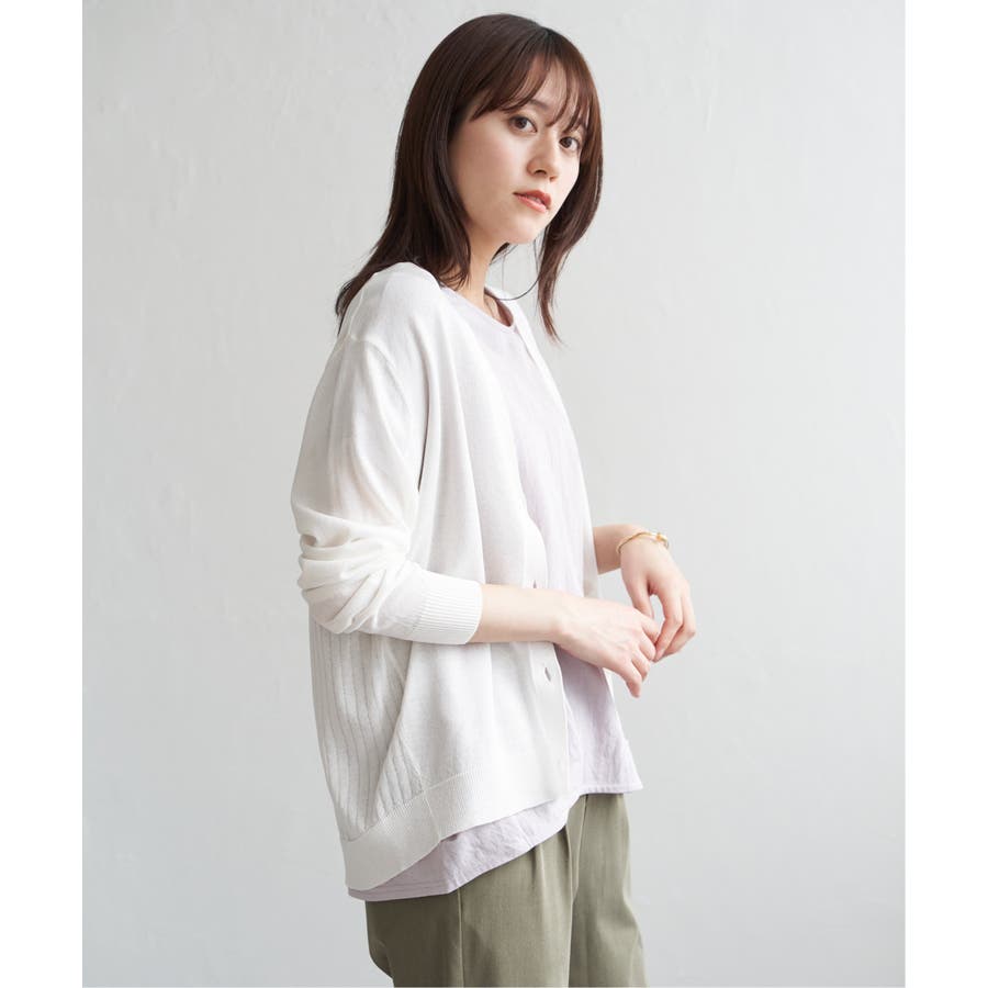 ひんやりと肌をなでるような接触冷感の天竺ニットが、夏の空気にすっと馴染むカーディガン。