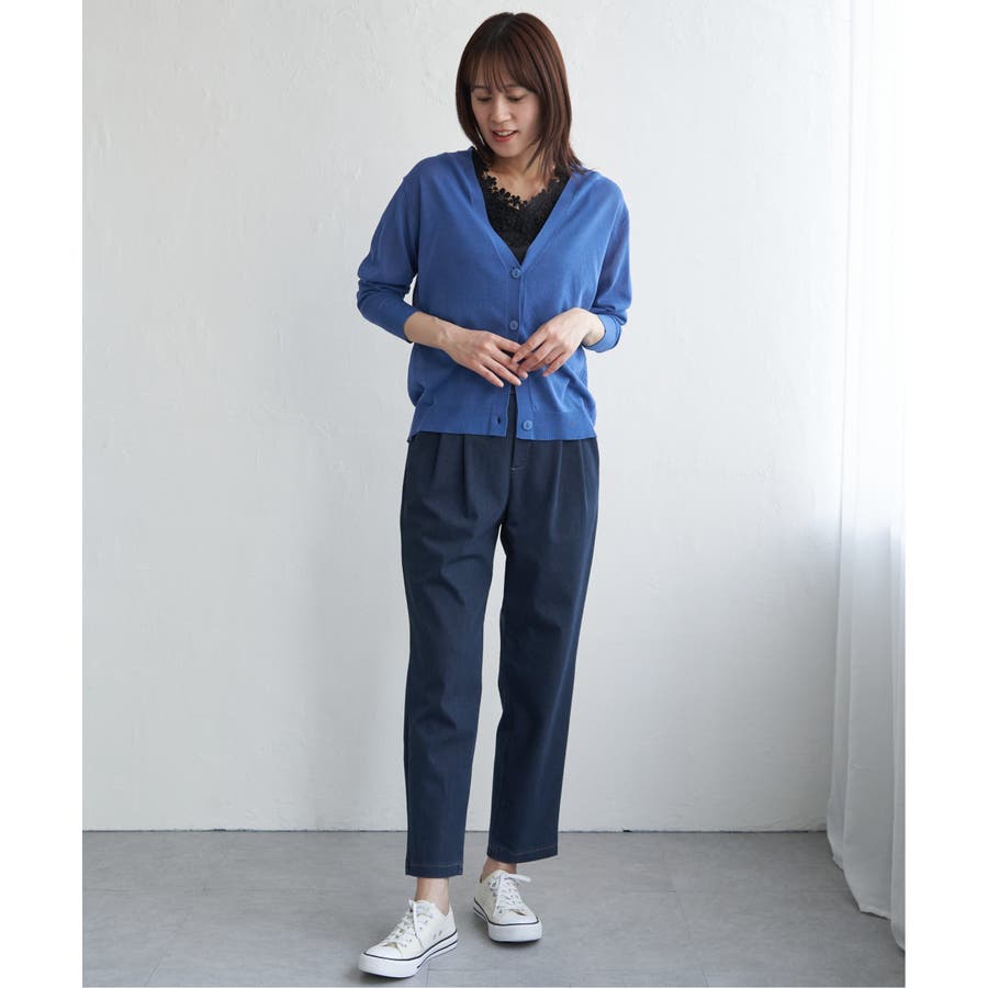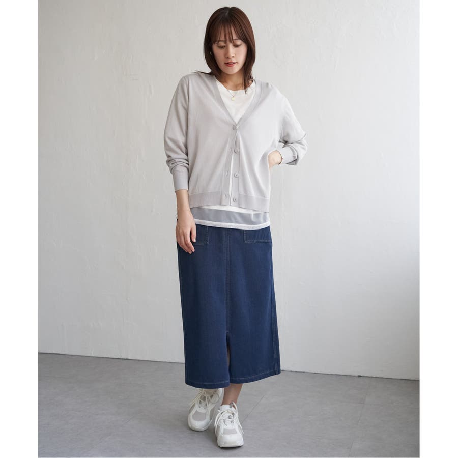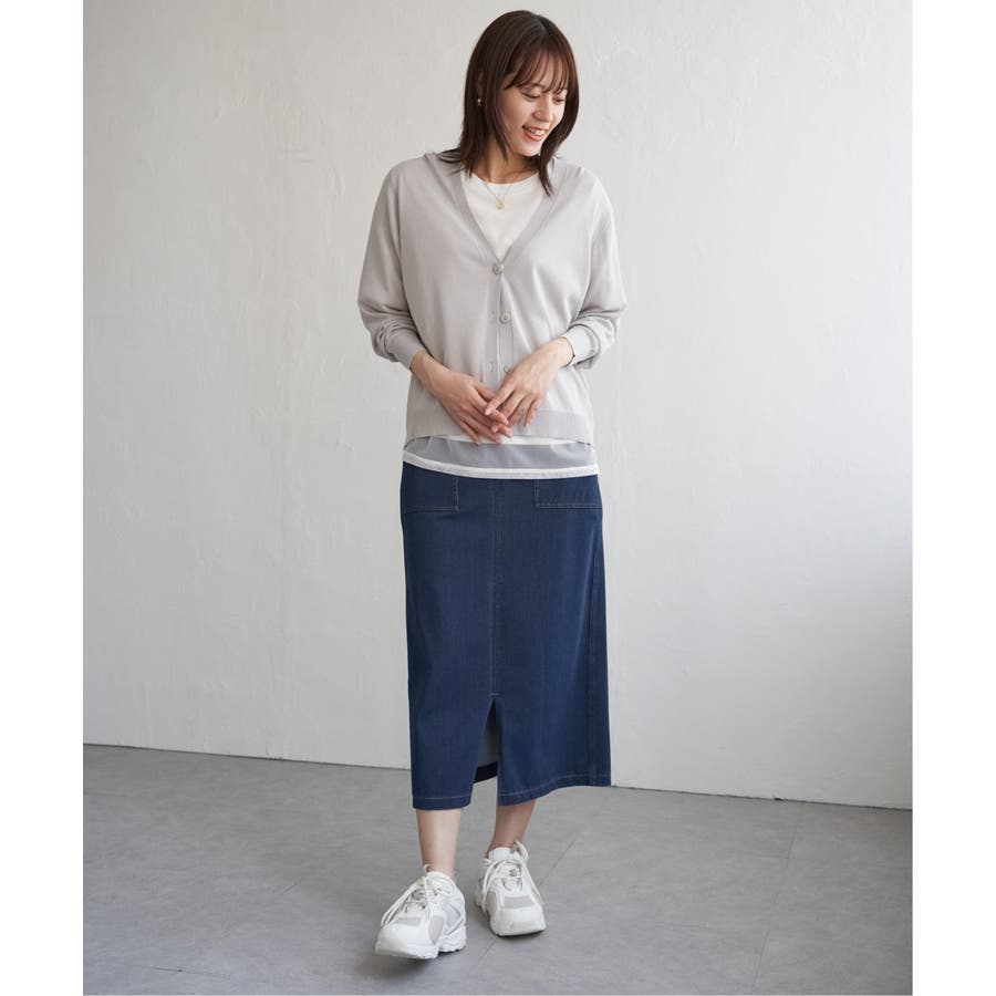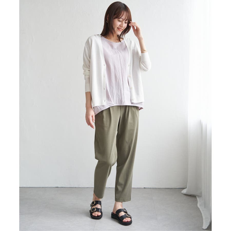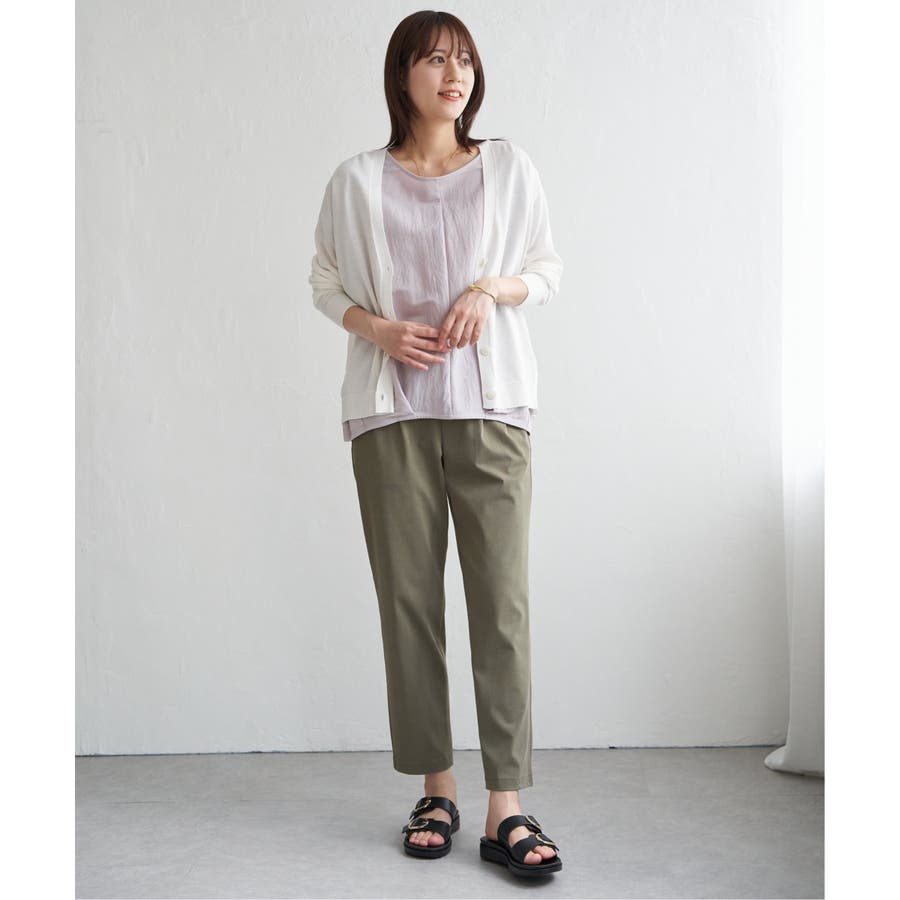 ひんやりと肌をなでるような接触冷感の天竺ニットが、夏の空気にすっと馴染むカーディガン。