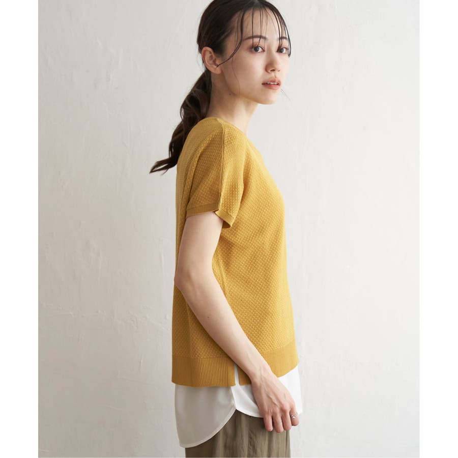 汗ばむ時期でもサラッと着用できる素材で、凹凸感のある編地にしています。