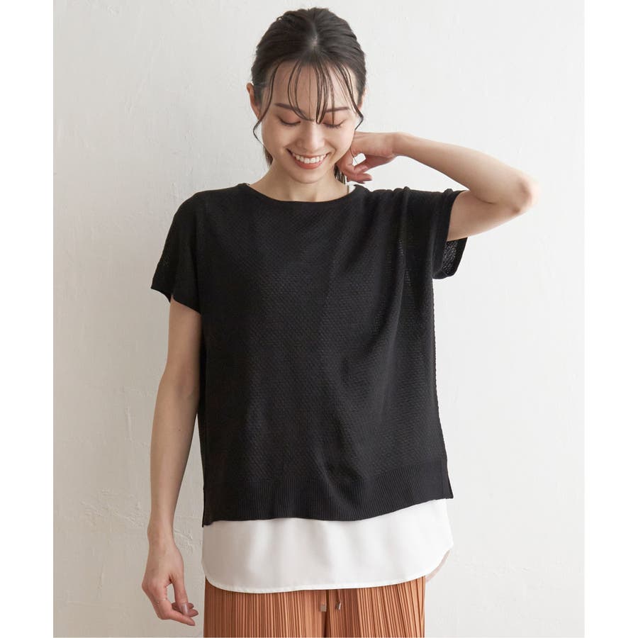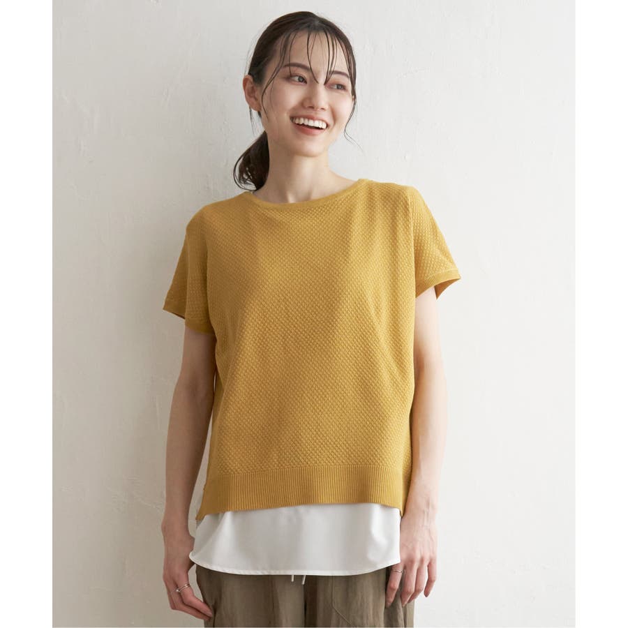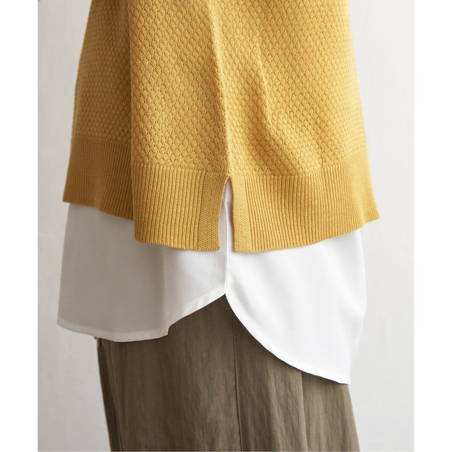 ニットプルオーバーとタンクトップがセットになった時短レイヤードアイテム。