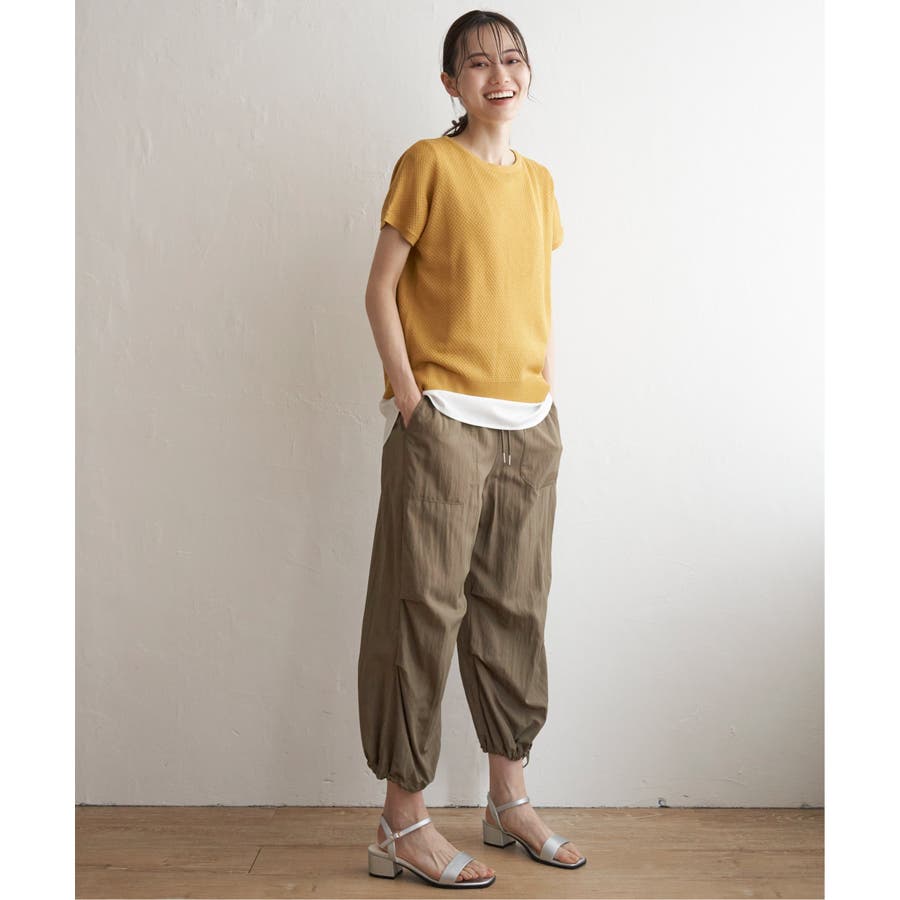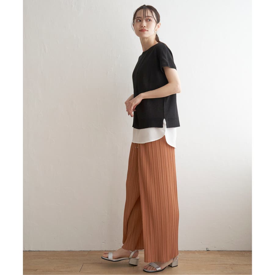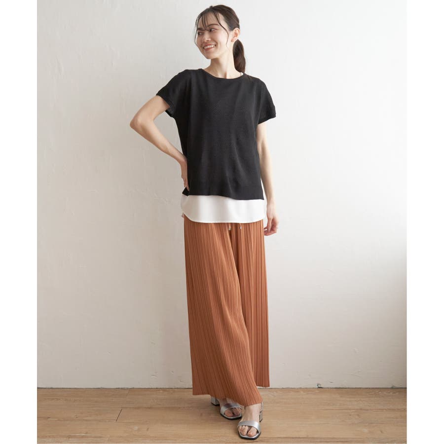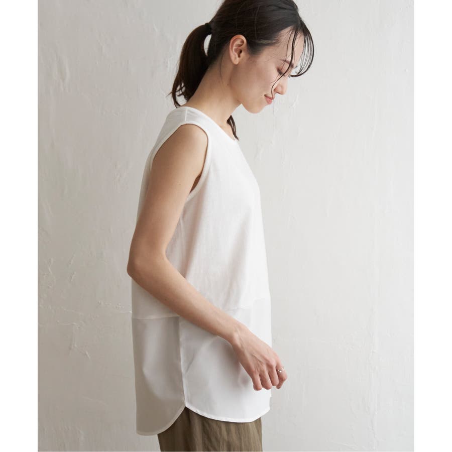 暑い時期でもサラッと最適に楽しめるニットと、タンクトップも肌離れのよいカットソーを使用。