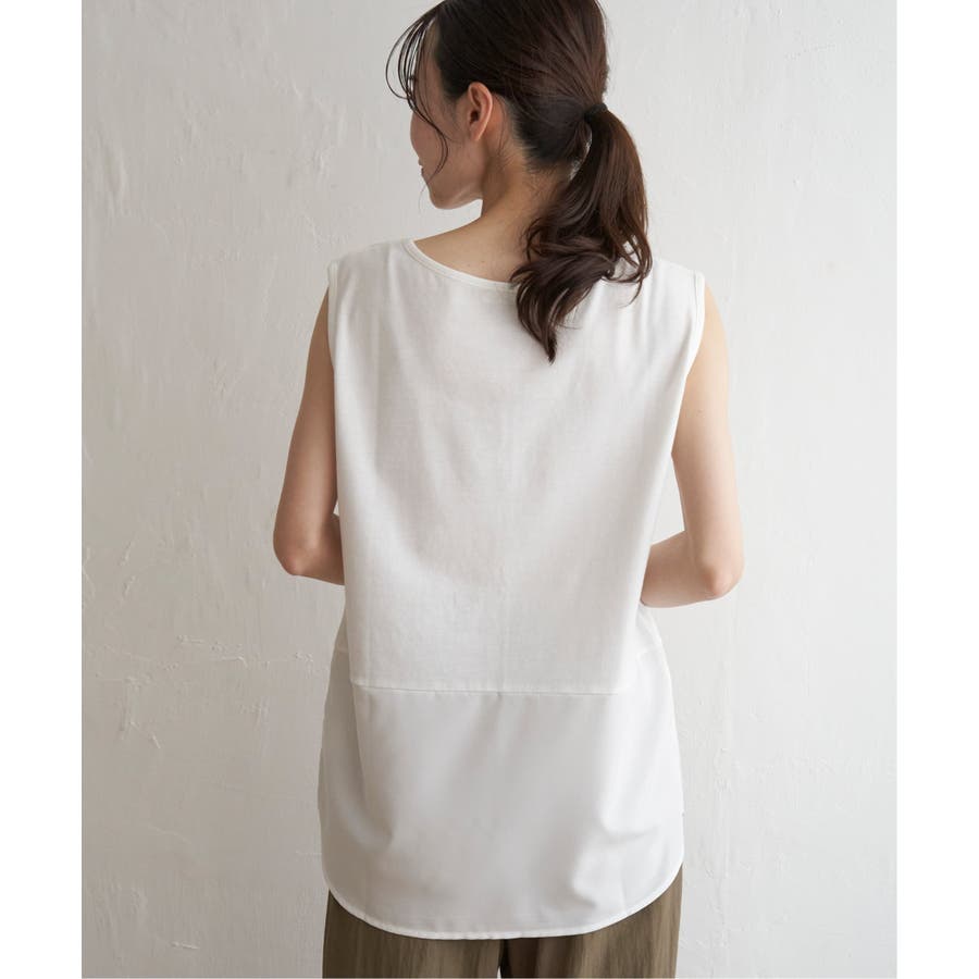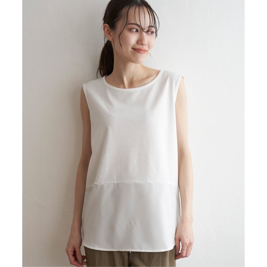 セットでタンクトップがついているので、一枚で完結できる時短レイヤード。