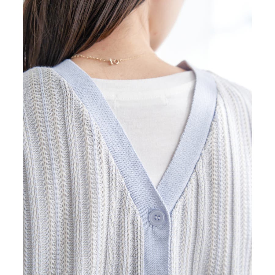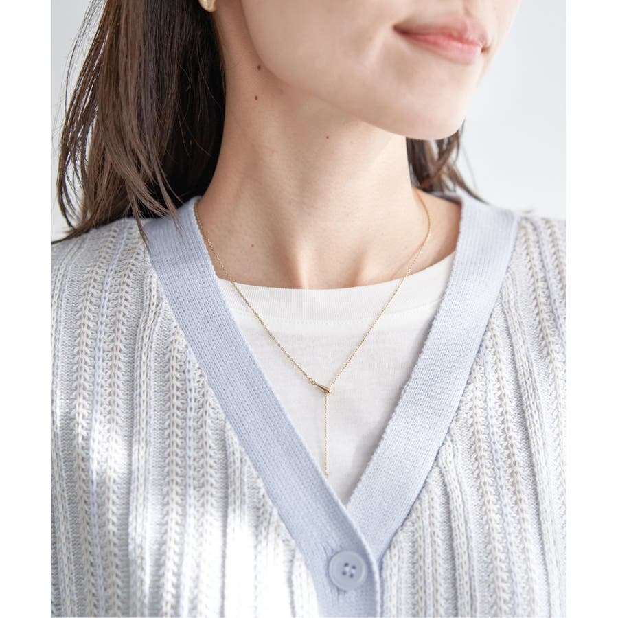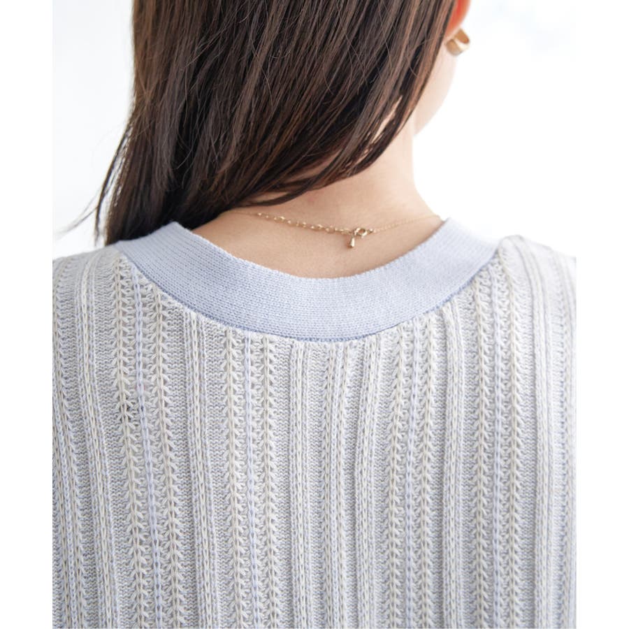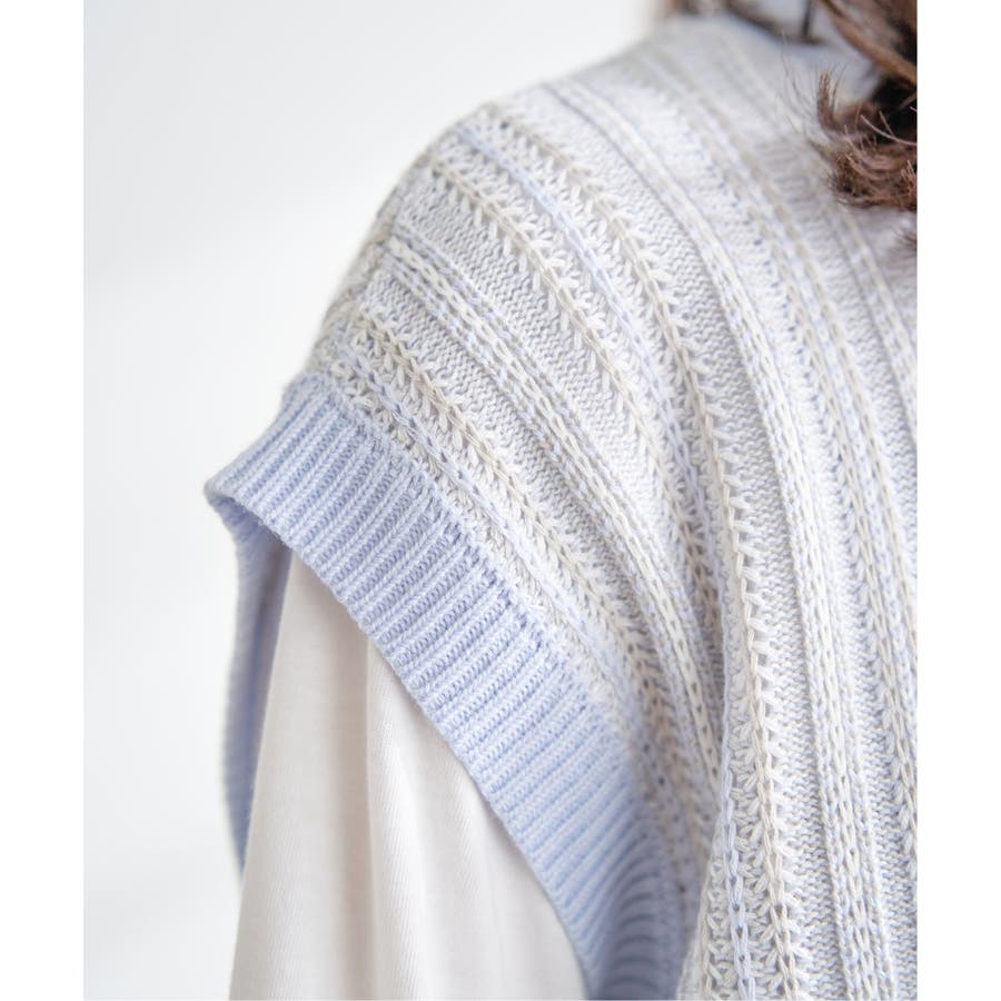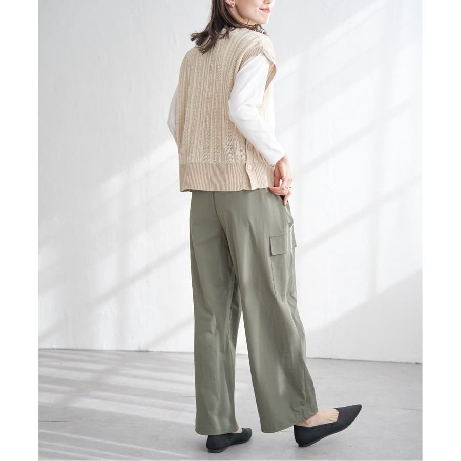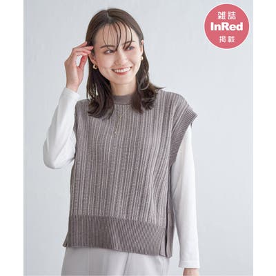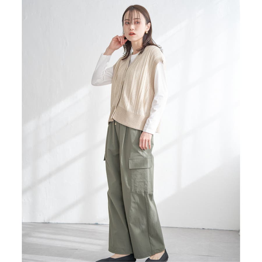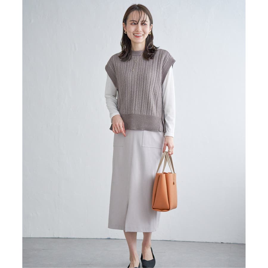 ニットベストは前後どちらでも着られる2WAYデザインで、ボタンをサイドに見せるとこなれ感のあるスタイルが完成します。