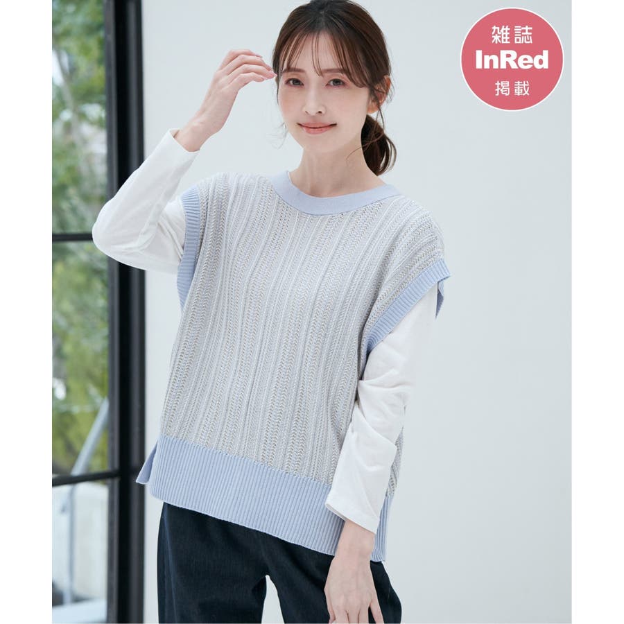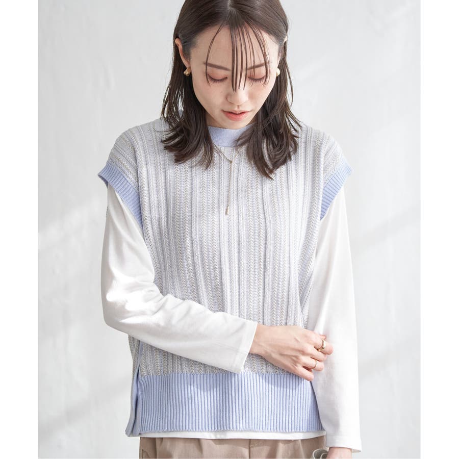 やわらかなコットンタッチのアクリルニットベストと、カットソーがセットになった2点セット。