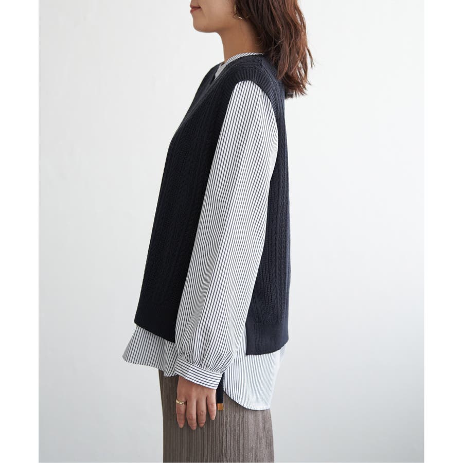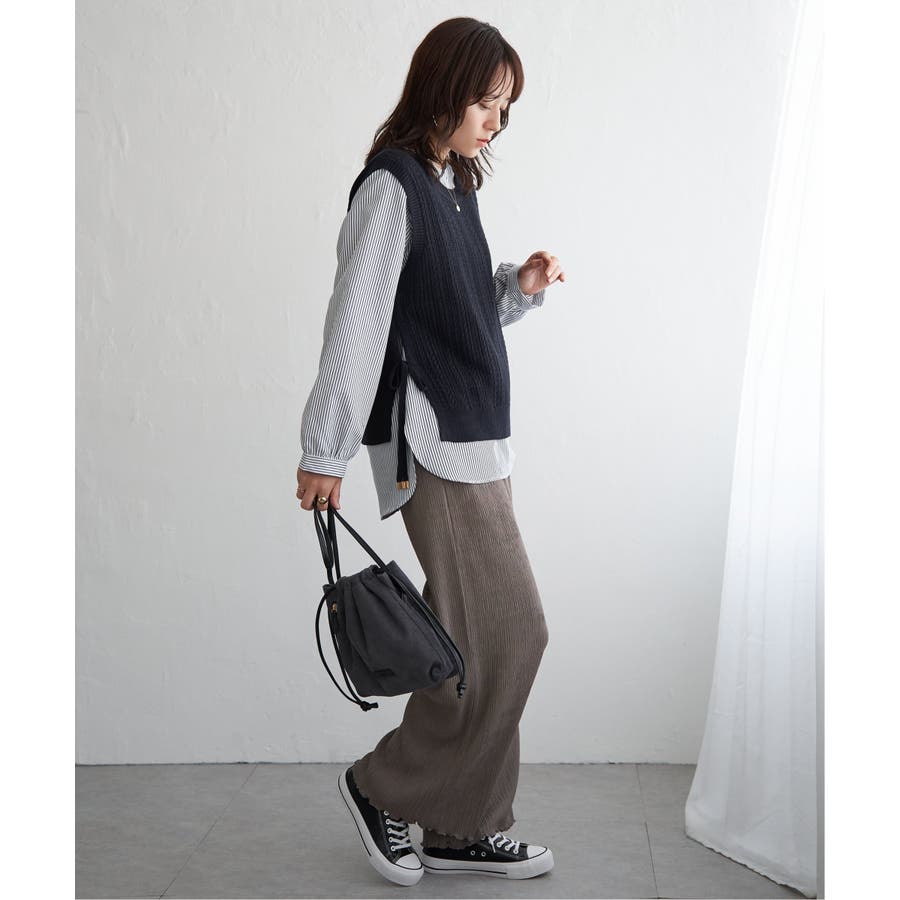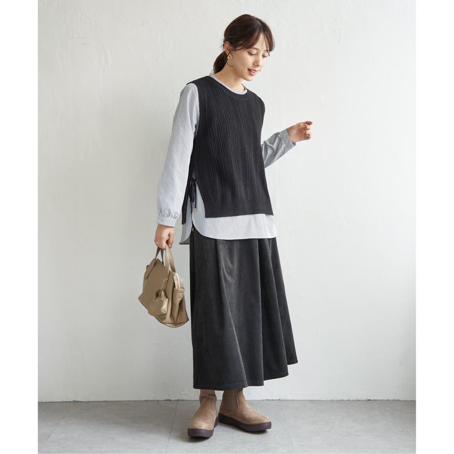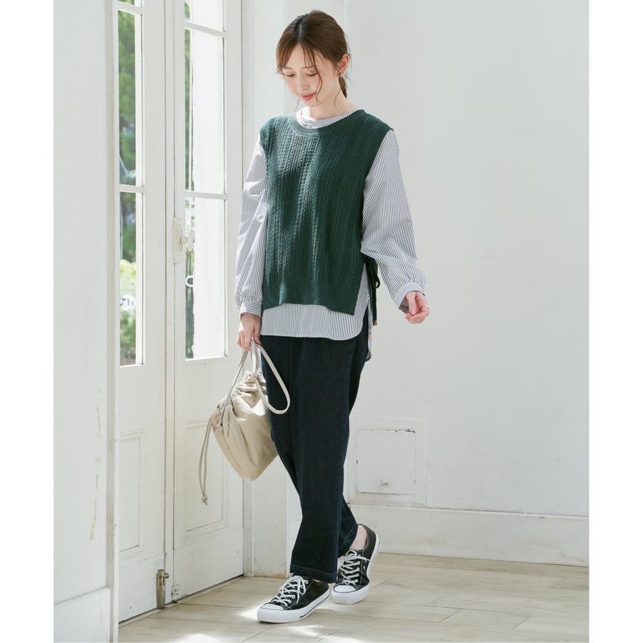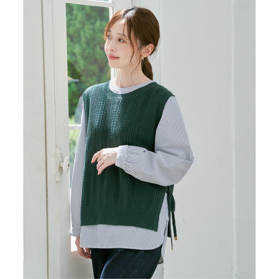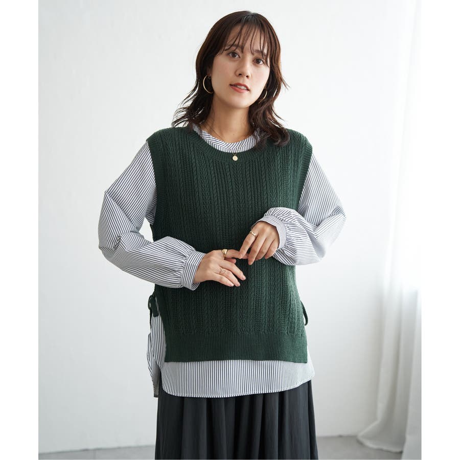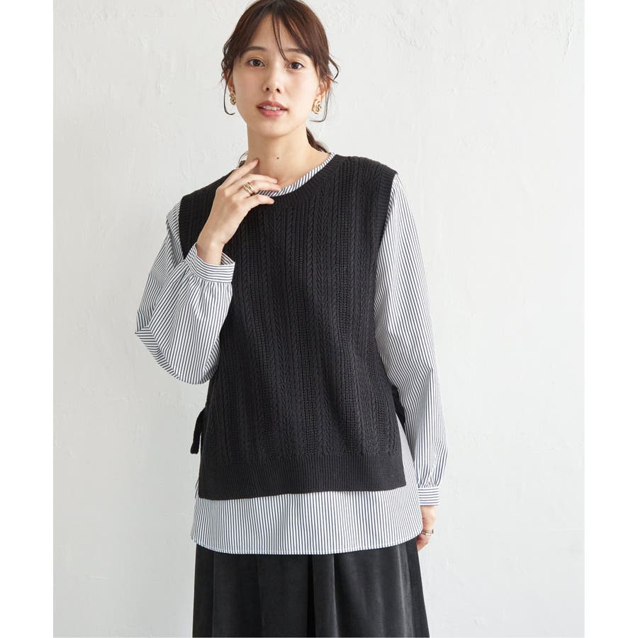 サイドにリボンディテールをあしらったニットベストと、シャツブラウスがセットになったアイテムです。
