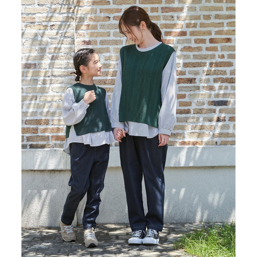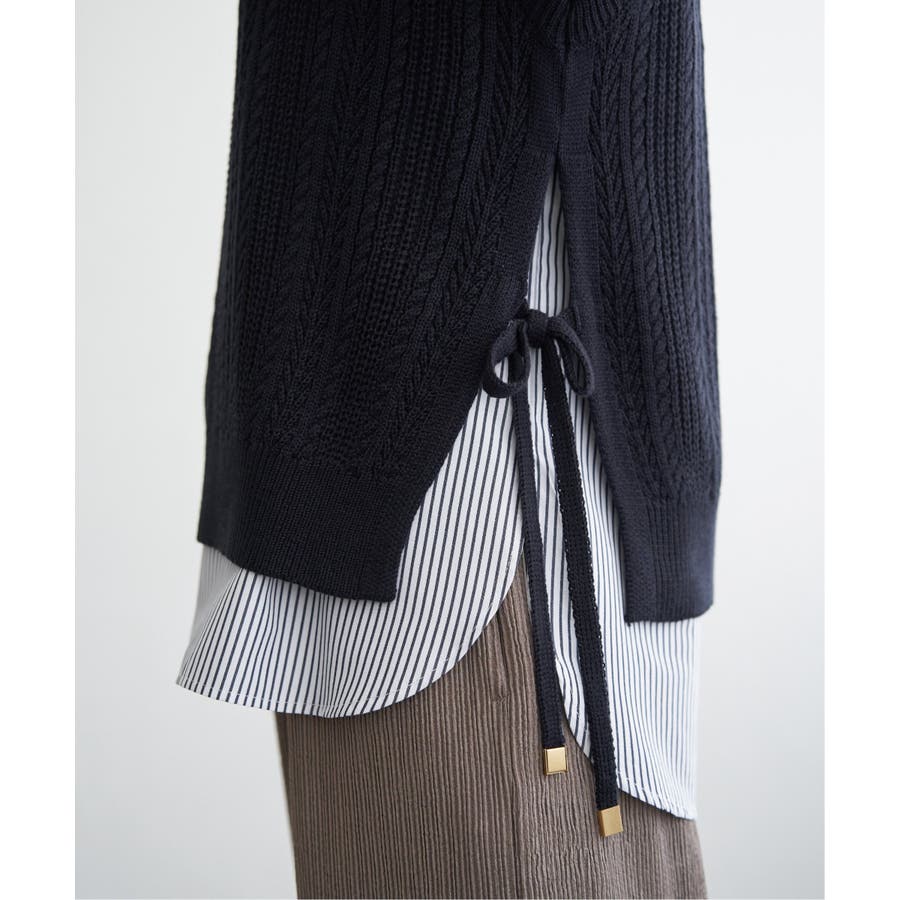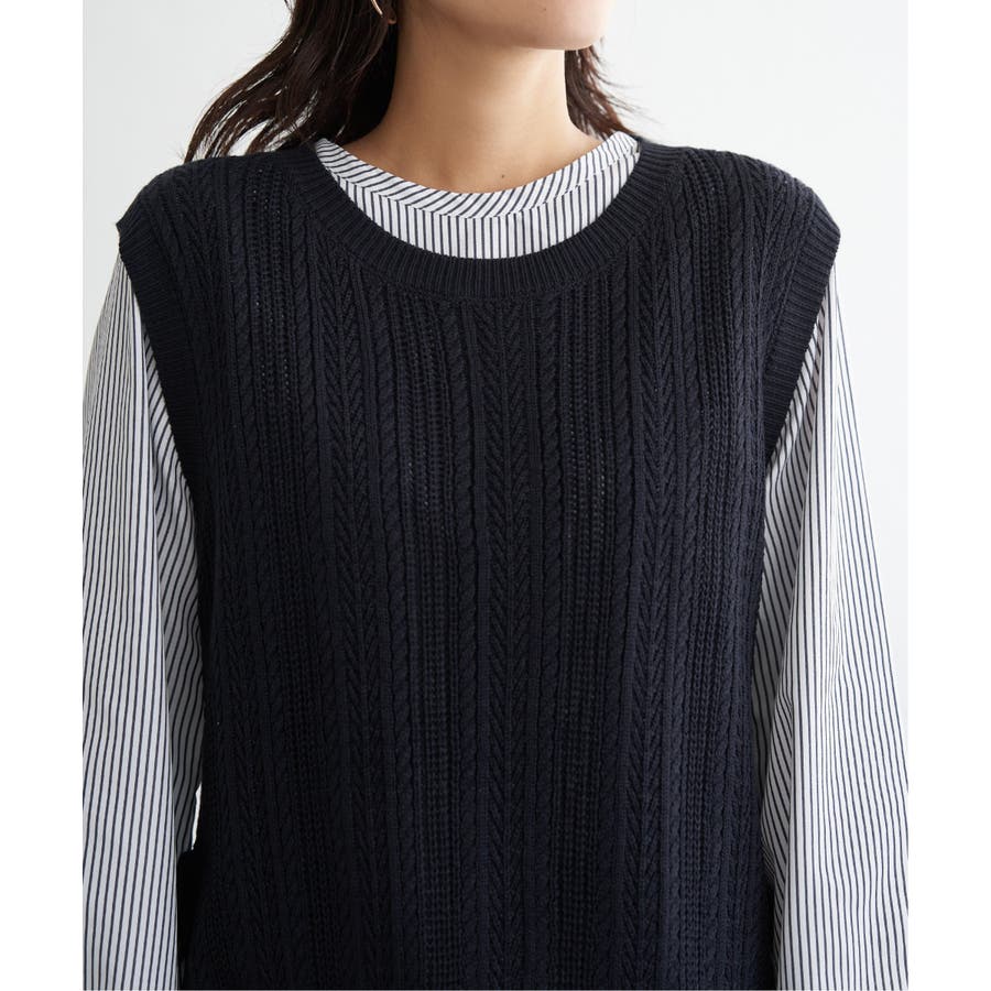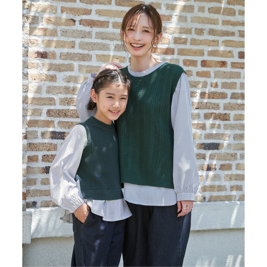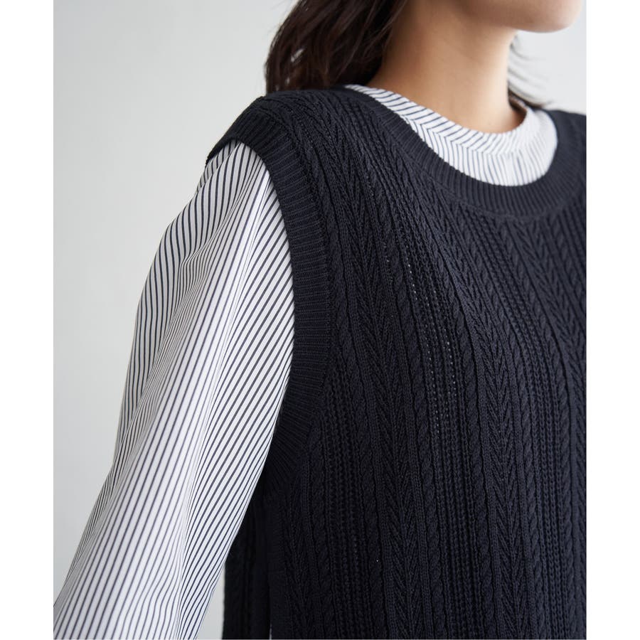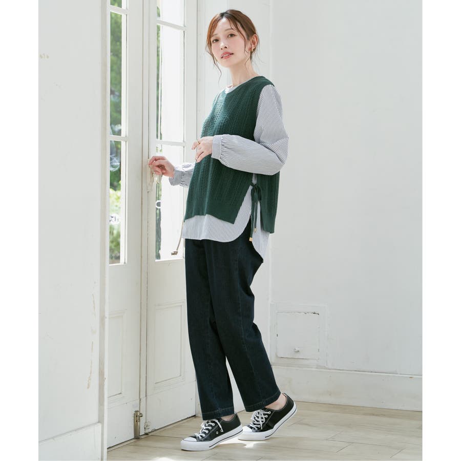 サイドにリボンディテールをあしらったニットベストと、シャツブラウスがセットになったアイテムです。