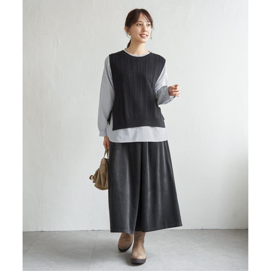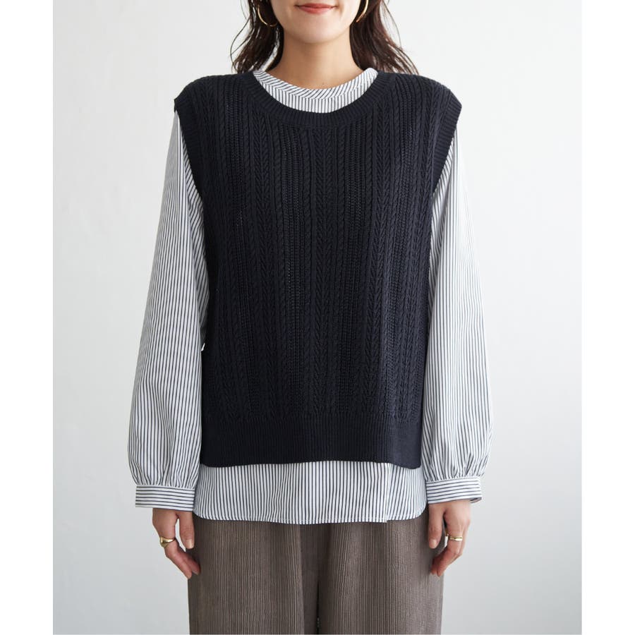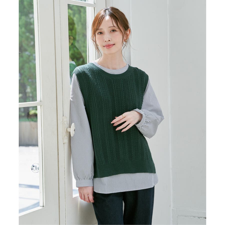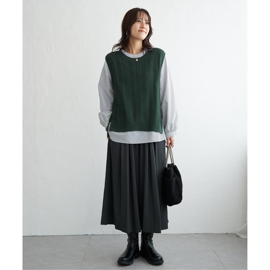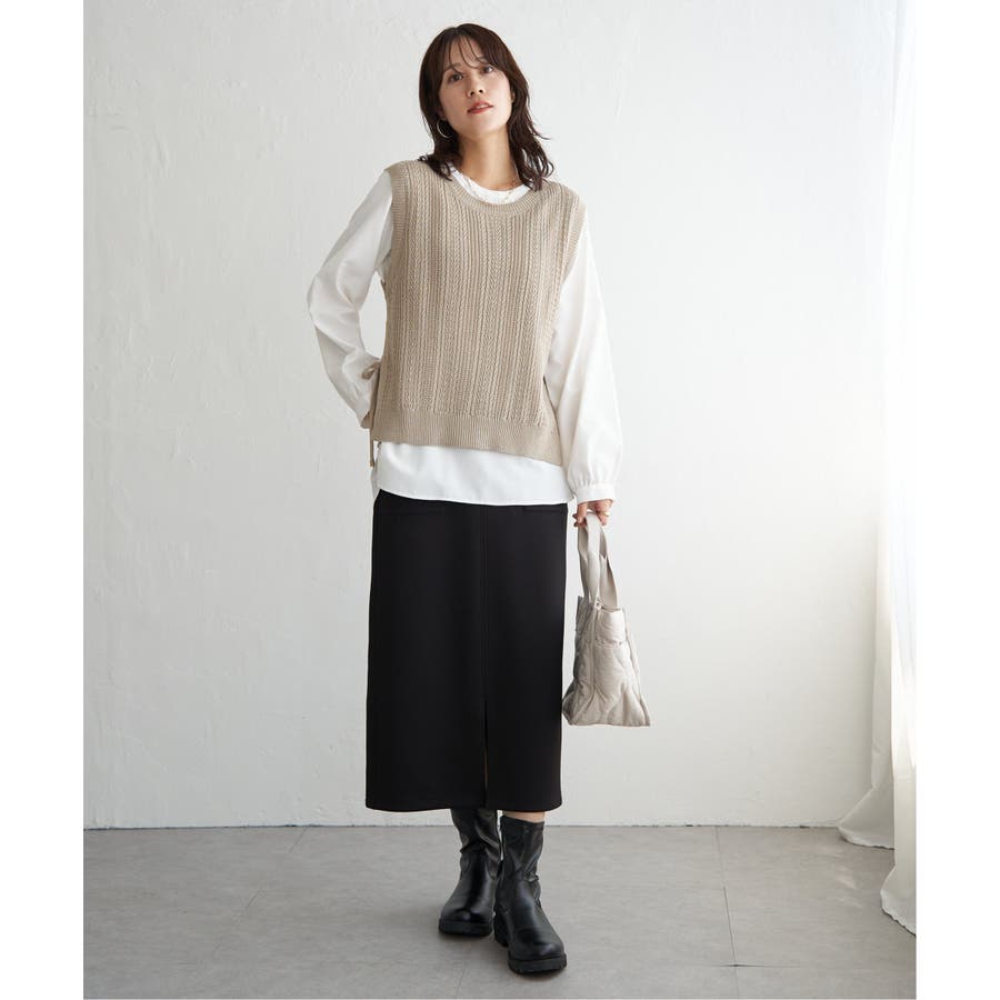 きちんと感と着やすさを兼ね備えたニットベストとブラウスのセット。