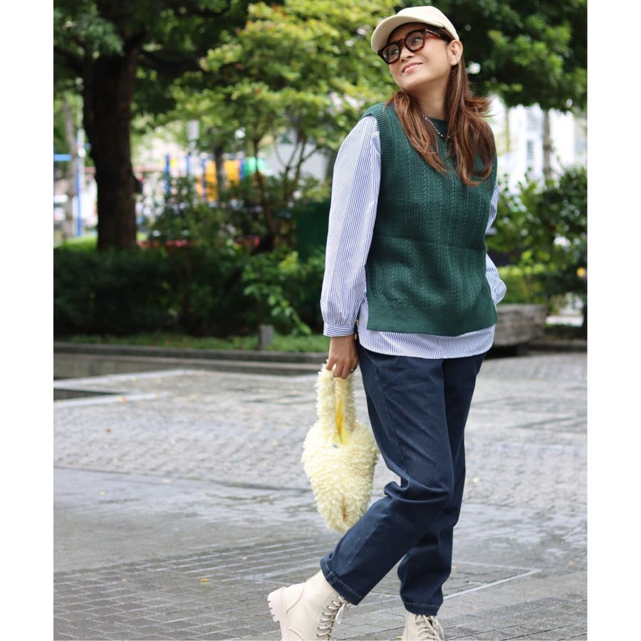 使いやすい、厚さを感じさせないニットベストと、適度なハリ感のあるシャツ地。