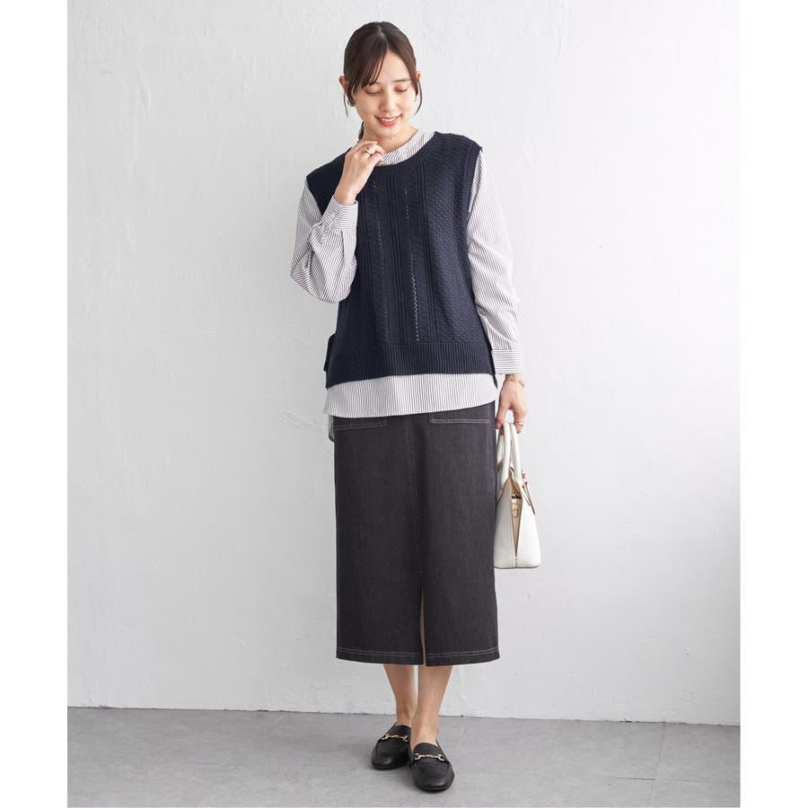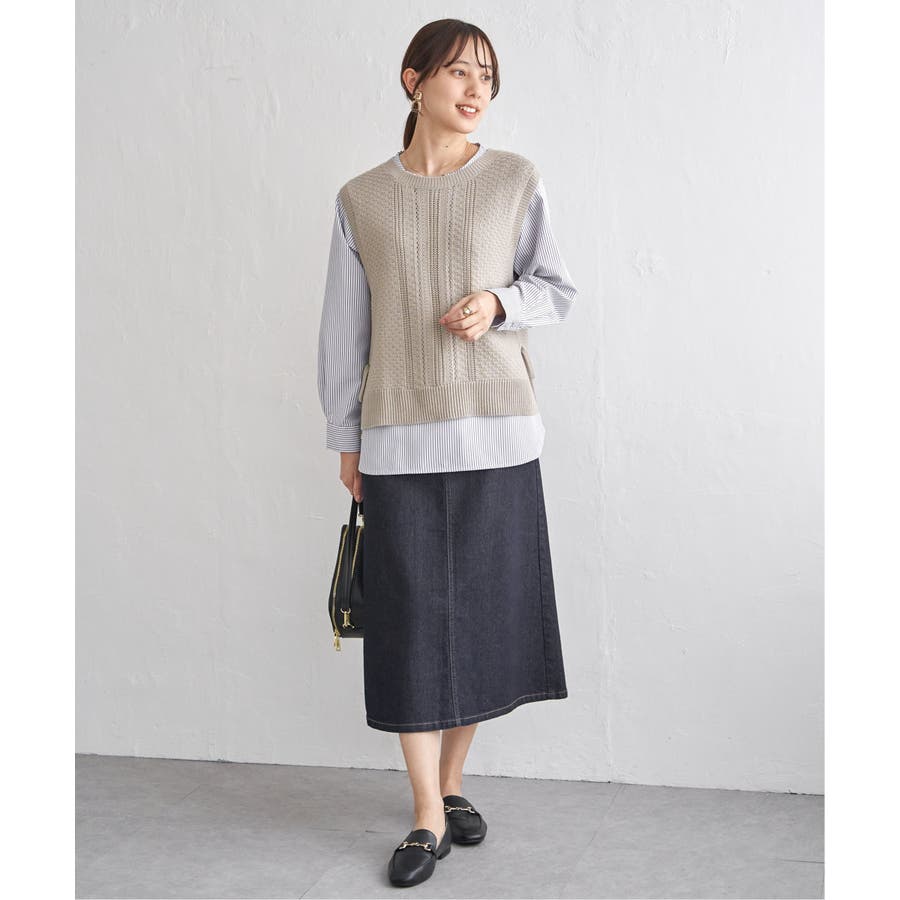 ベストと、適度なハリ感のあるシャツ地のアンサンブル。
