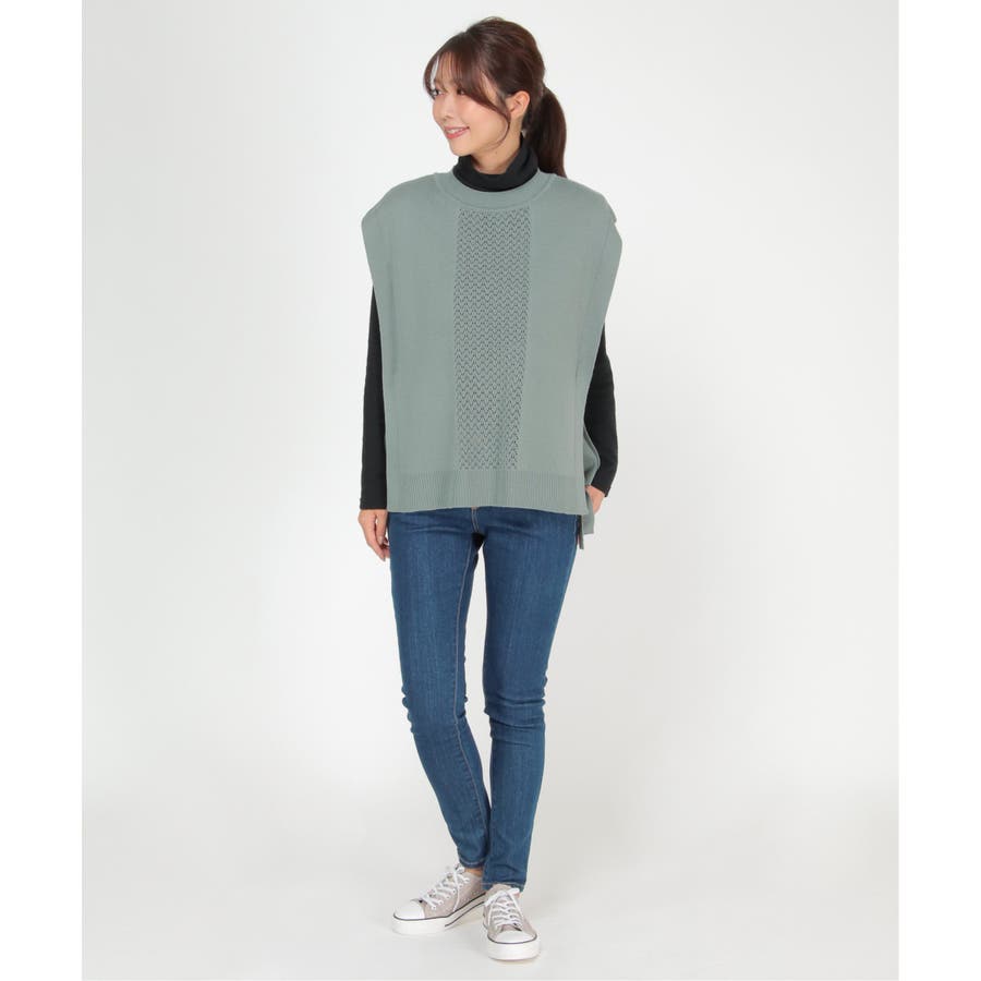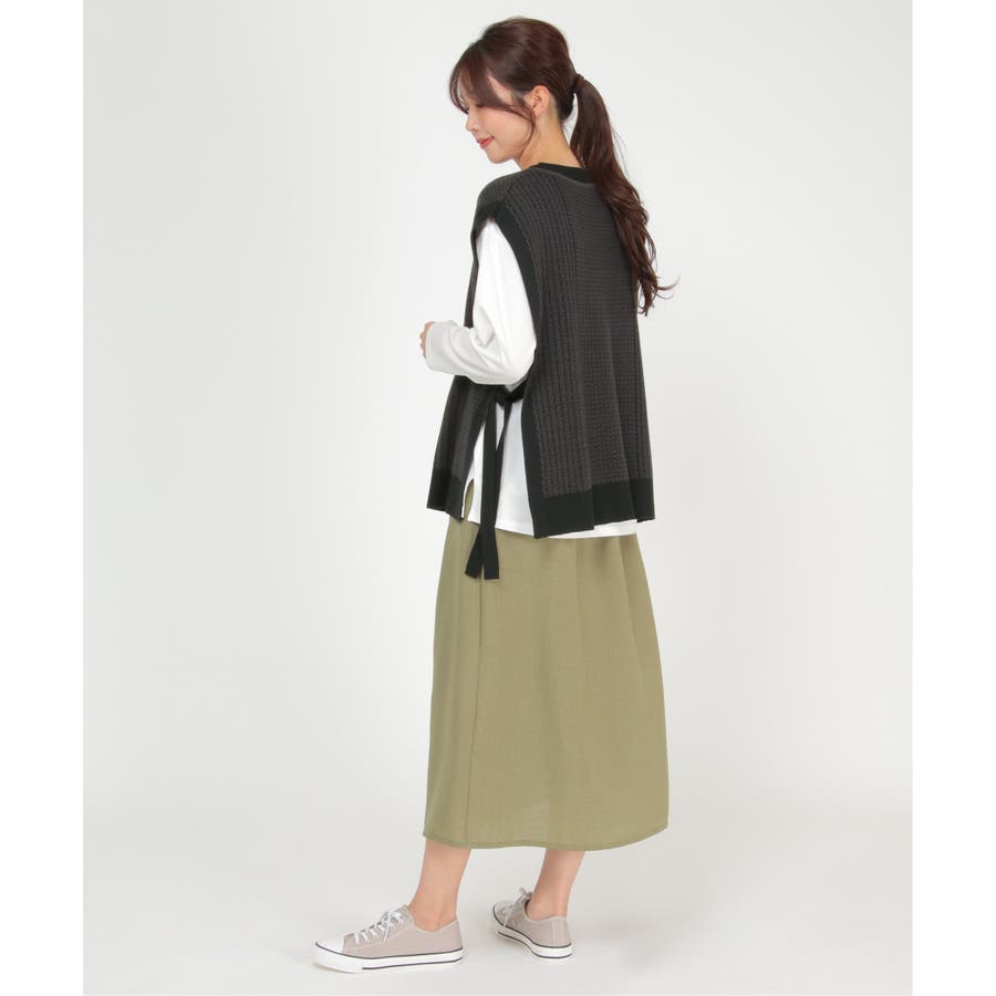 サイド開きのデザインのため、ゆったりフォルムのインナーにも重ね着しやすいです。