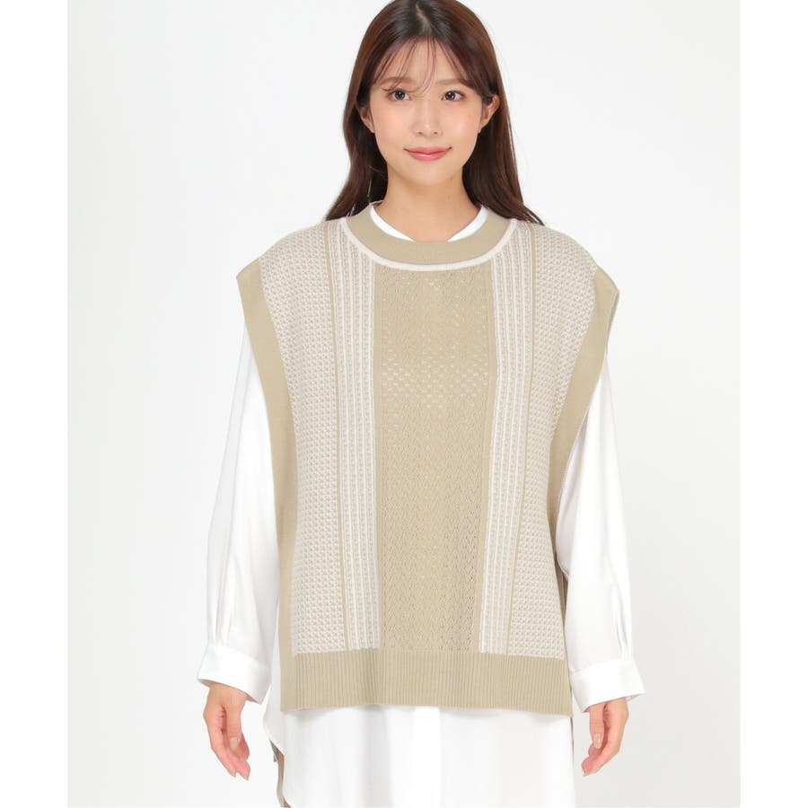 シンプルながらも、ワンテクがあるので高見えするニットベストになっています。